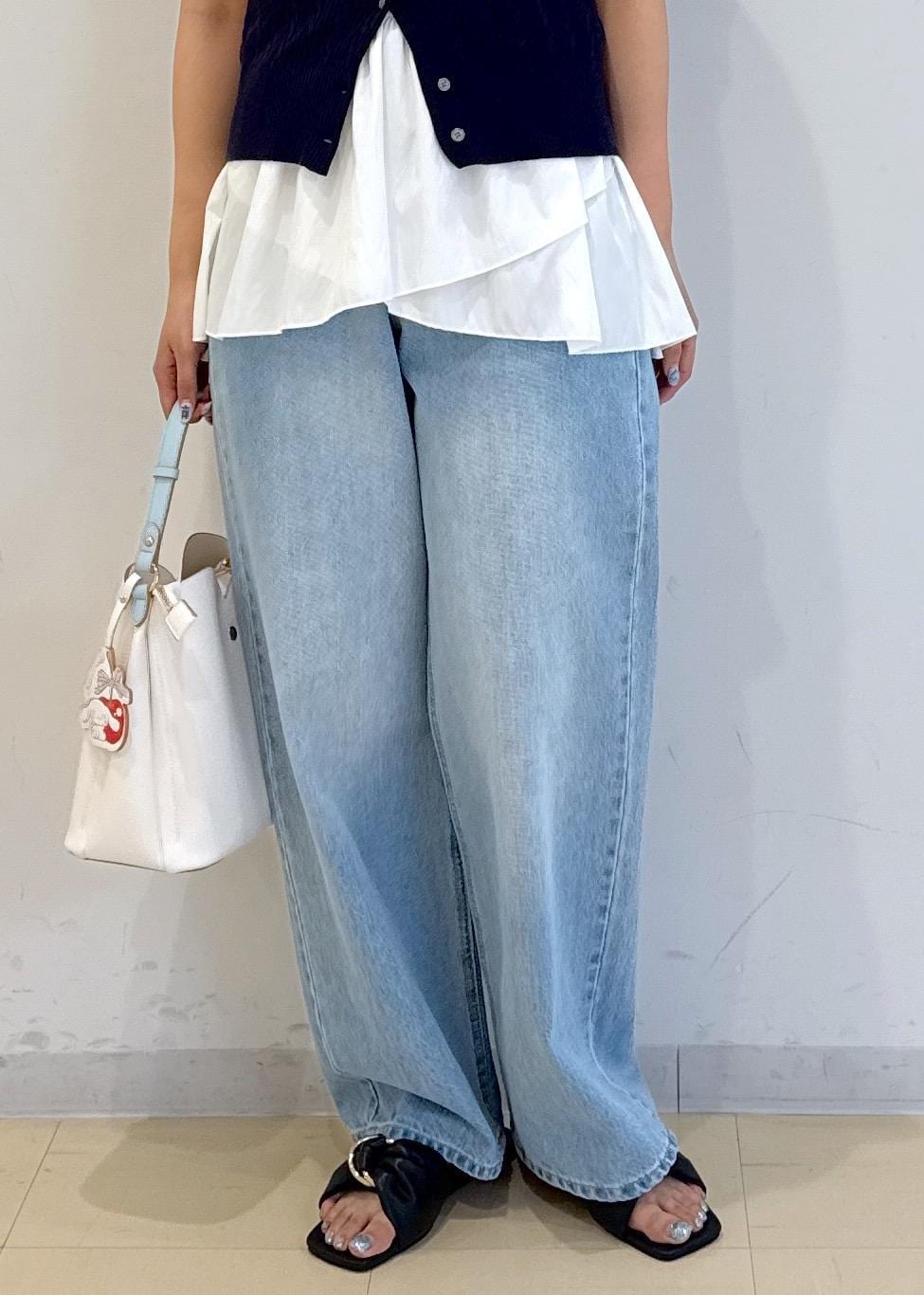 アウトレットVIS【洗える】ハイウエストルーズワイドデニムサックス / M¥4,395レビュー股上が長めなデニムです。カーブデニムなので、少しワイドめな作り。かなりカジュアル目な印象になります。丈は158cmMサイズでくるぶしが隠れる丈感です