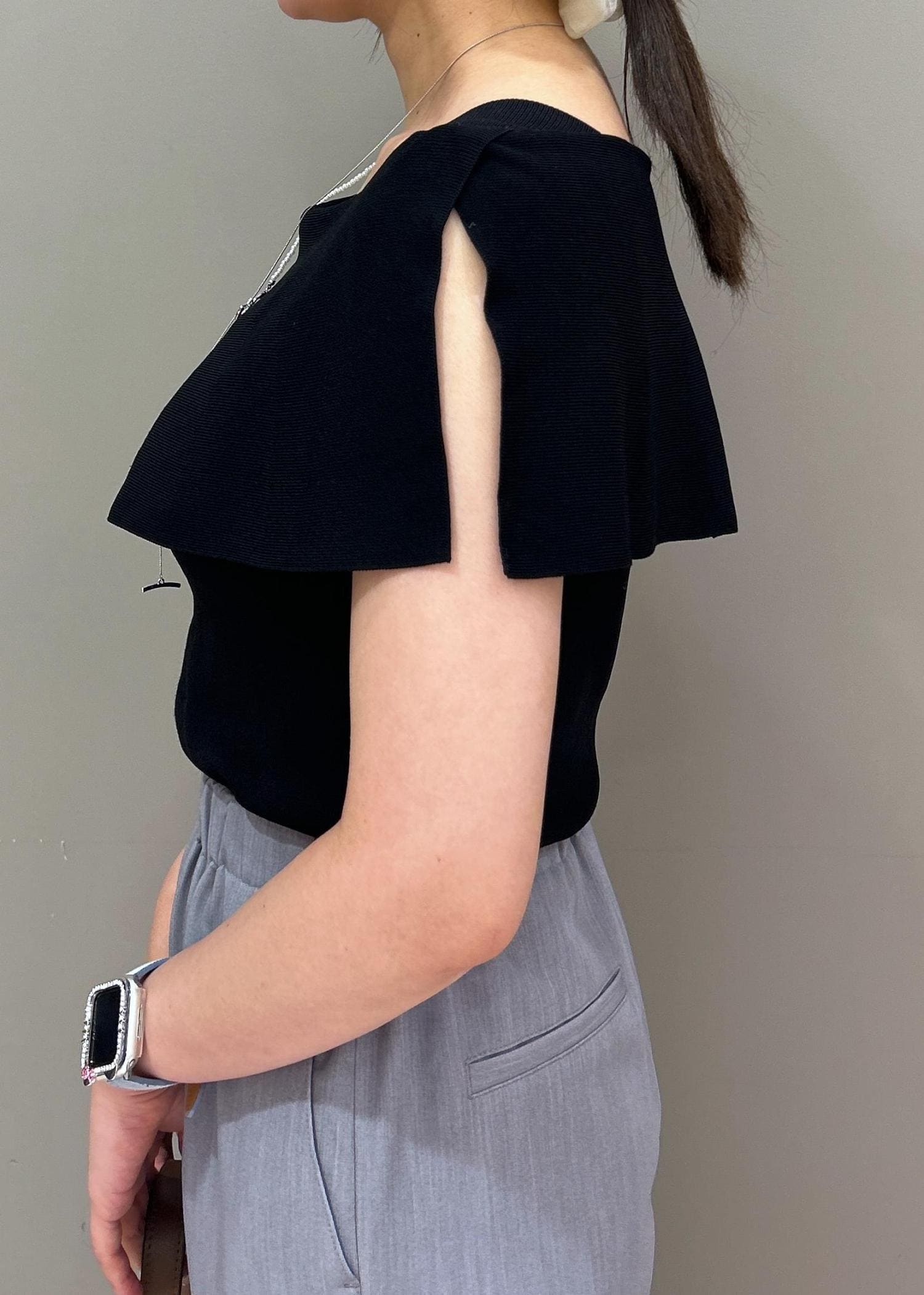 ROPÉ PICNIC【UVカット・接触冷感・イージーケア】八方映えニット ケープニットプルオーバーブラック / 38¥4,994レビューケープにスリットが入っているので二の腕をカバーしつつすっきり見せてくれます◎