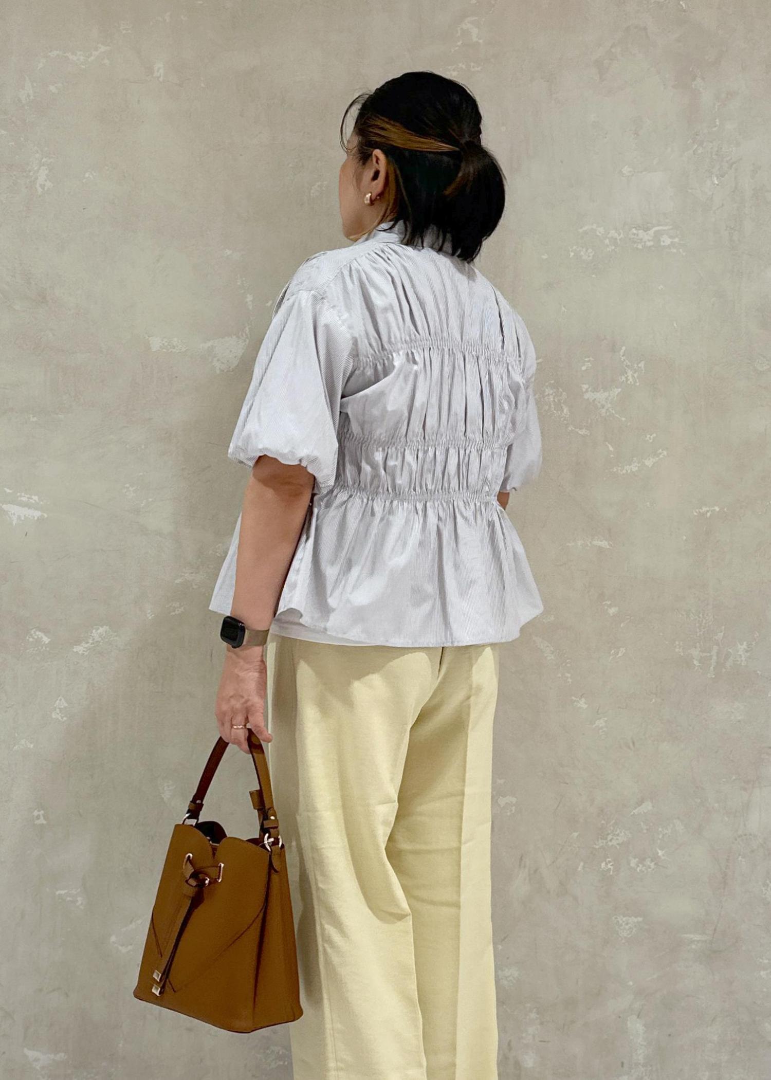 VIS【新色追加】【店頭人気】シャーリングバルーンシャツグレー / F¥5,489レビューシャーリング部分が程よいフィット感でシャツなのに着やすい!