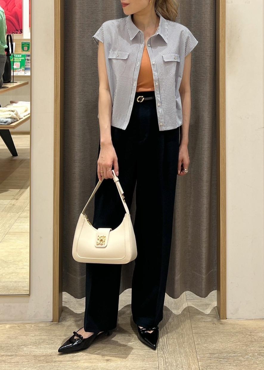 ベルトの穴がないタイプで、ウエスト位置を選ばないので、ウエストマークしてコーデを引き締めたい、アクセントが欲しい!なんて時も使えます。