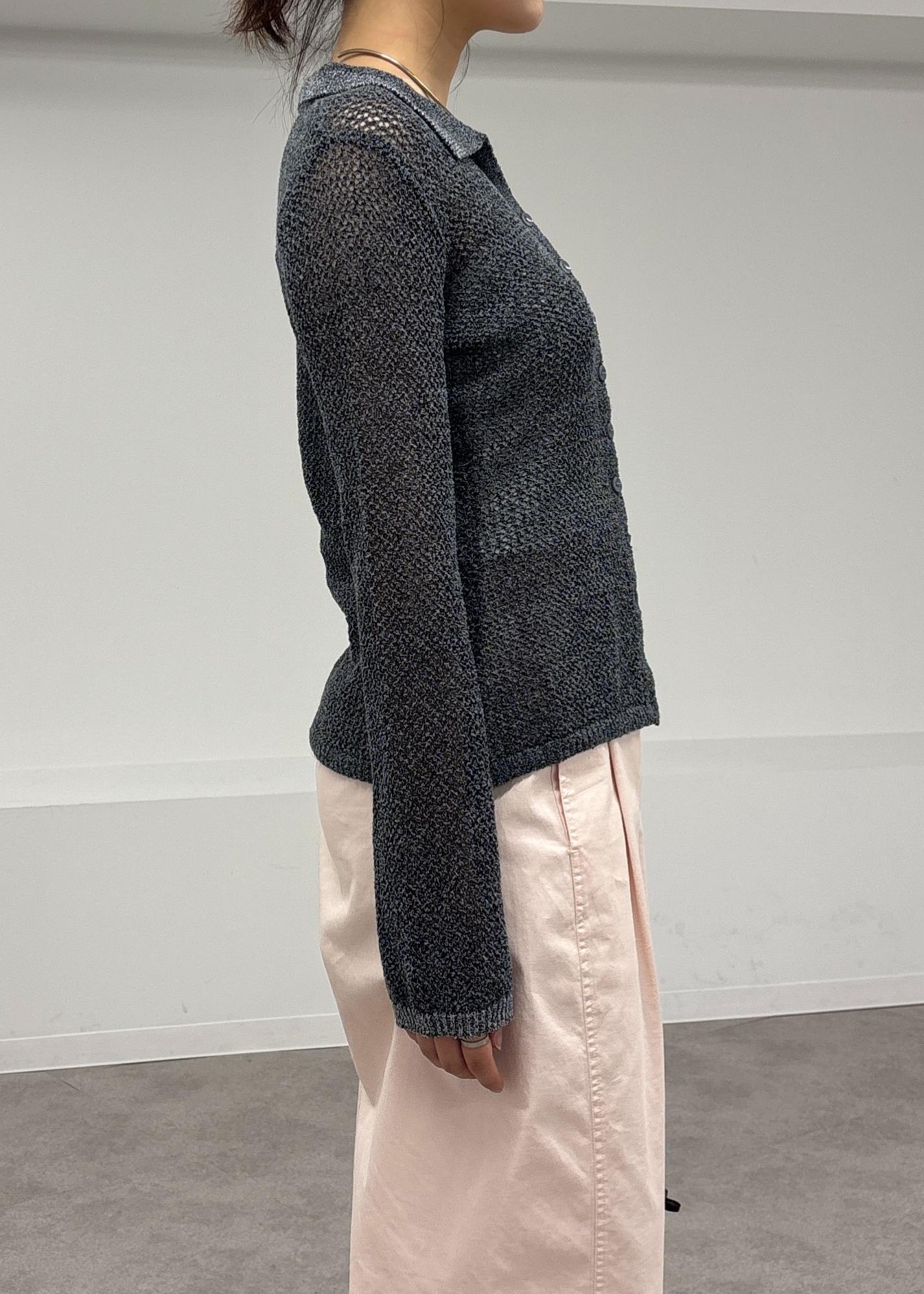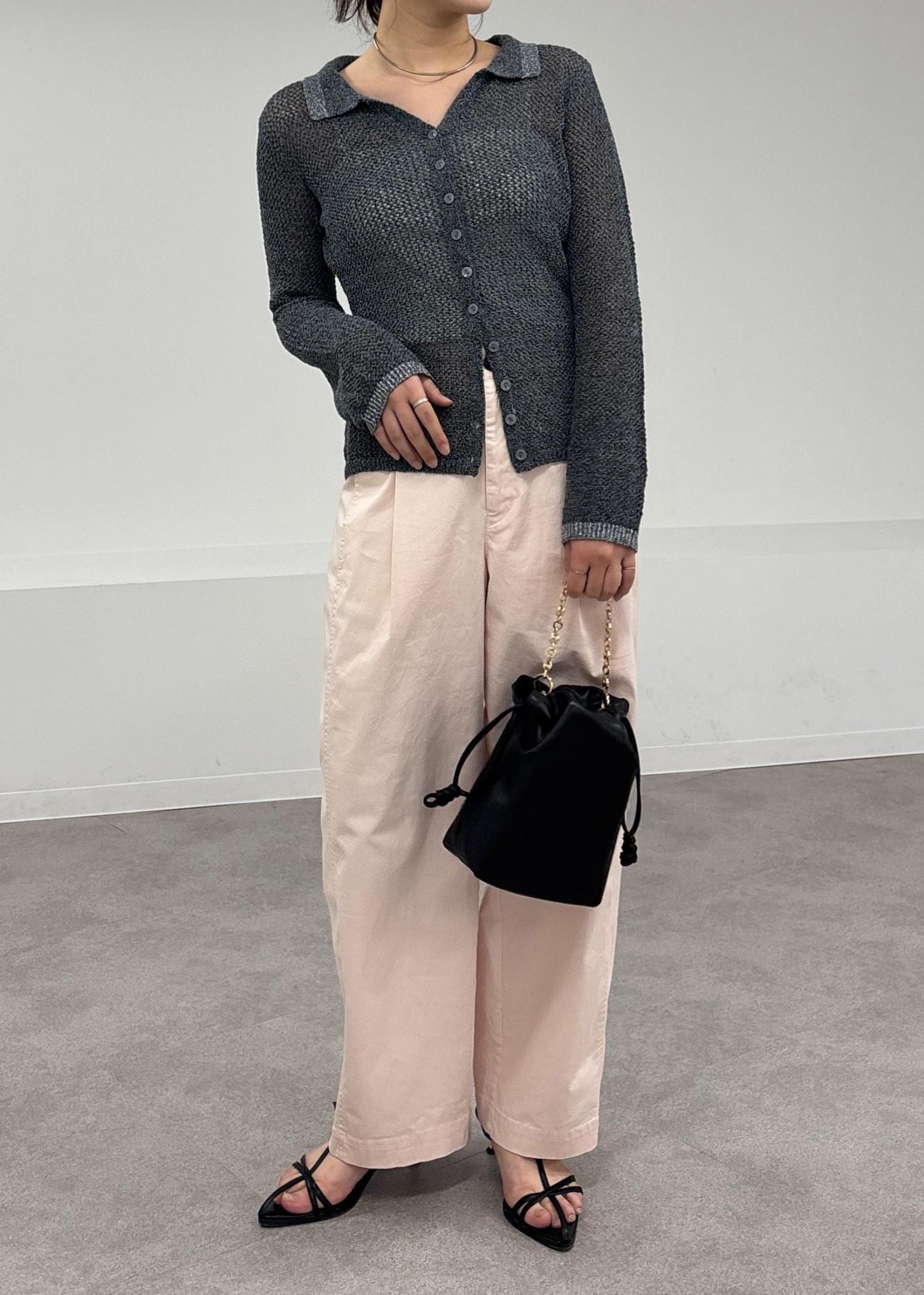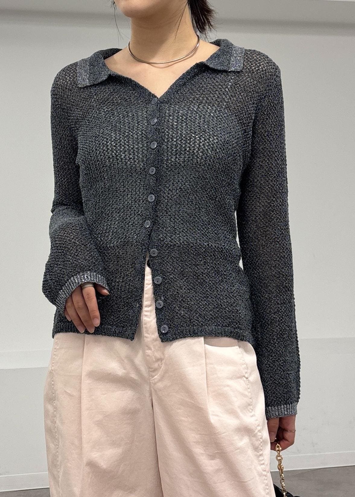 VIS【WEB/一部店舗限定】配色ラメポロ襟カーディガン/美シルエットグレー / F¥2,745レビュー165cmで腰が隠れるくらいの丈です!
