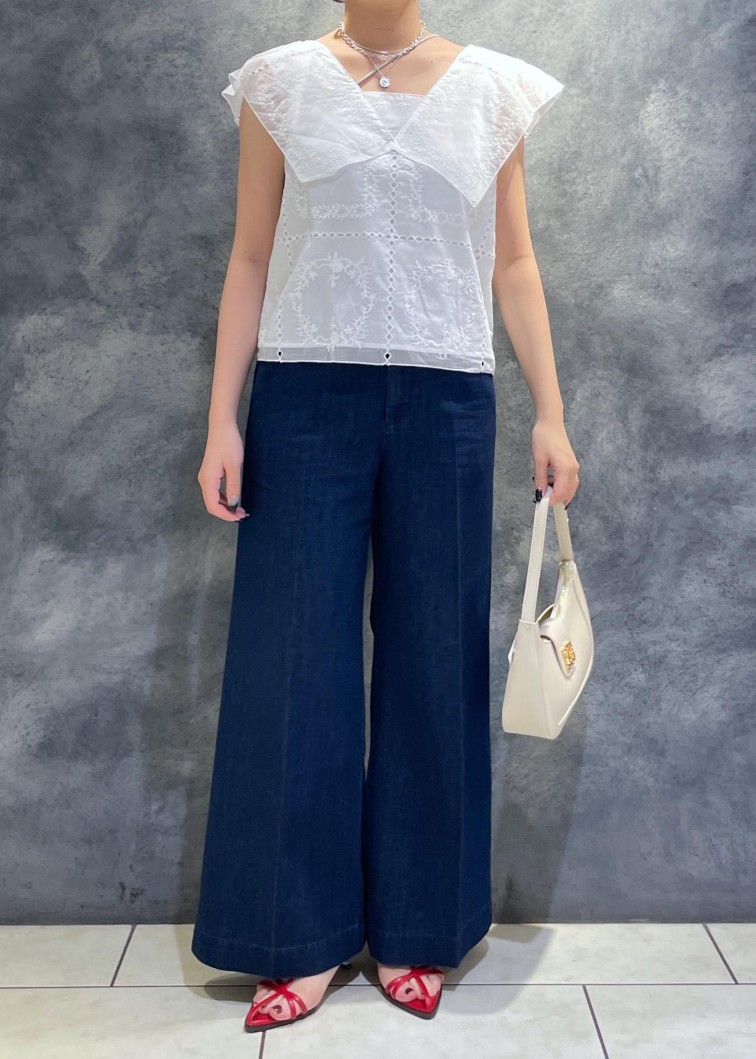 アウトレットVISグリッターワイドデニムパンツブルー系 / M¥5,339レビューデニムですが柔らかいのでデニム特有の硬さがないので夏でもサラッときていただけます。
