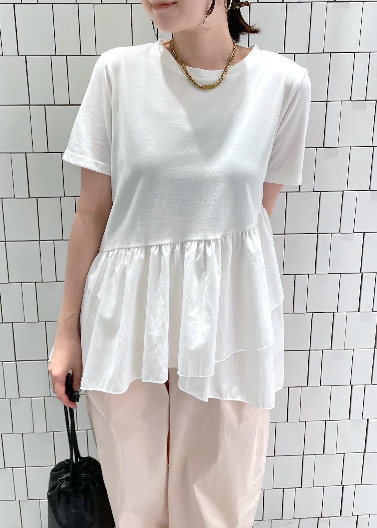 アウトレットVISペプラムドッキングプルオーバーオフホワイト / F¥2,963レビュー身長159cmでヒップがしっかり隠れる着丈、程よいサイズ感で細見えします!1枚で着映えなドッキングトップス、裾部分はアシンメトリーなデザインで体型カバーしつつお洒落見えもします♡Tシャツ部分は伸縮性があり着脱のしやすさ◎肌あたりも柔らかく着心地も良いです。