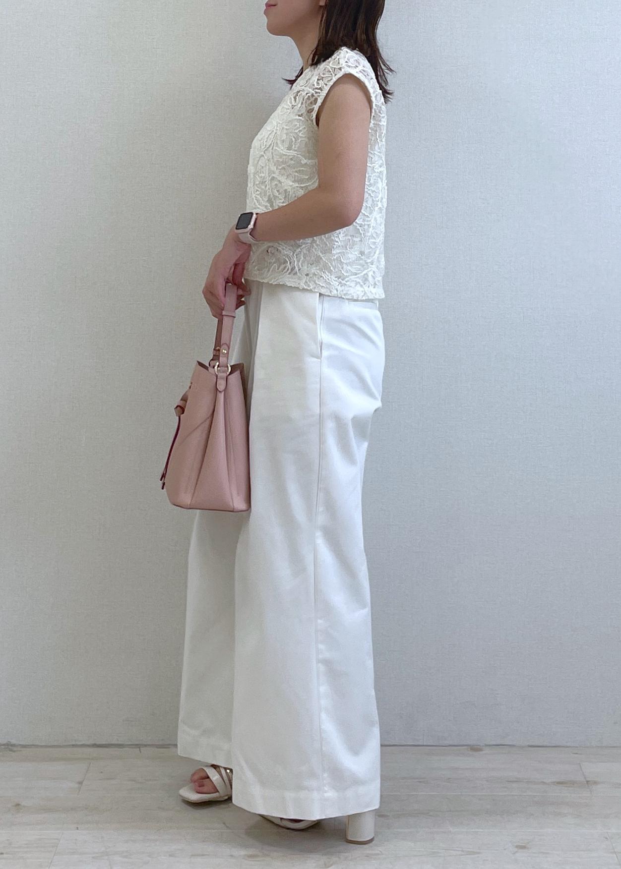 長すぎない丈感で、ヒールを履くと下につかず低身長の方でも着やすいです!