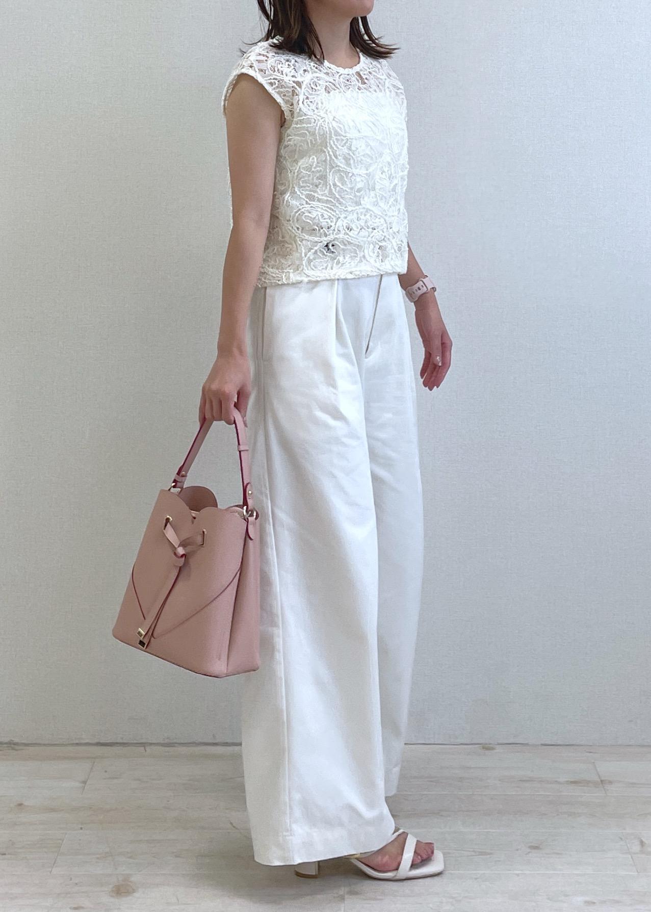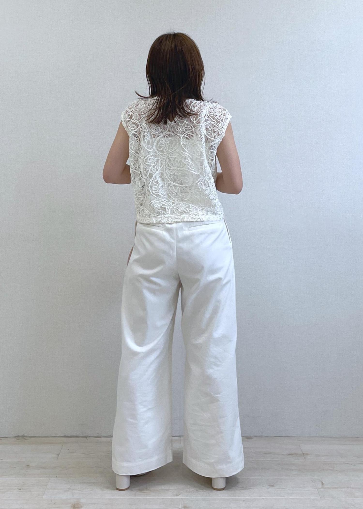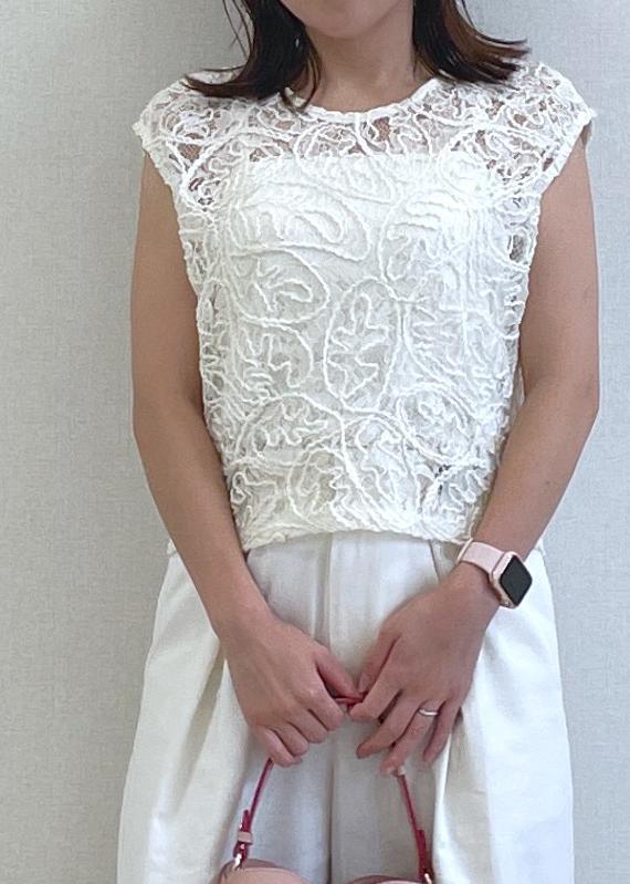 アウトレットVISコードレースシアーノースリーブプルオーバーオフホワイト / F¥4,391レビューすこしゆとりのあるサイズ感で、ゆるっと着用できます。