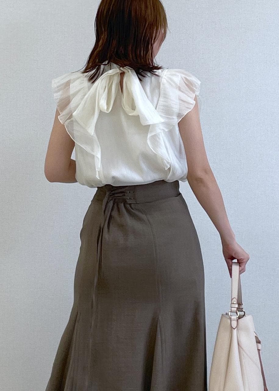 VIS【店頭人気】主役級!華やぎシアーシャイニーボウタイフリルブラウス【前後2WAY】【洗える】キナリ / F¥5,489レビュー150cmでFサイズ着用です!