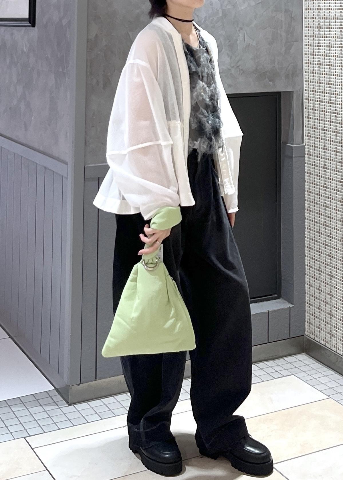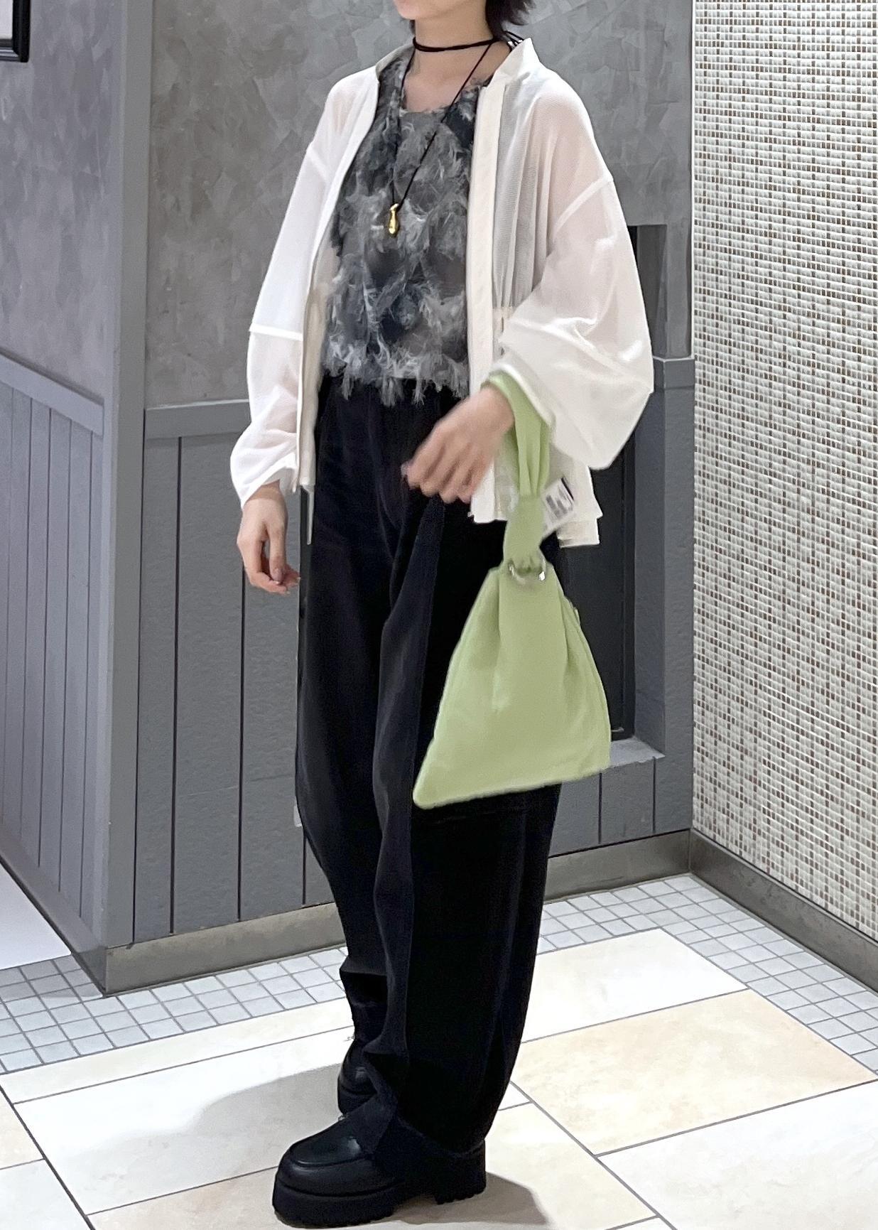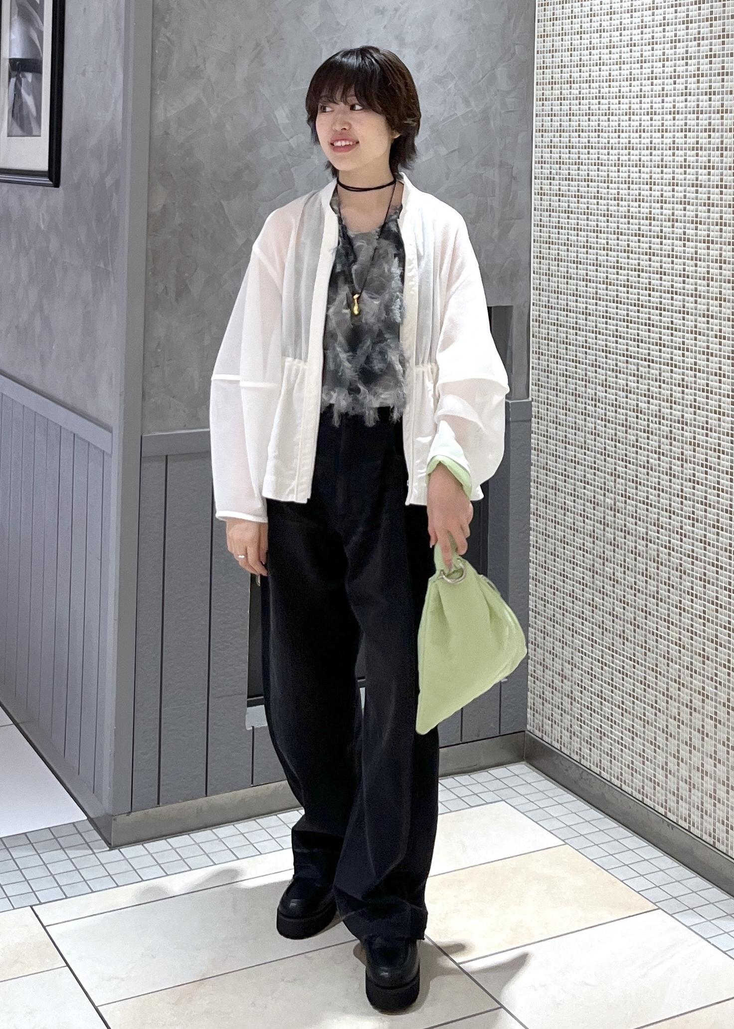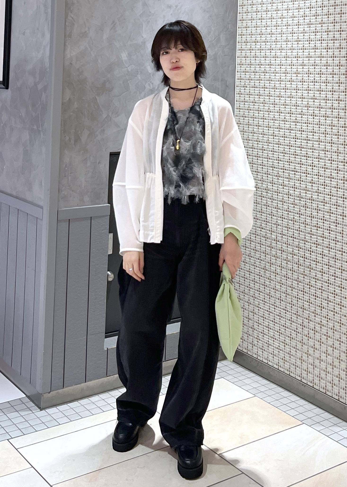 158cmの私はハイウエストで着用するとフラットシューズでも大丈夫な長さです。今回はジャストウエストで厚底を履いて着用しました!たっぷりめのシルエットですが、ラインがとってもきれいでお気に入りです♡