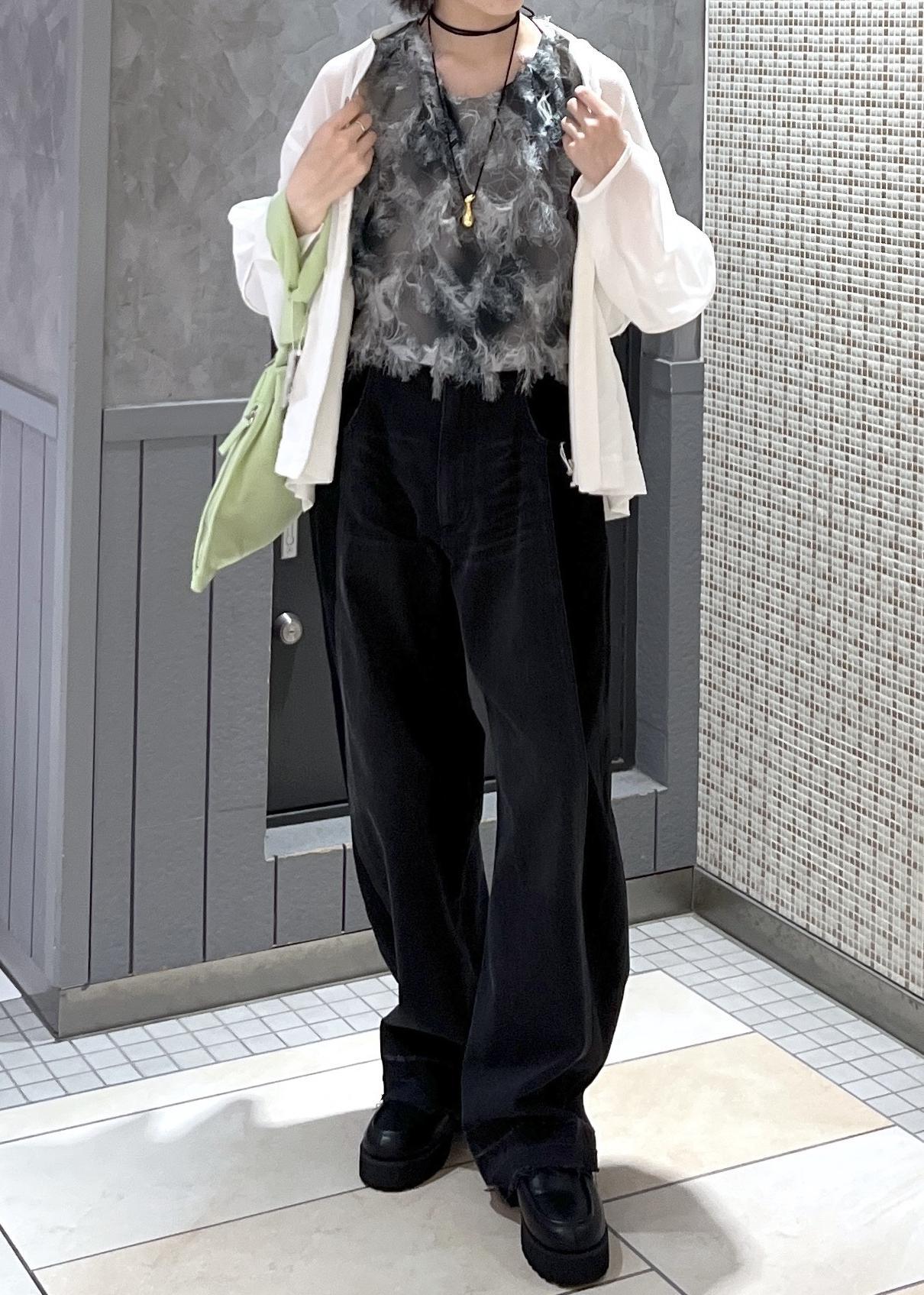 今回はフリンジプリントトップスを使ったコーディネート。あまり肌見せしたくない!という方にもおすすめです。カジュアルなスタイルにしてみました⭐︎