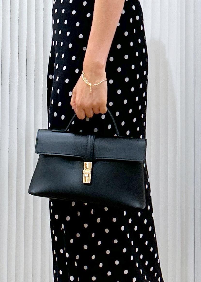 お洋服が甘めなので、小物はシンプルにまとめました。