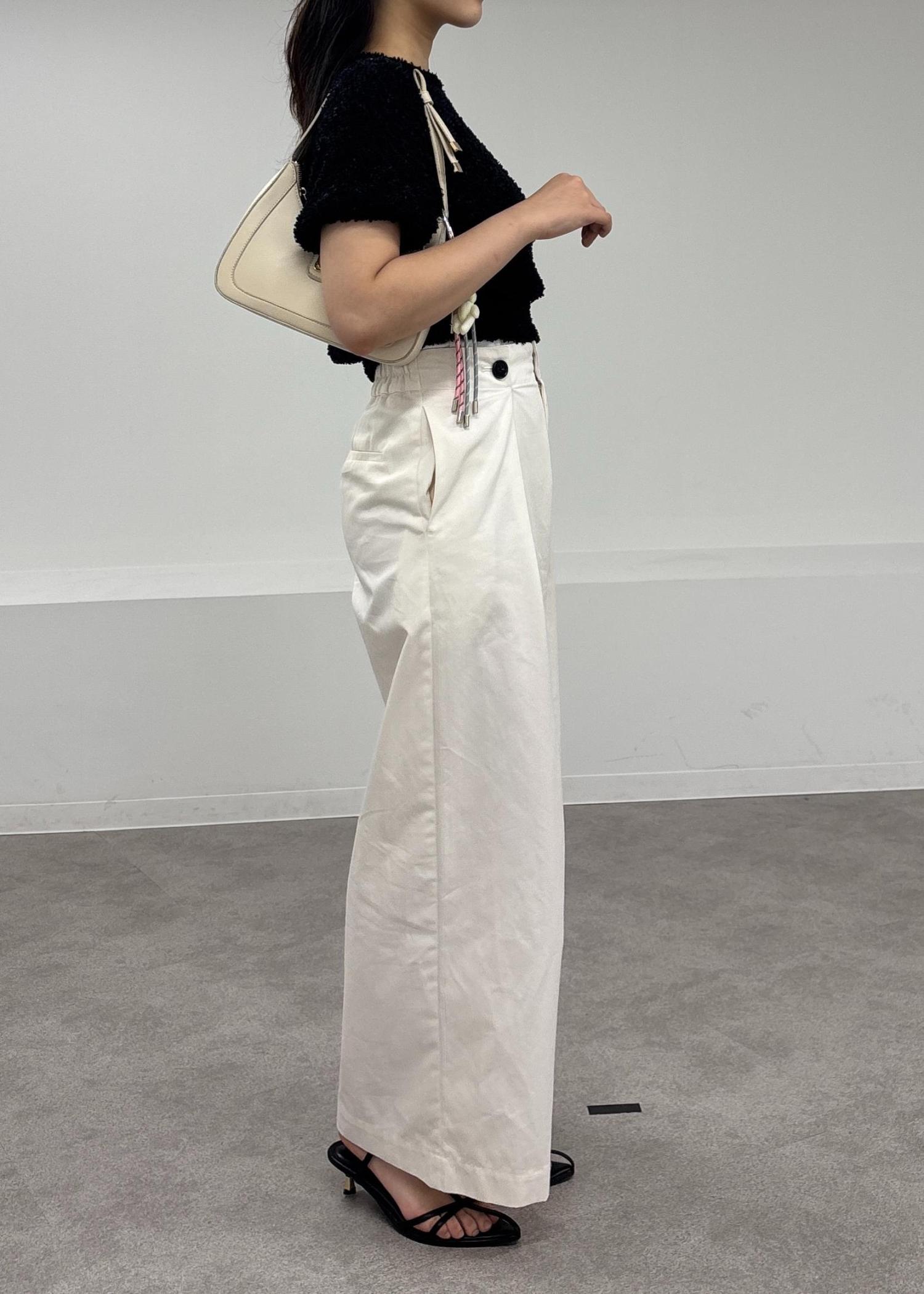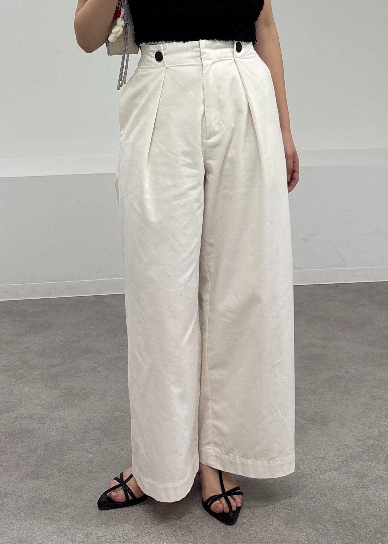 ウエストのボタンがコーデのポイントに! -