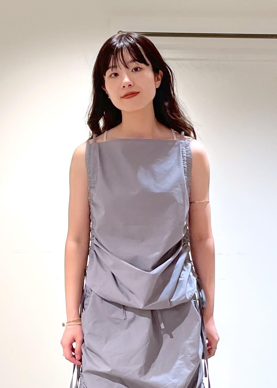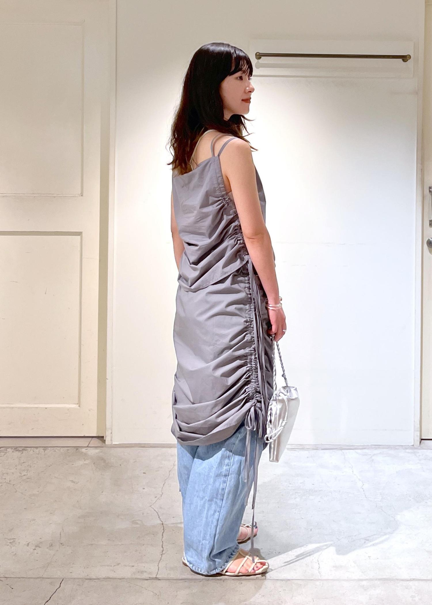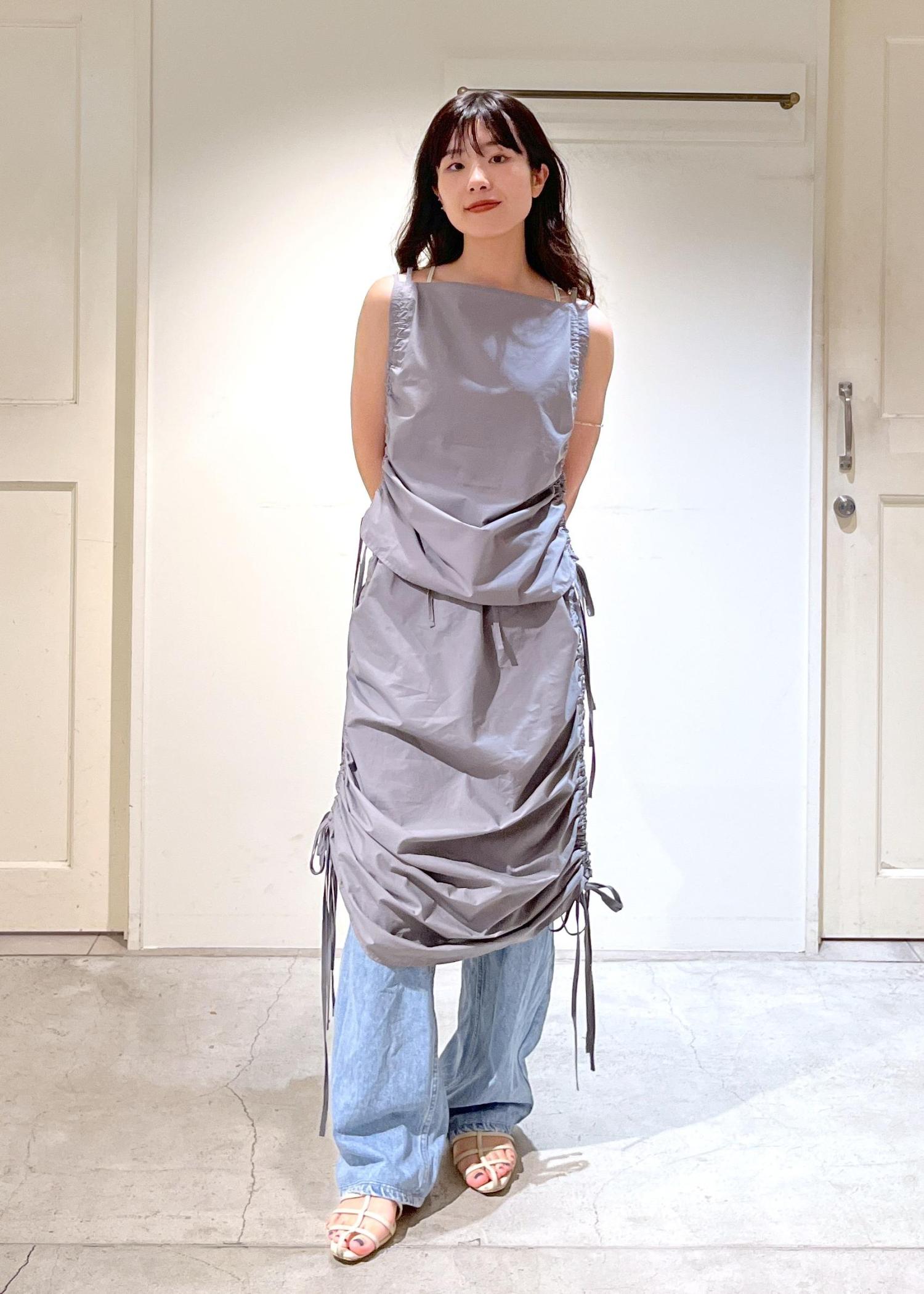 さらっと軽いコットン素材。サイドのコードで見た目の変化も自由自在。レイヤードアイテムとしても着ていただけます。 -