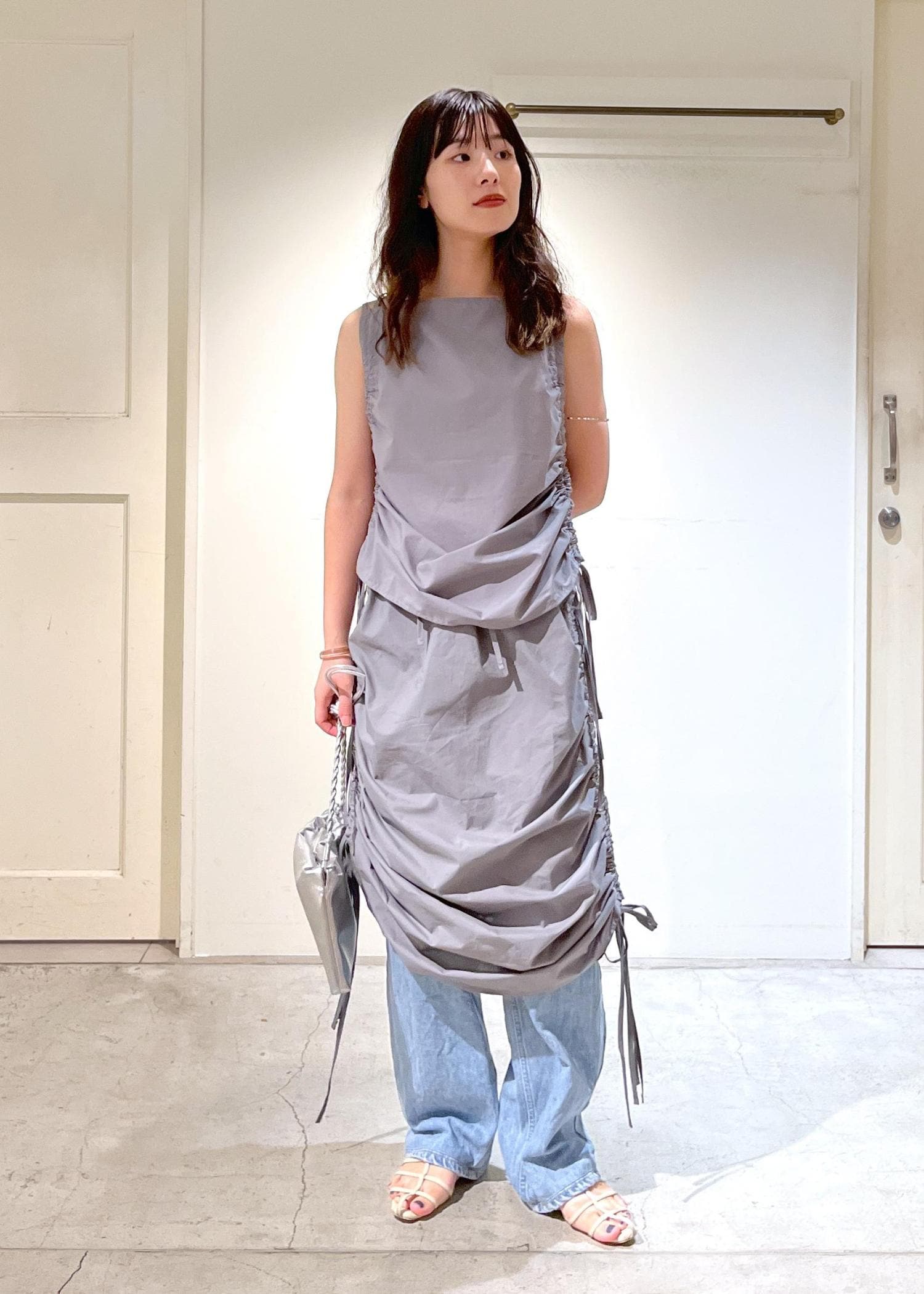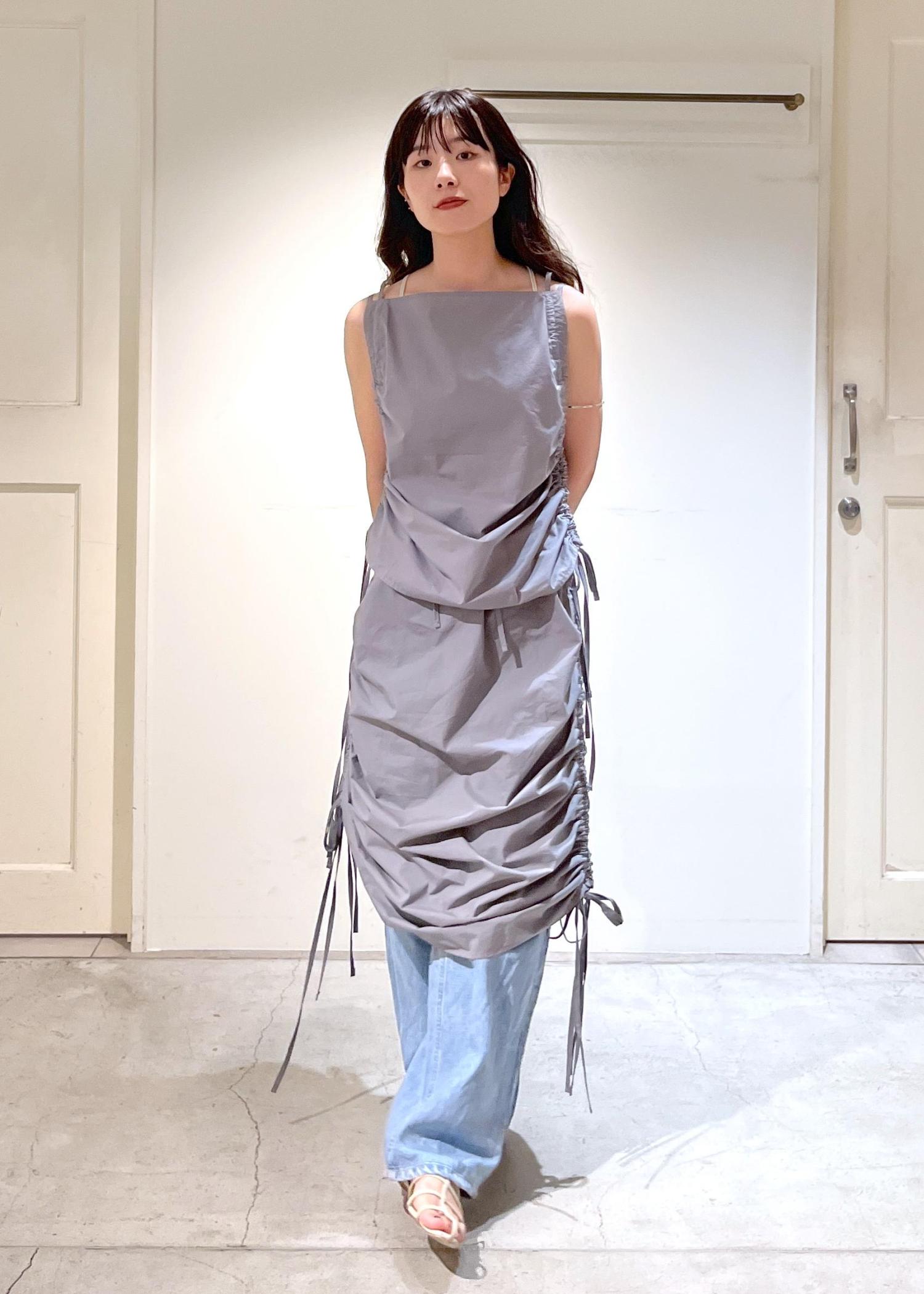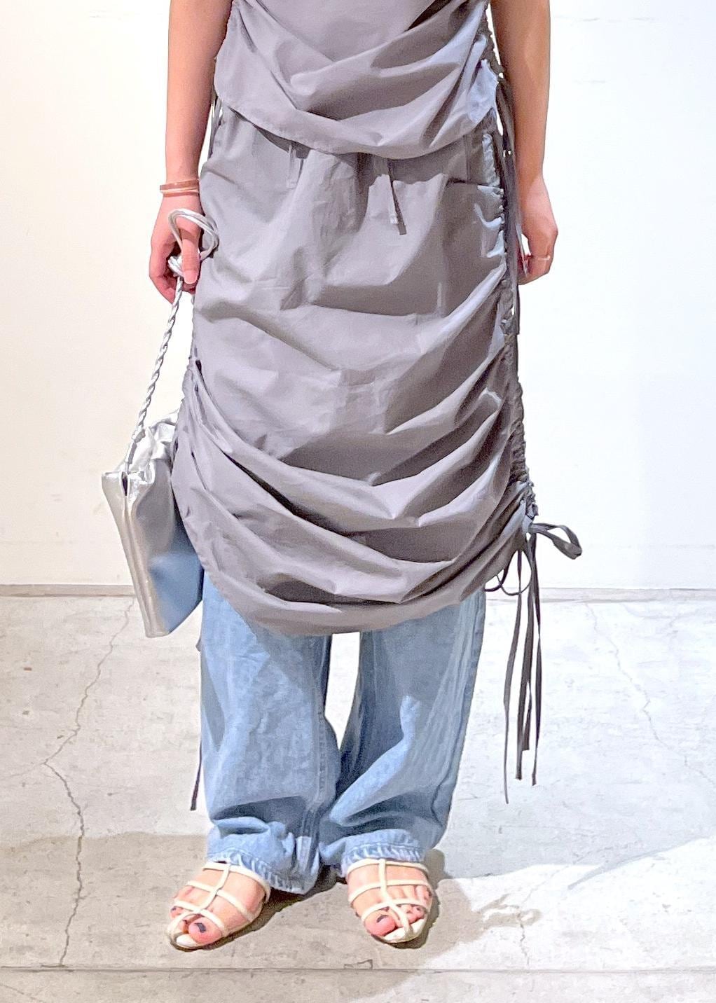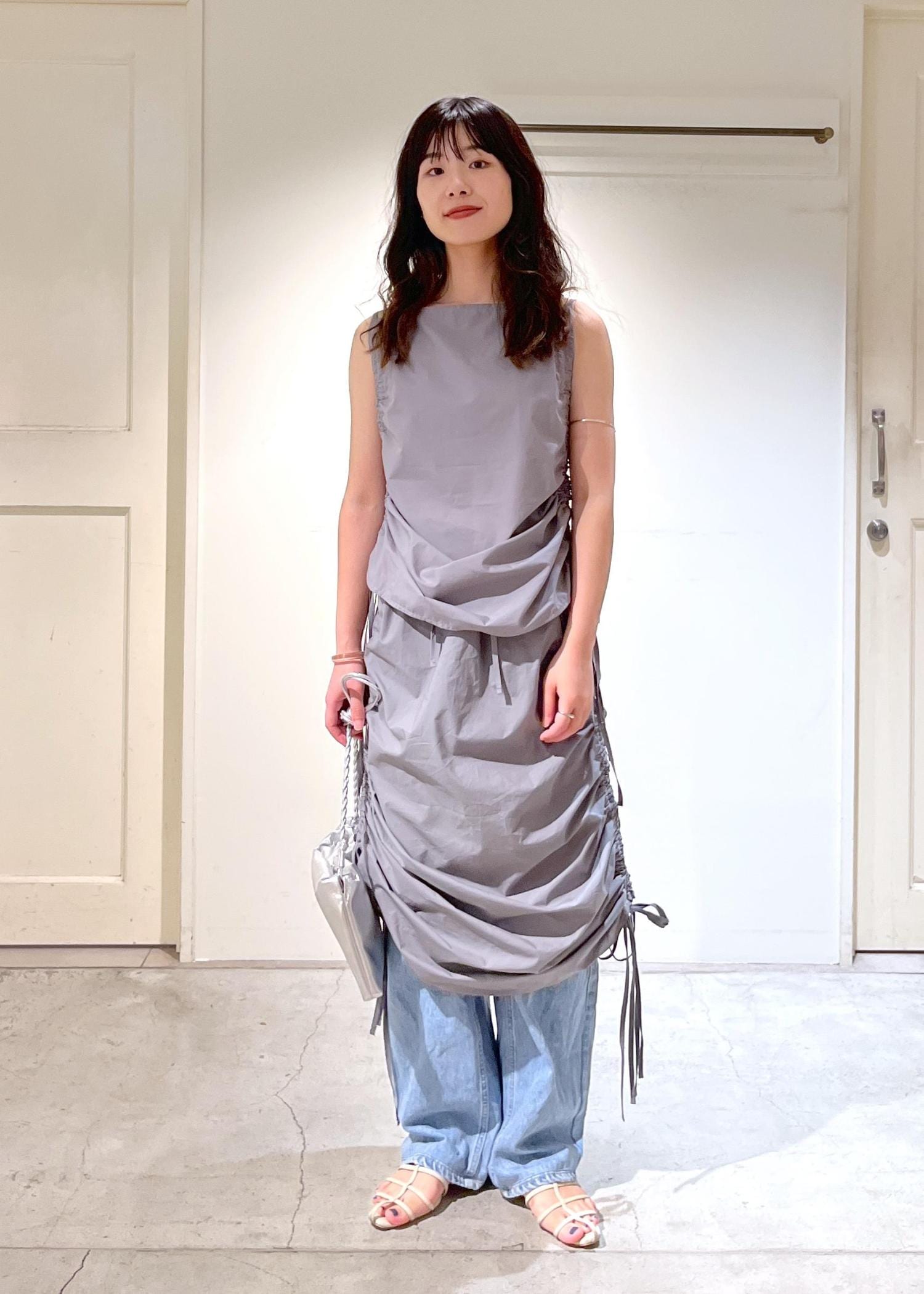 さらっと軽いコットン素材。サイドのコードで見た目の変化も自由自在。レイヤードアイテムとしても着ていただけます。 -