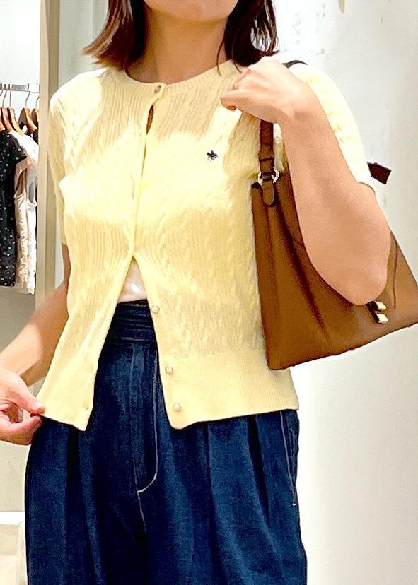 VIS【POLO BCS】VIS別注ハーフスリーブミニケーブルカーディガンイエロー / F¥6,600レビュー大人気のPOLOBCSカーディガン、細めのツイストリブデザインでとても可愛く着られます!