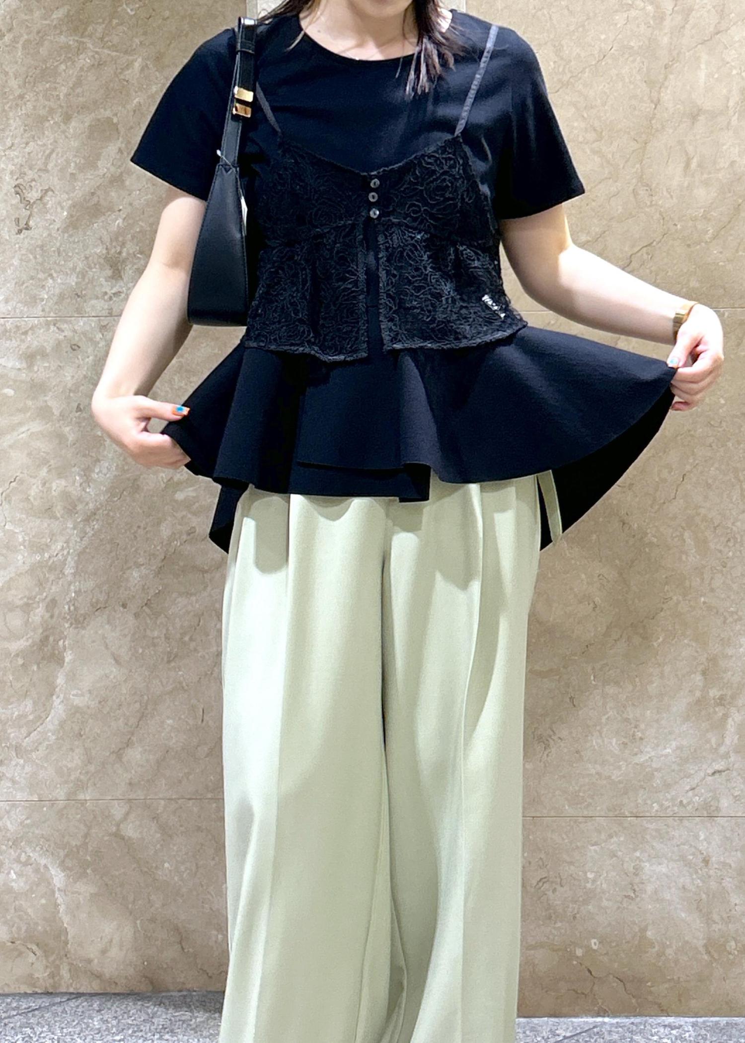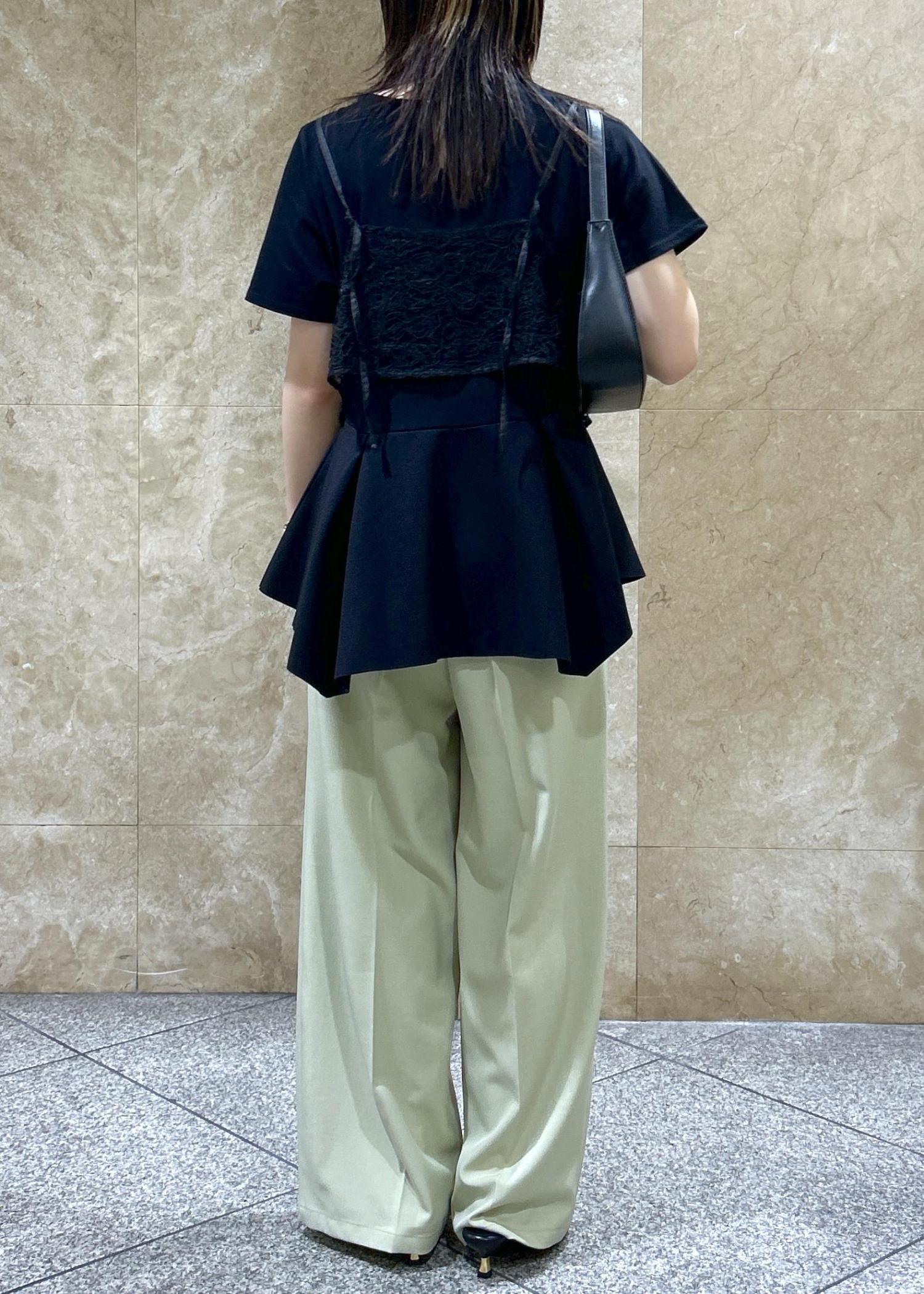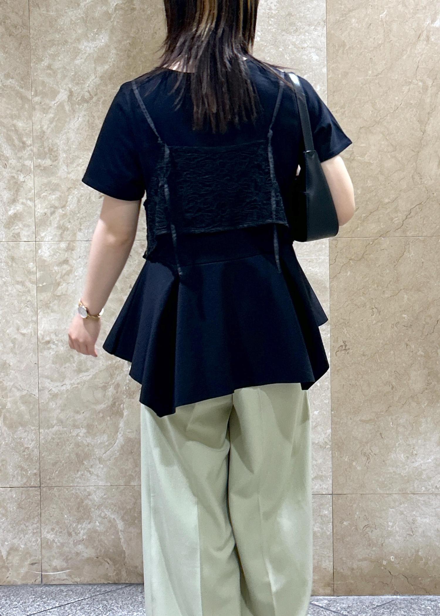 VISイレギュラーヘム異素材ドッキングペプラムプルオーバーブラック / F¥5,049レビュー丈感は前後で差があるデザインで、後ろはおしりが覆われるくらいでした。