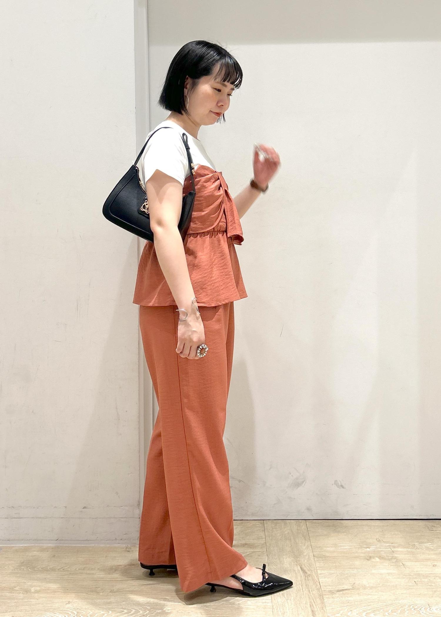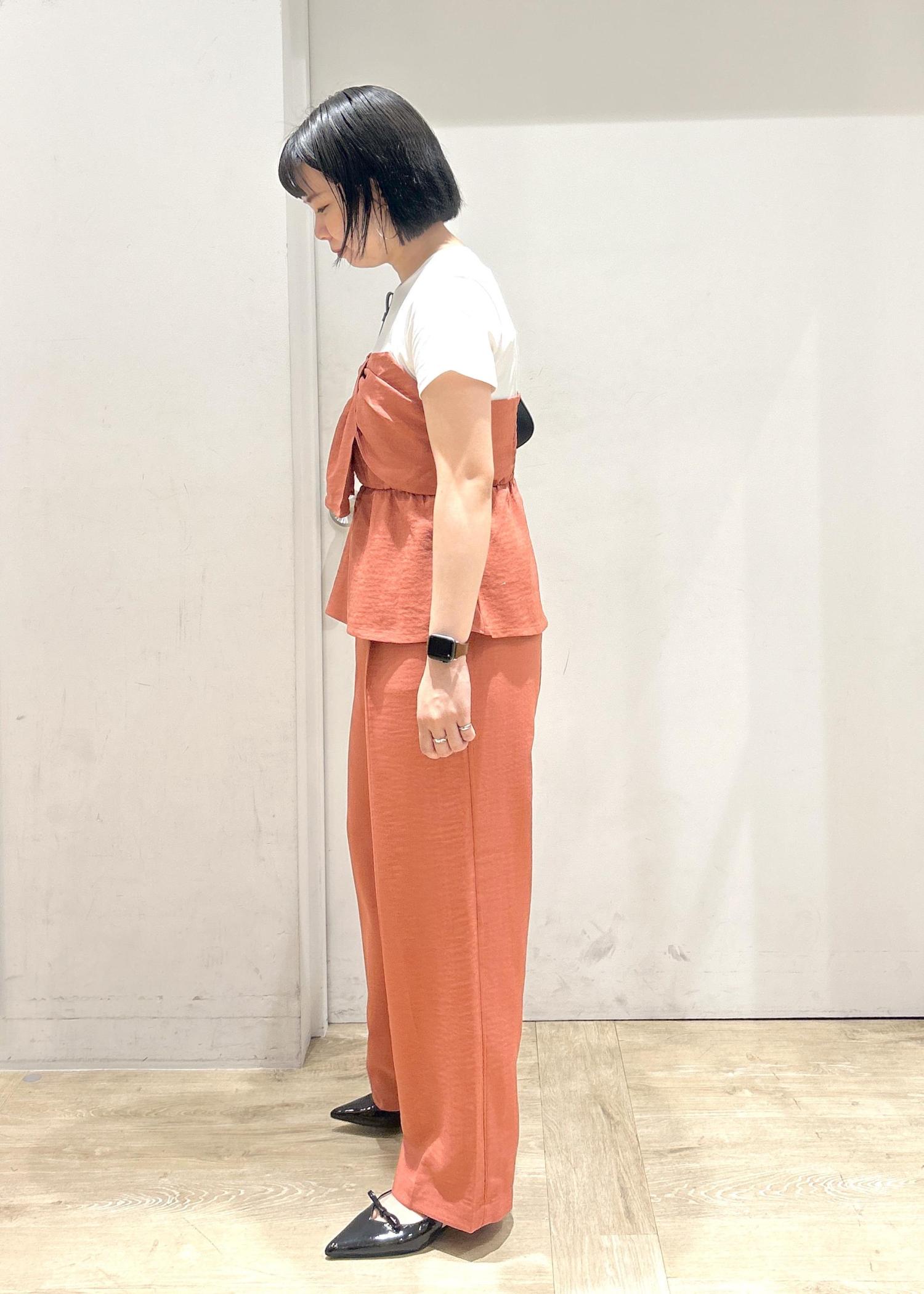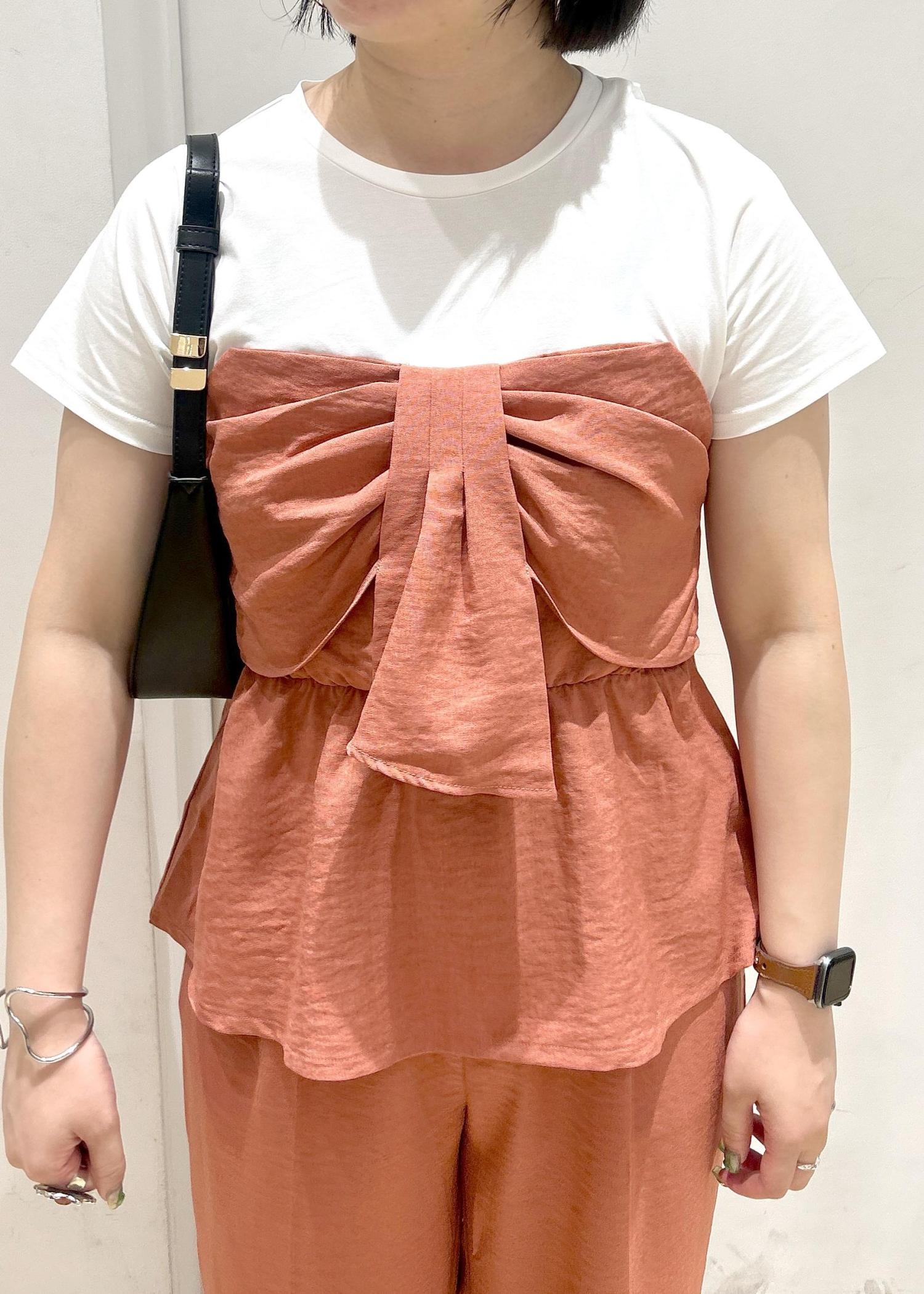 VIS【新色追加】【美easy】ねじりリボンTシャツドッキングプルオーバー【接触冷感/洗える】オレンジ系 / F¥5,489レビュー163cmでヒップラインが半分隠れる着丈です。