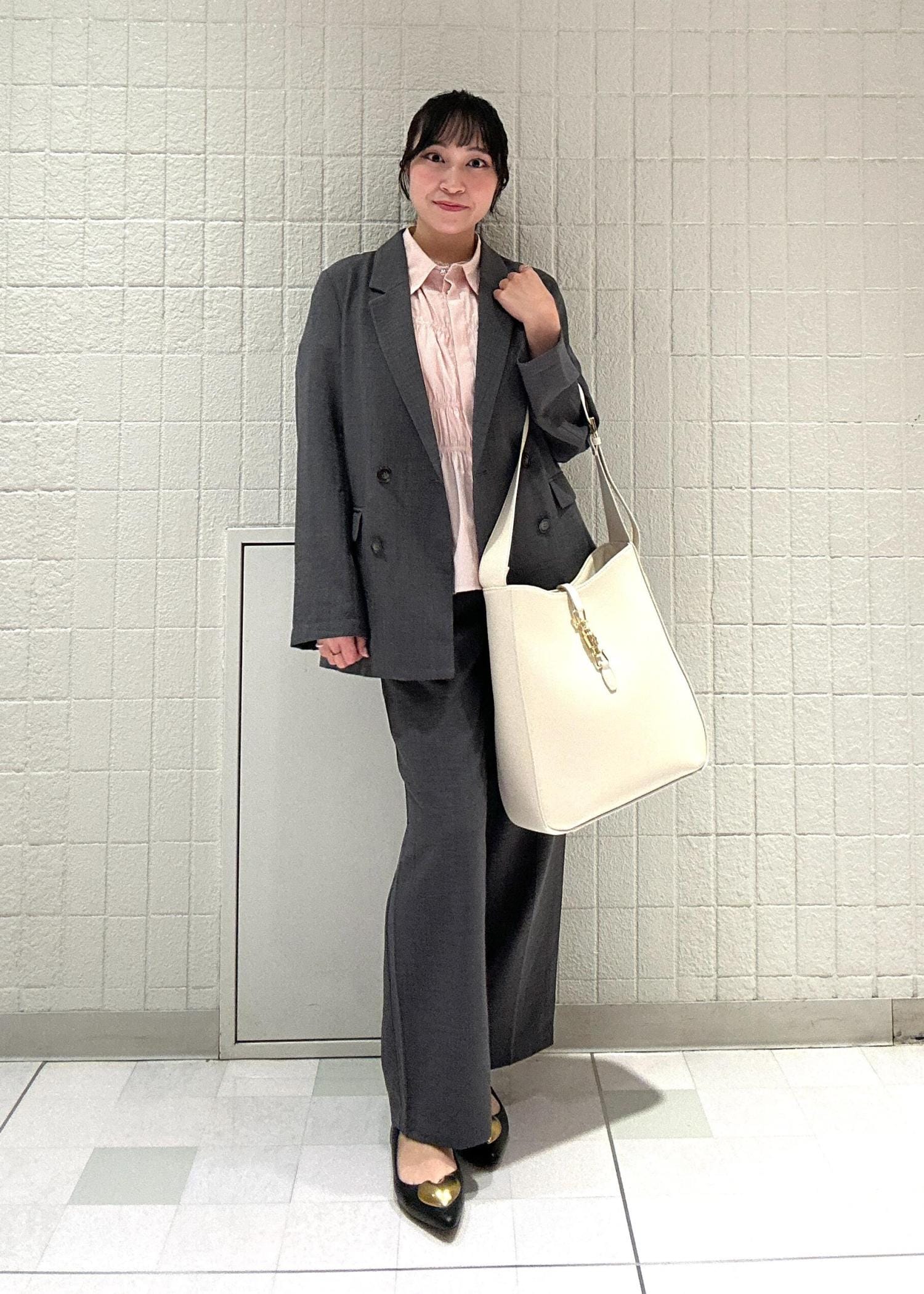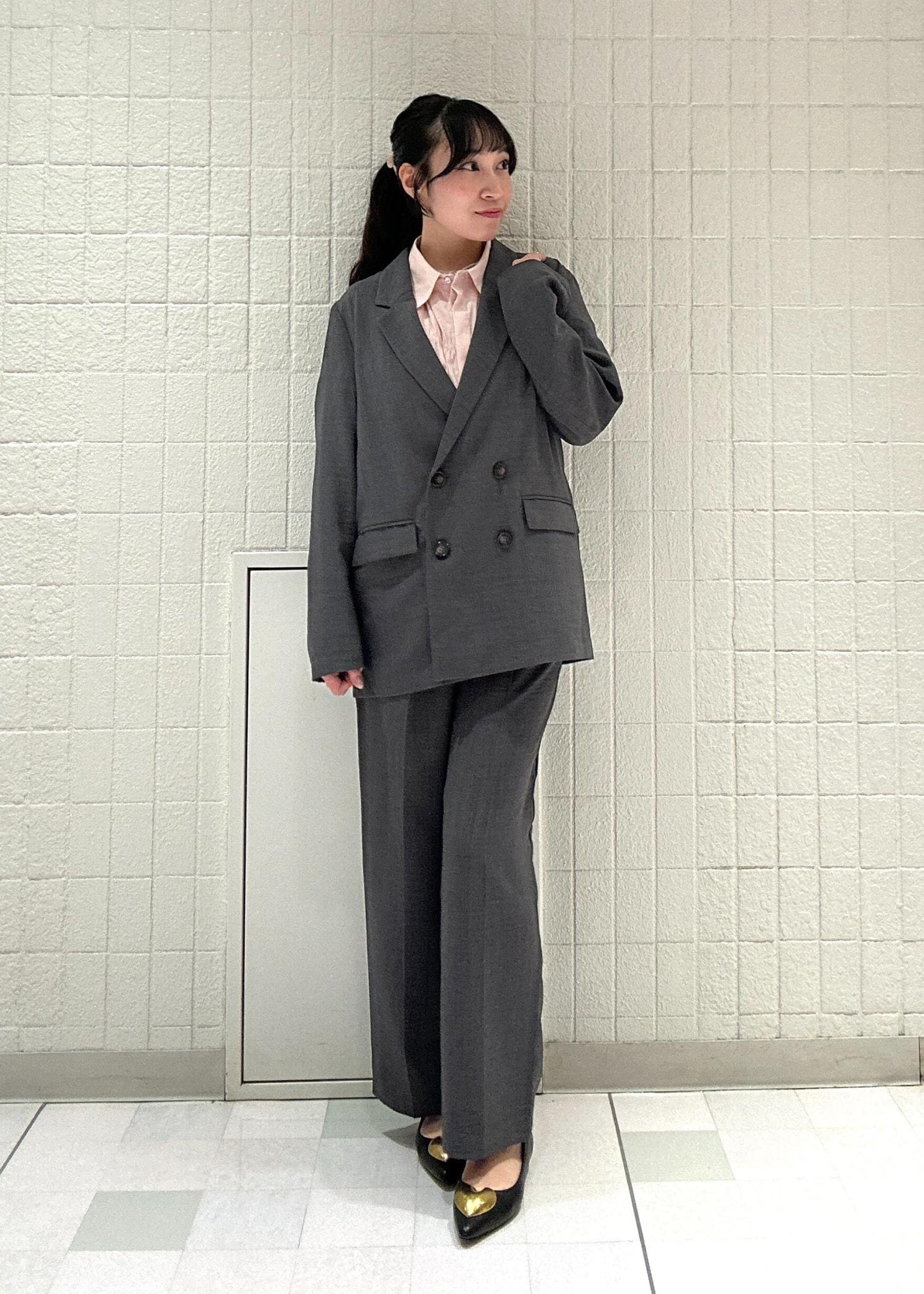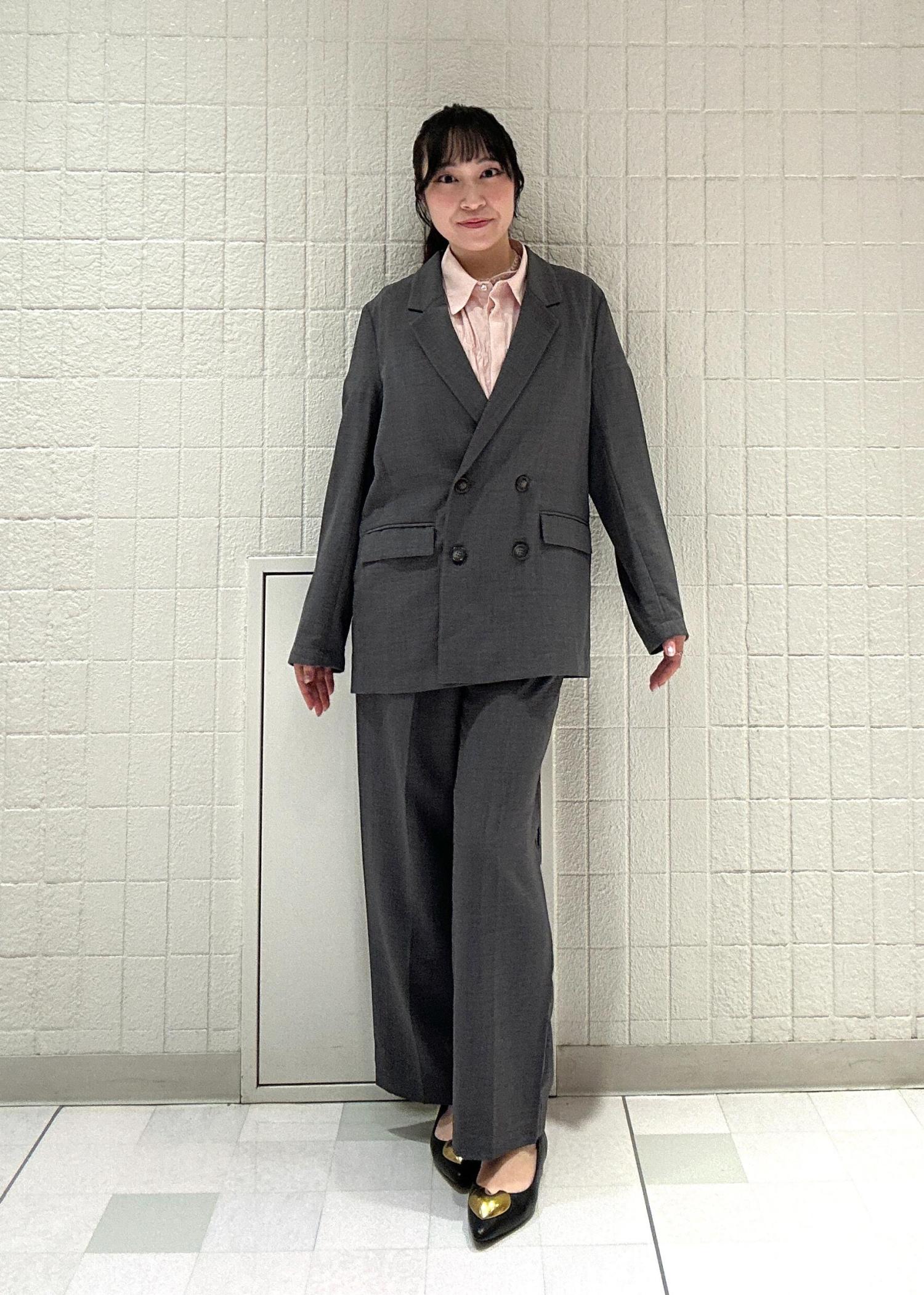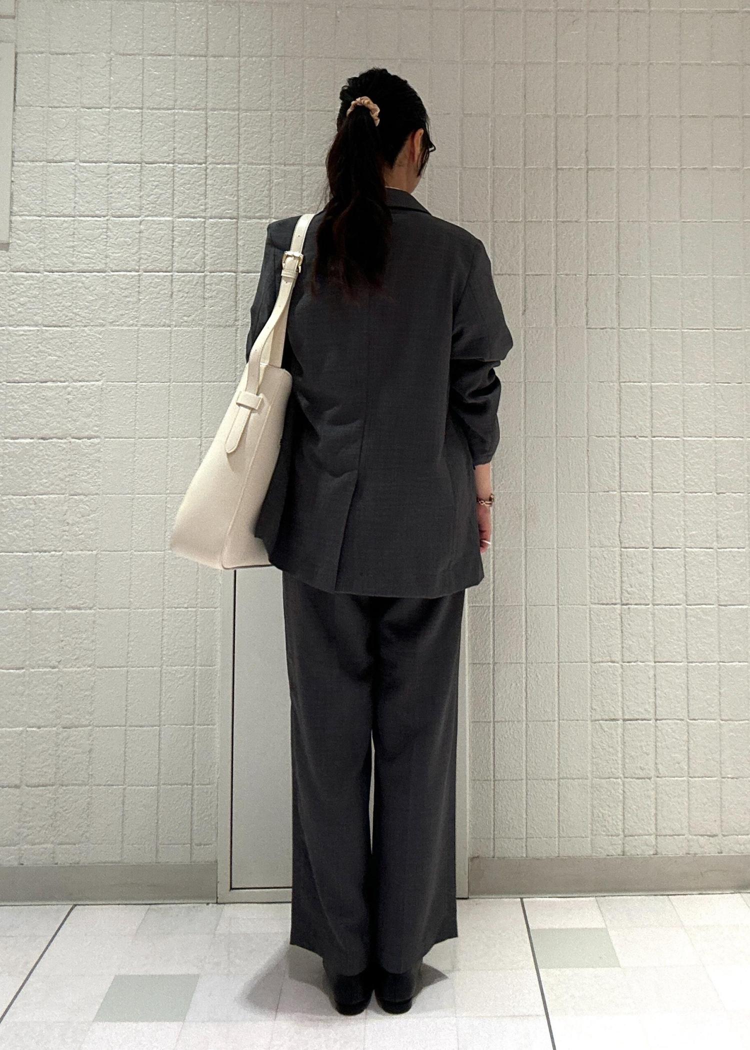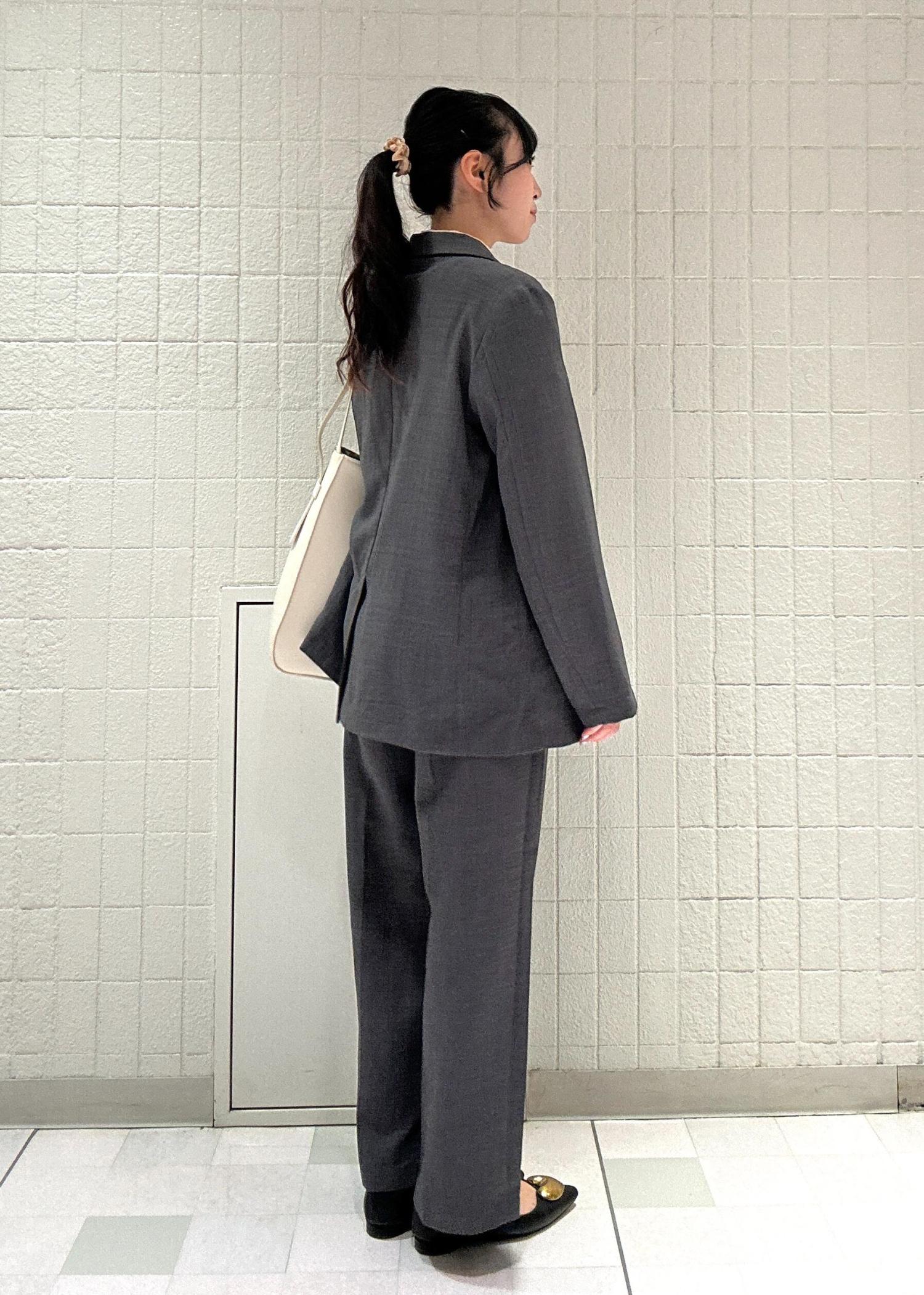 新色グレーは黒っぽすぎずセットアップで着ても、カッチリスーツっぽさなく、重たすぎなく着用できます◎