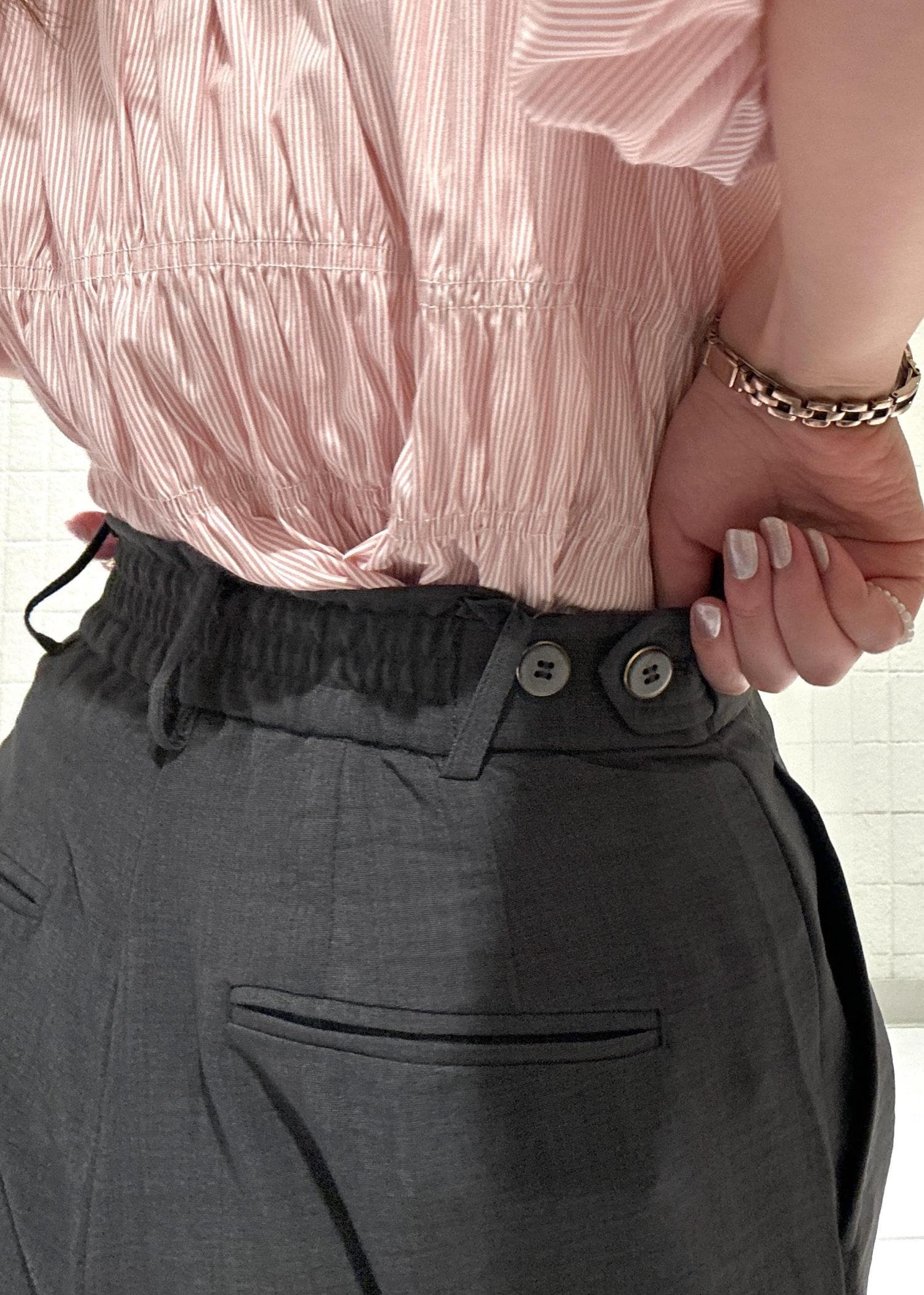 ウエストも左右で調整ができ、ウエスト感もSサイズがピッタリでした。 -