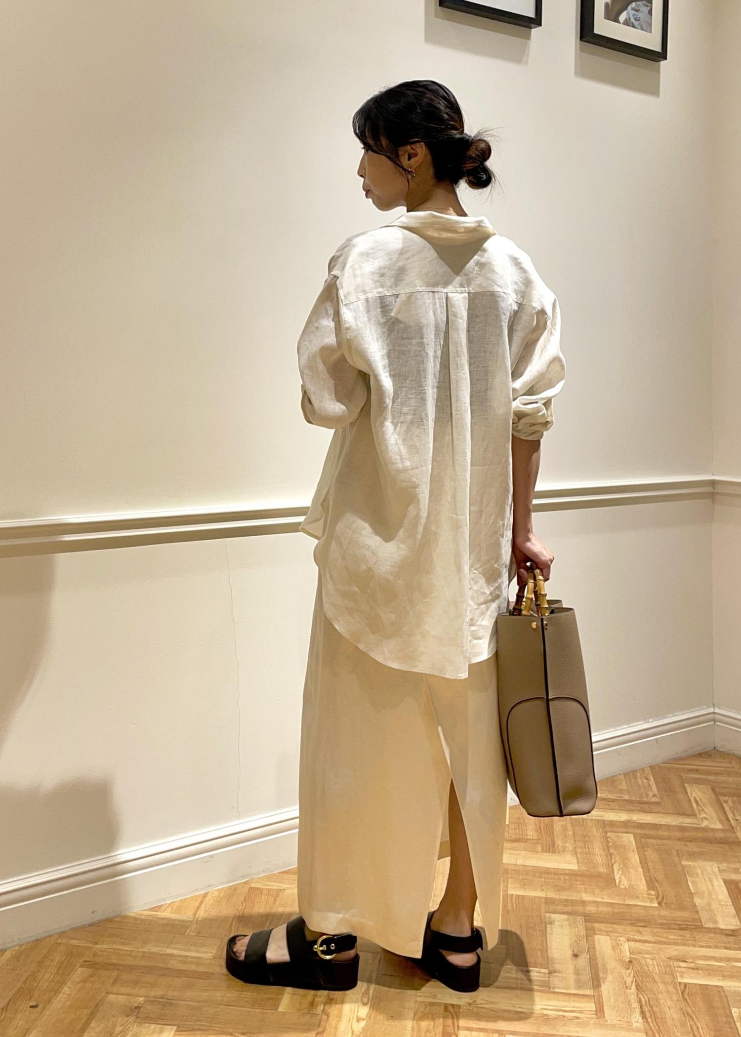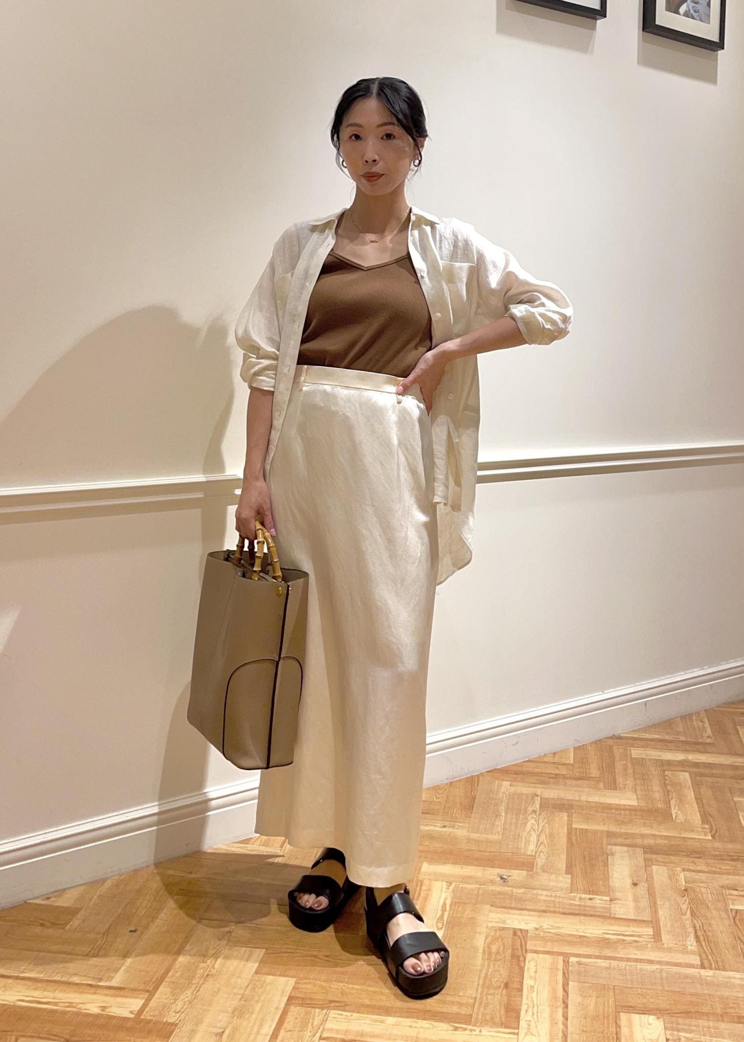 アウトレットROPÉアセテートリネンバッククロススカート/洗えるオフホワイト / 38¥11,550レビューバックのシルエットが綺麗なリネン混のスカート。