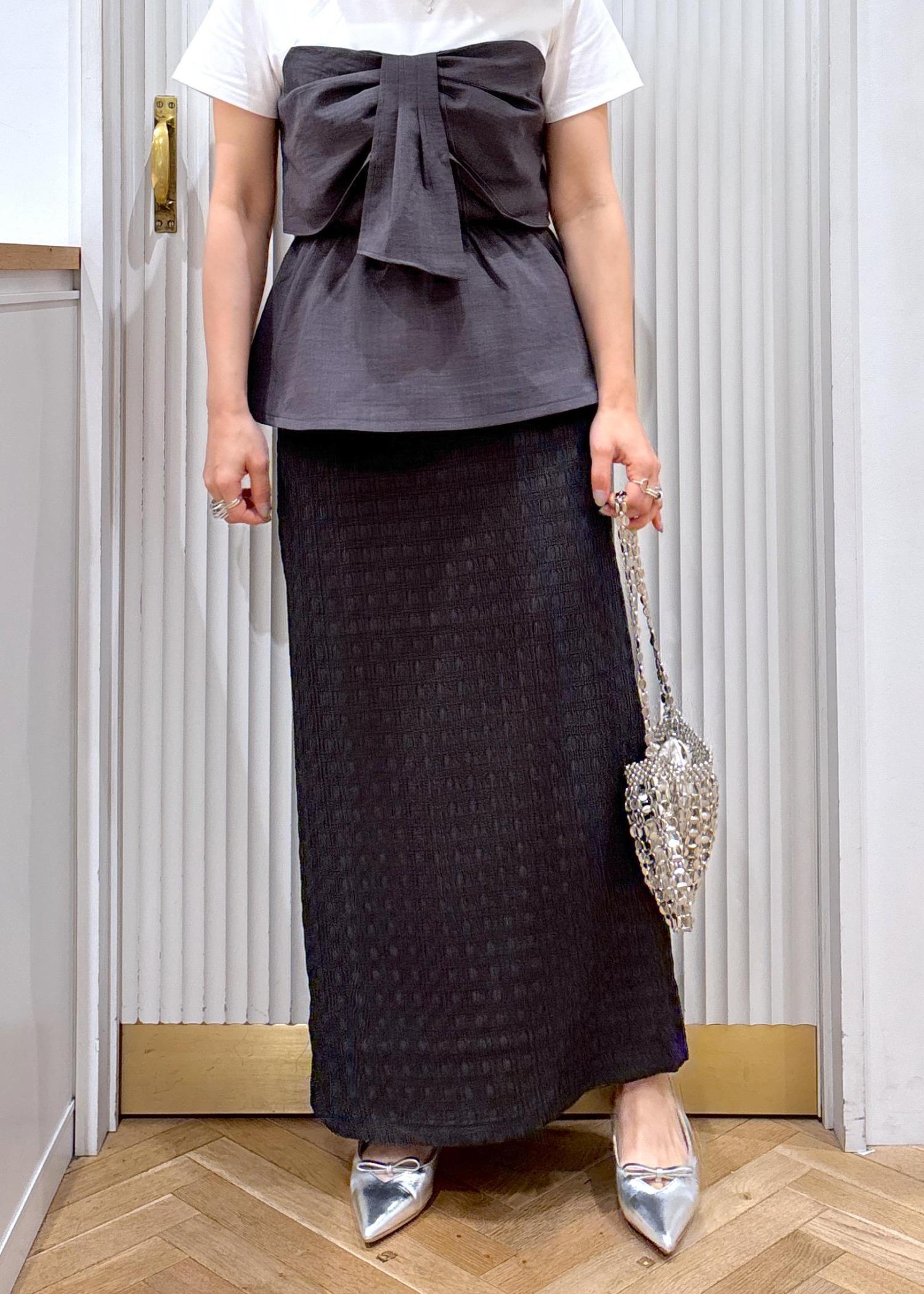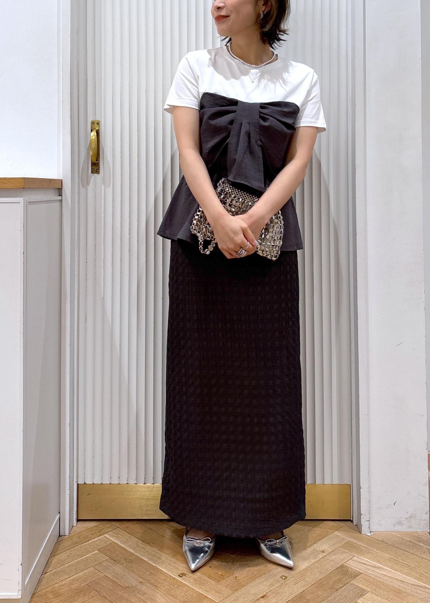 色味は似てますが、スカートはジャガード生地をチョイスし、メリハリを出してのっぺりしないようにしてみましたよ♫