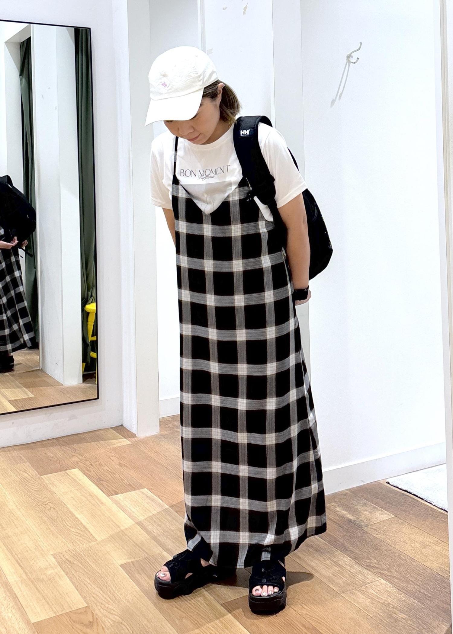 ROPÉ PICNICオンブレチェックキャミソールワンピースブラック / 38¥5,995レビュー秋まで着られるキャミワンピです☺︎着丈は153㎝の私が着用で足首くらいの丈感ですが、紐で着丈は調節できます♪♪