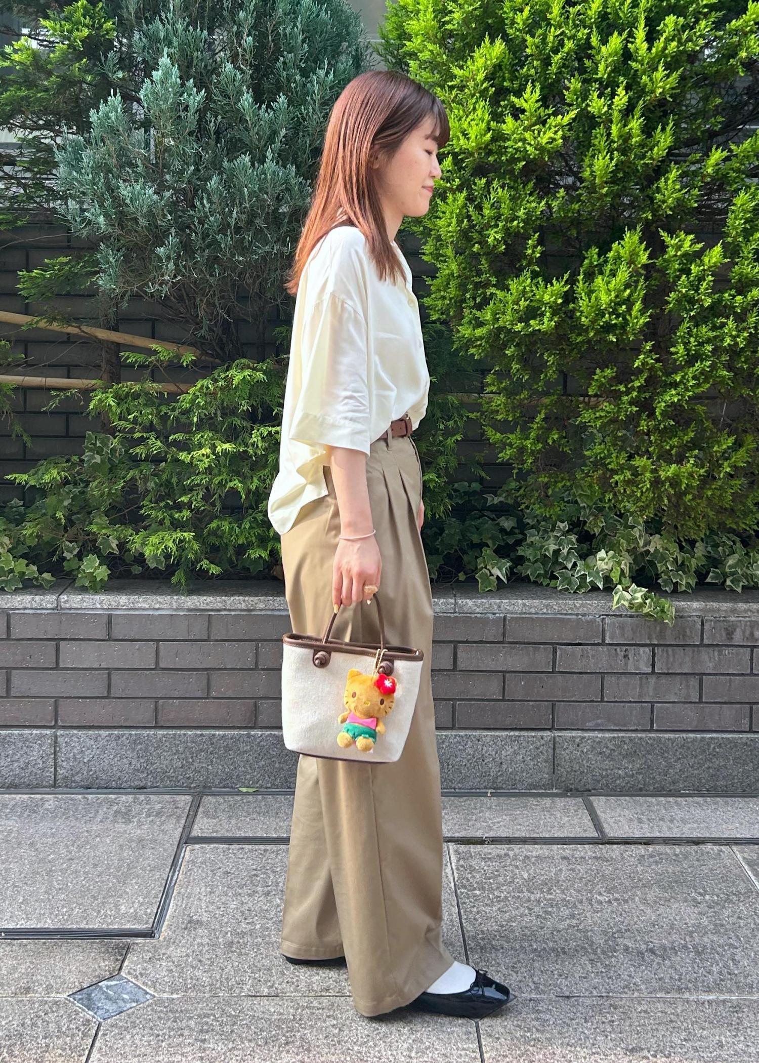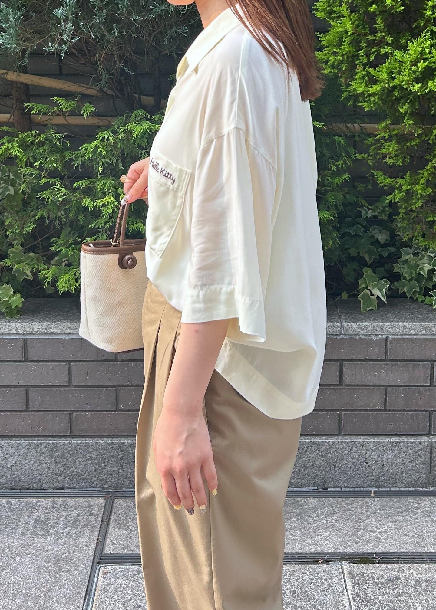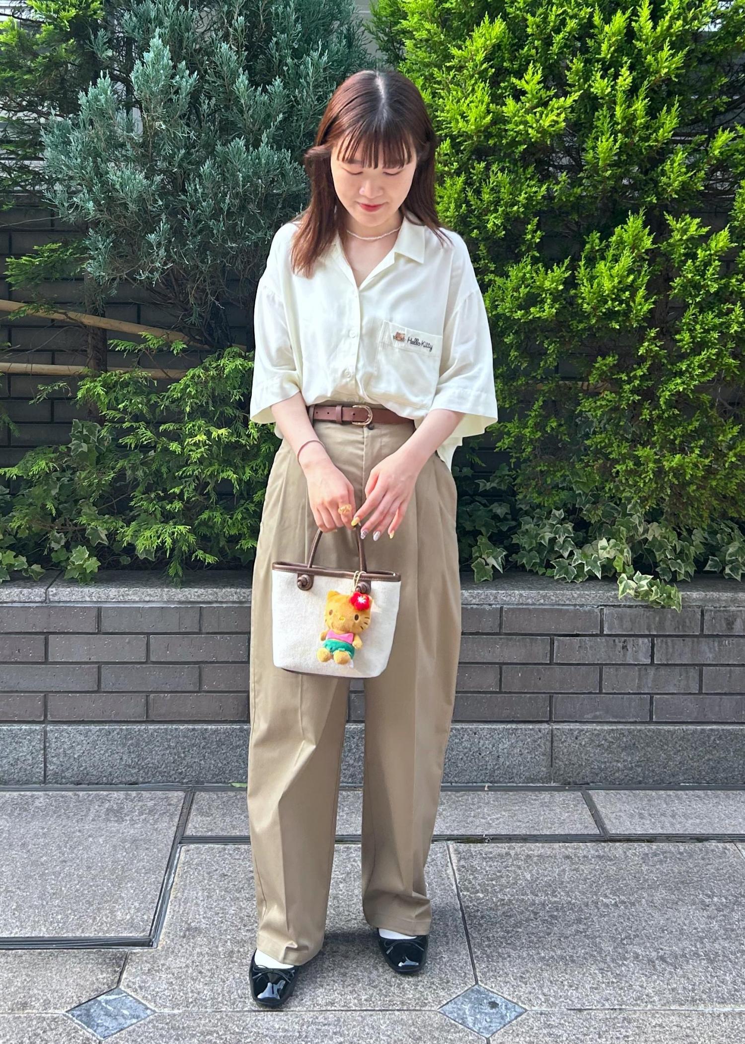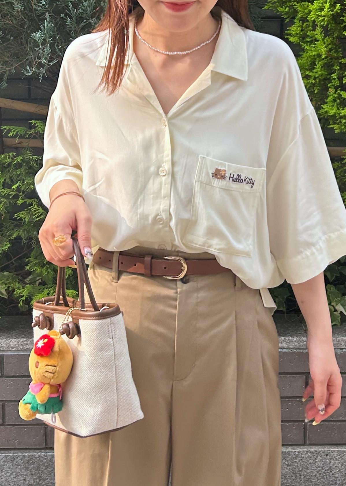 ハローキティのロゴが可愛いシャツと、パンツスタイルで合わせた夏コーディネートにしました。