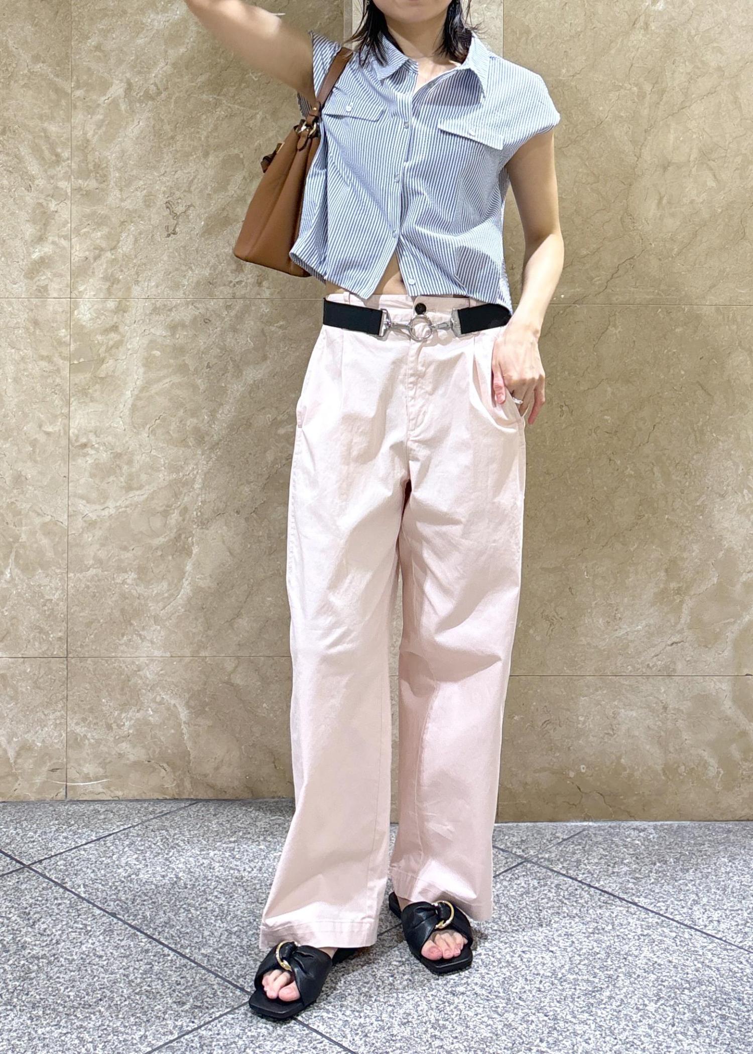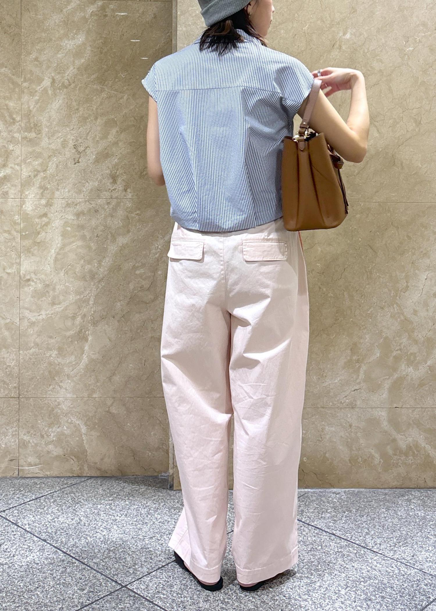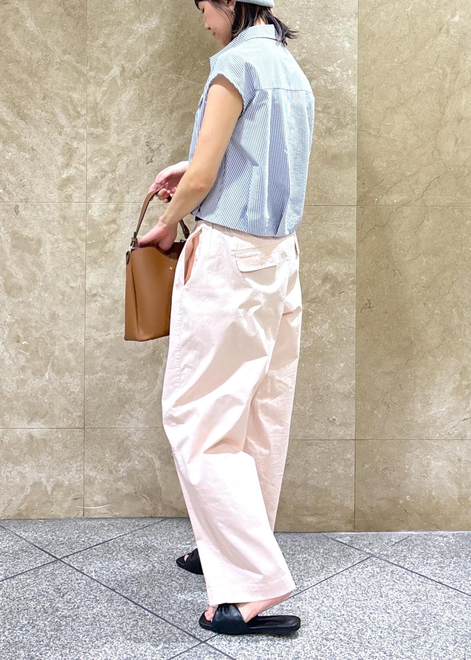 コットンのカジュアルなカラーパンツと合わせてキャッチーで爽やかなスタイリングに!