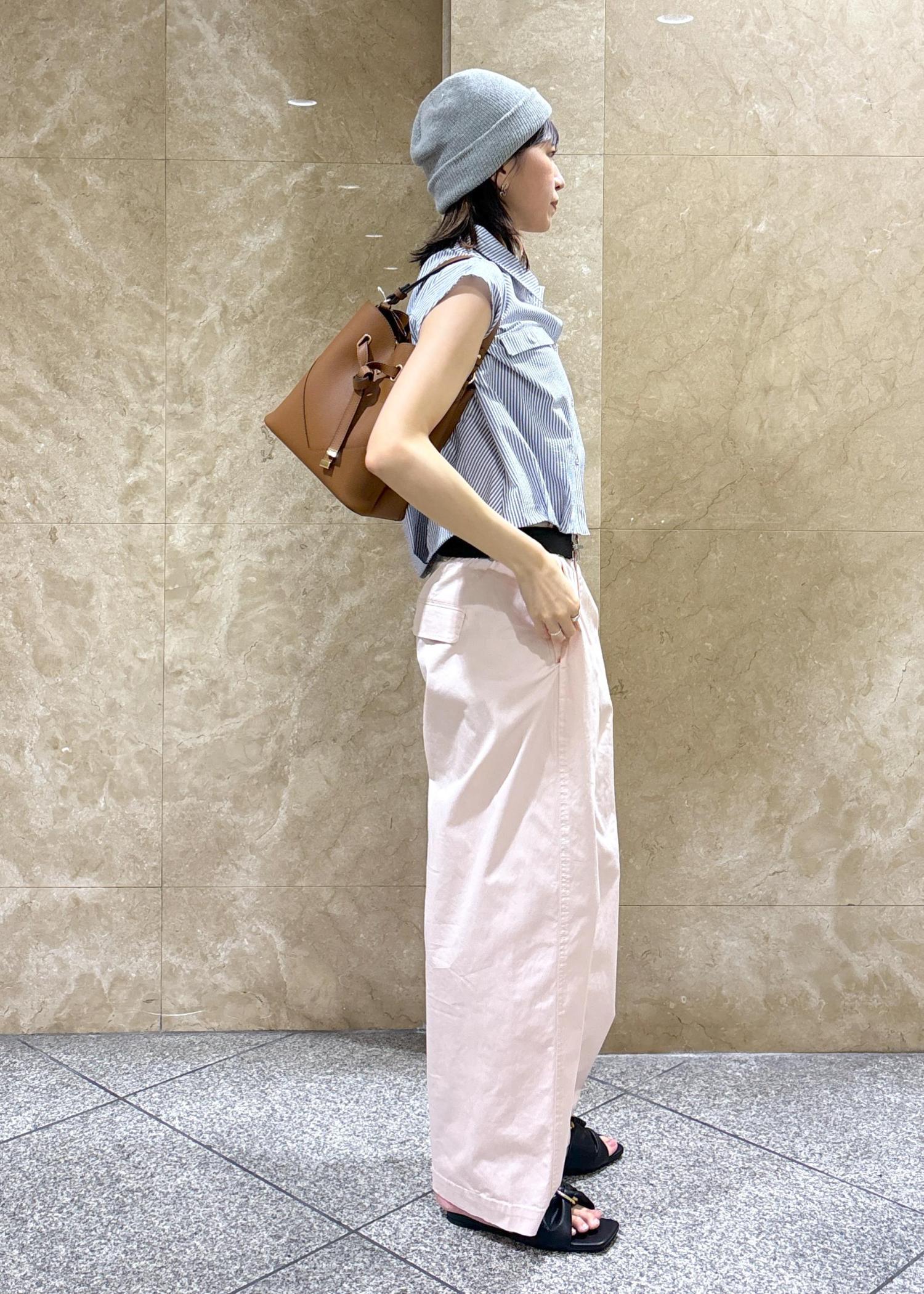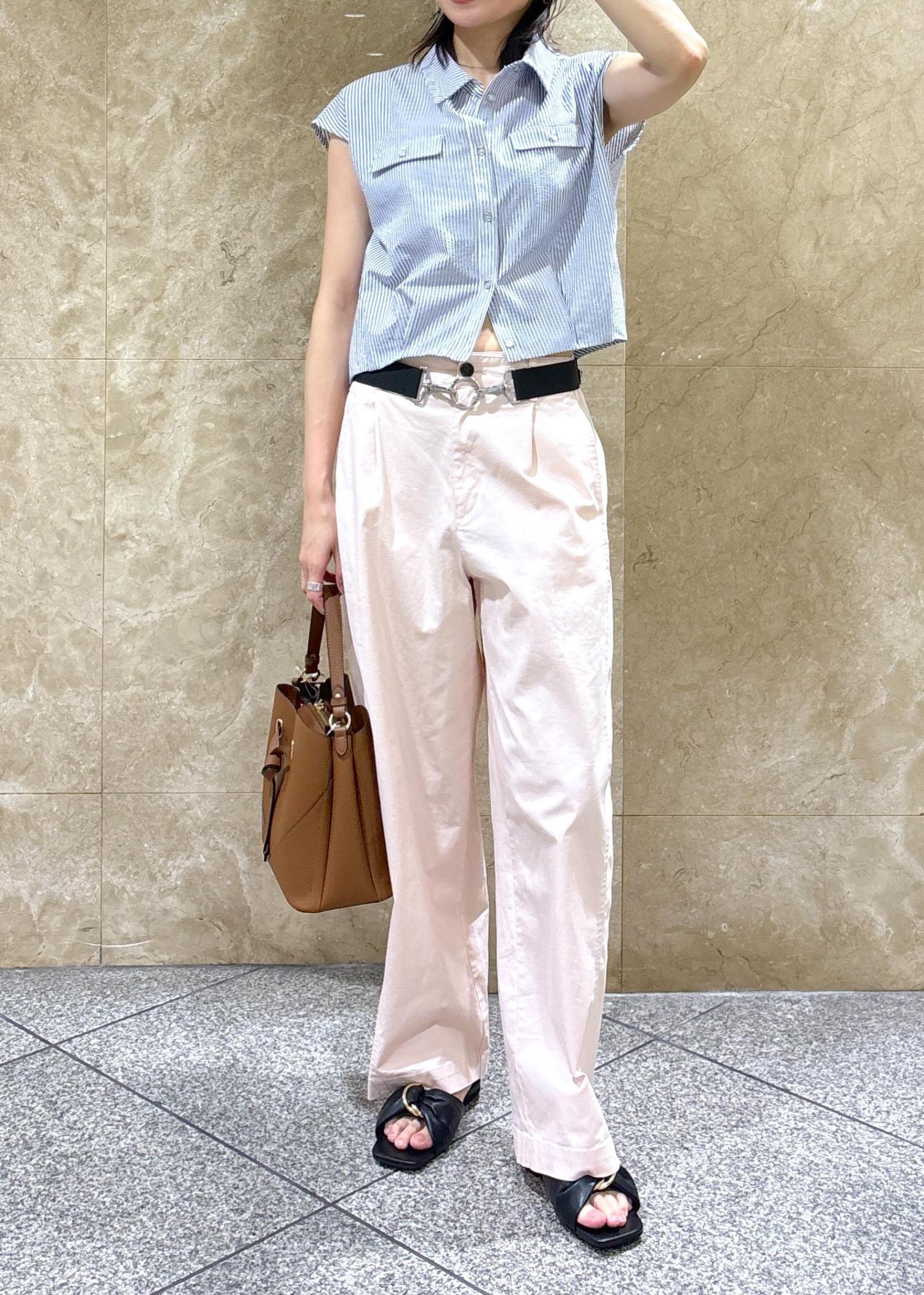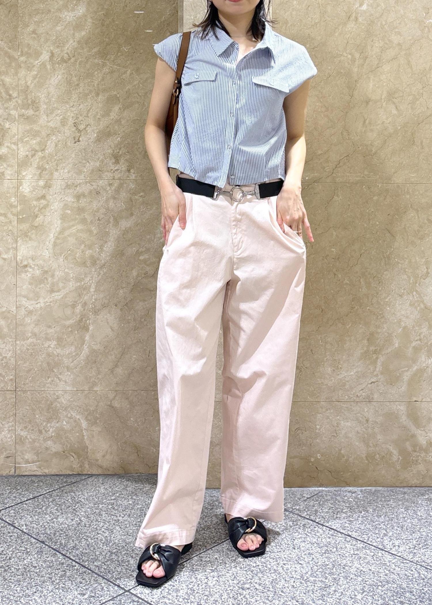 コットンのカジュアルなカラーパンツと合わせてキャッチーで爽やかなスタイリングに!
