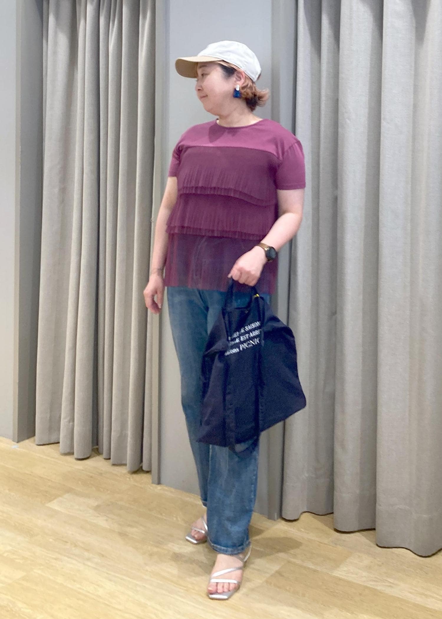 ティアードデザインのトップスは、気になるお腹まわりをさりげなくカバーしてくれる頼れるアイテムです。
