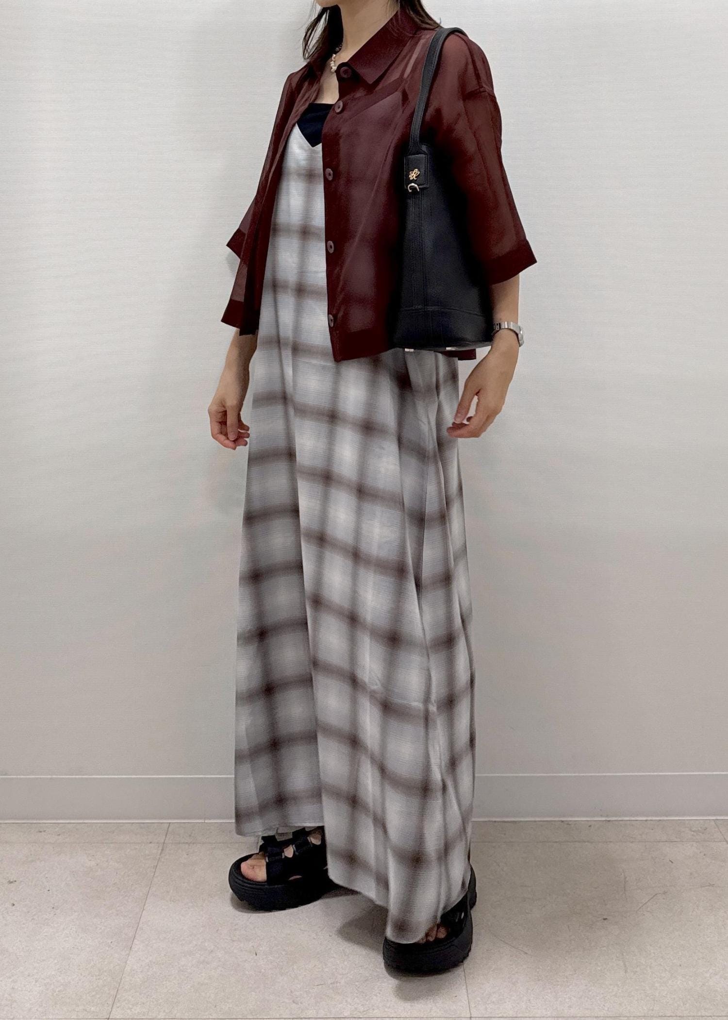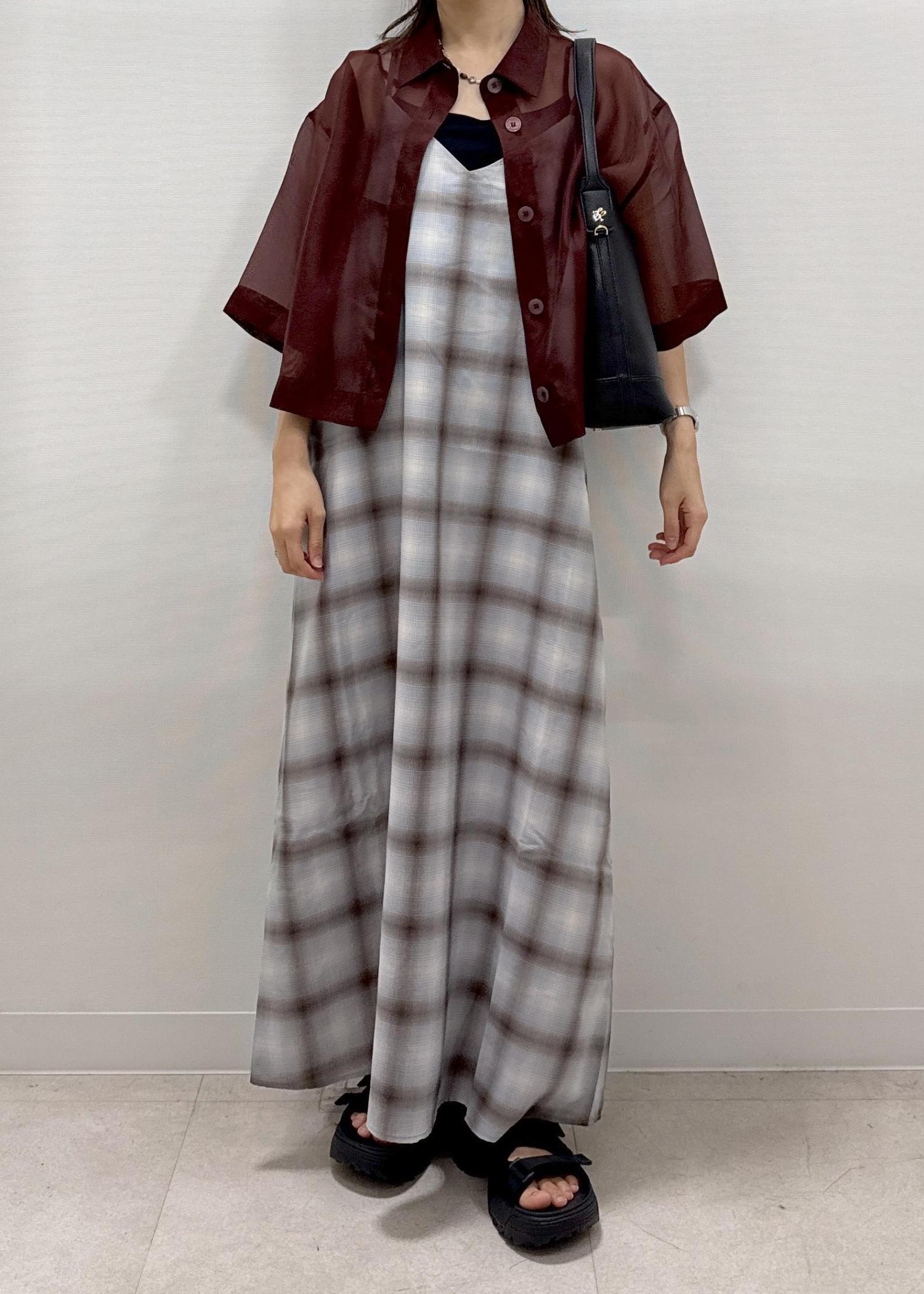 キャミワンピースにシャツを羽織ったカジュアルコーデ