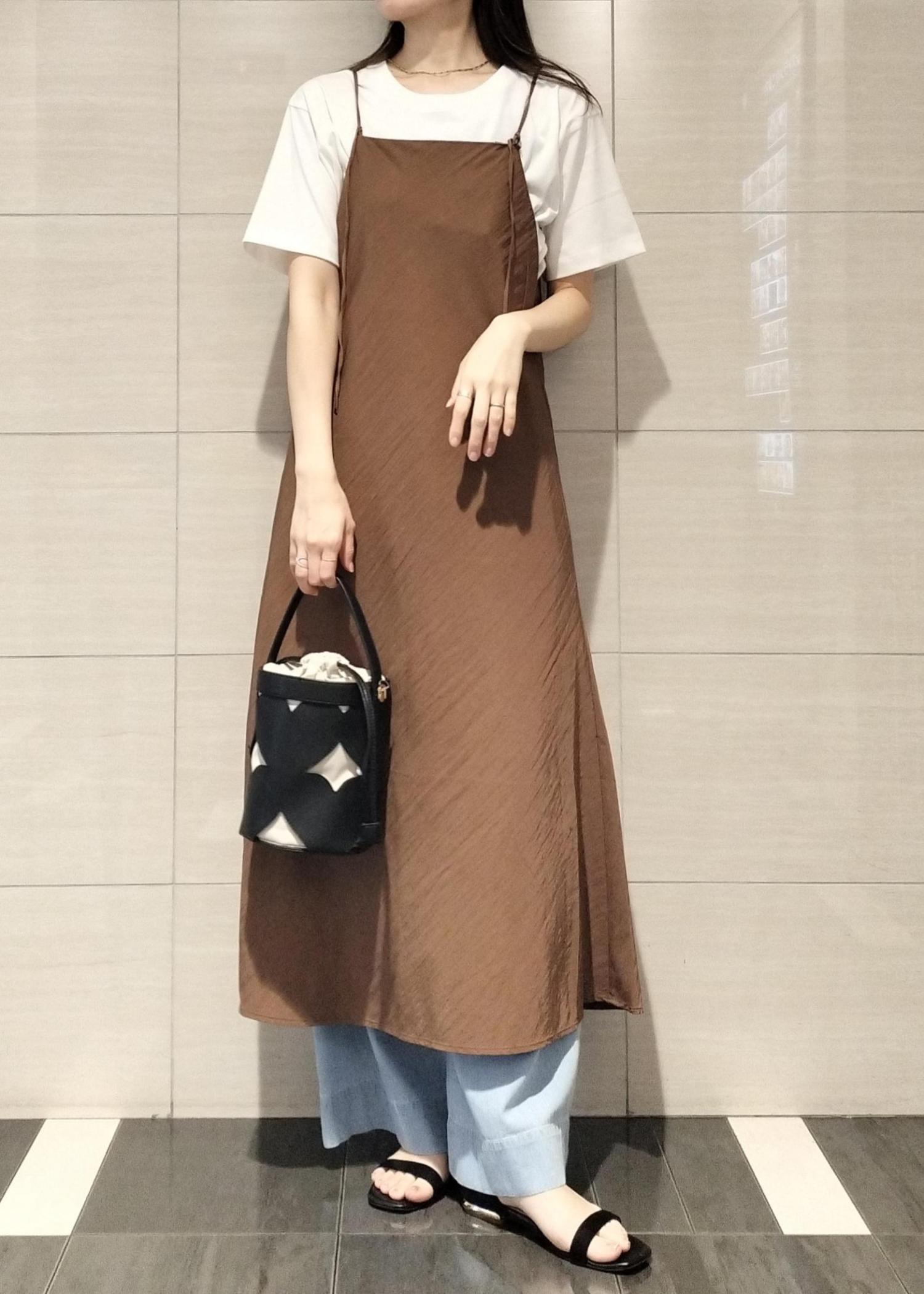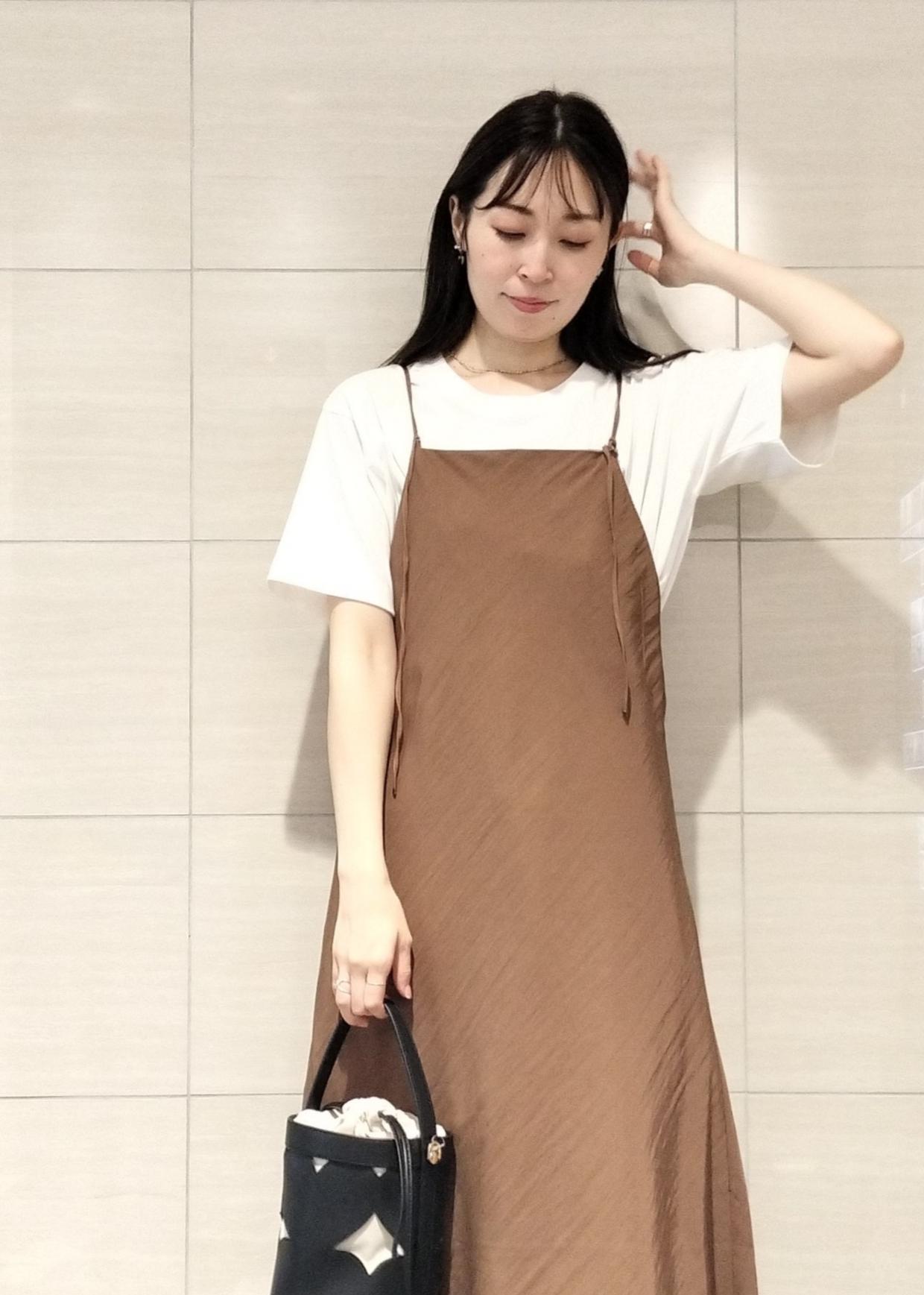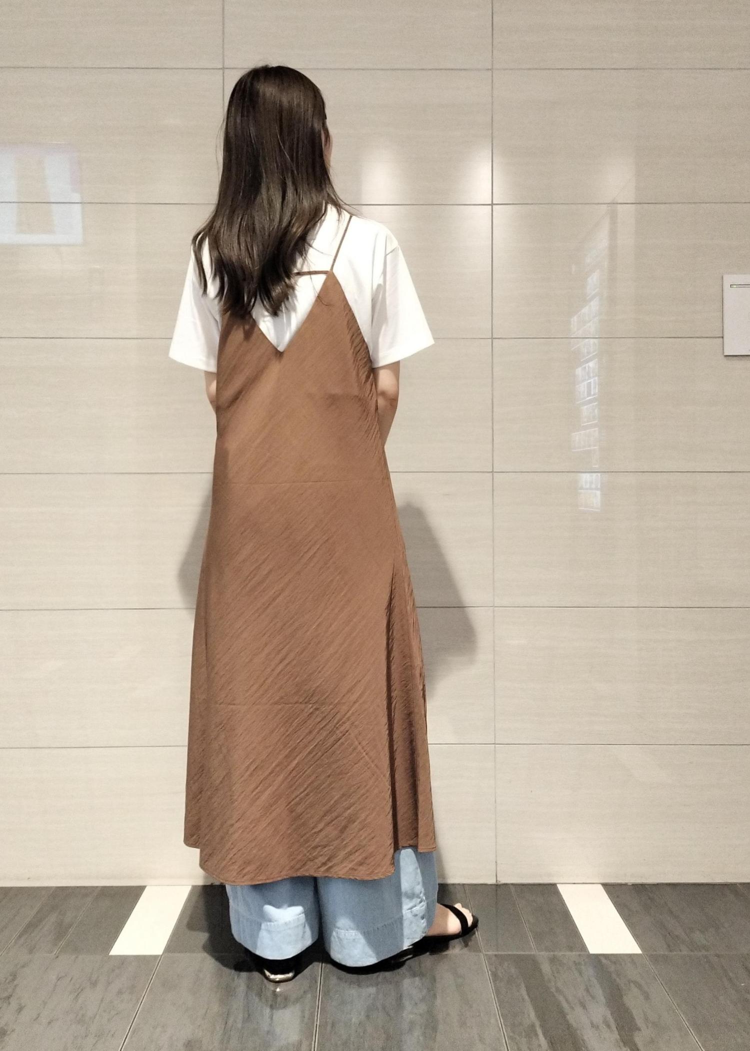 テロンとした素材がおしゃれなキャミワンピース♪カラーも落ち着いており大人な雰囲気です♪Tシャツや羽織りと合わせていただける飽きのこないキャミワンピースは一着持っておくと着回せます♪