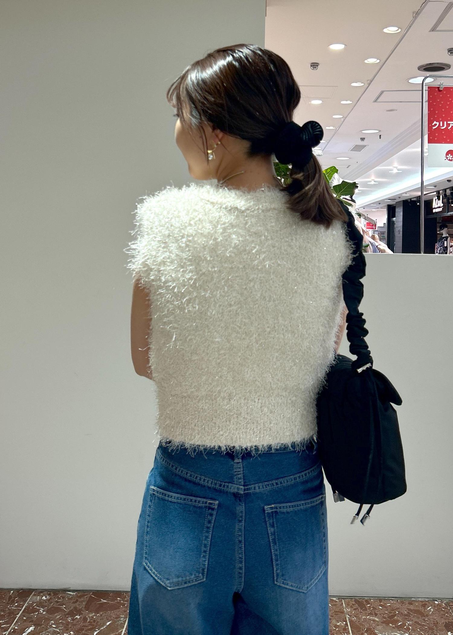VIS【WEB限定サイズ:MT/着丈が選べる】【洗える】フェザーヤーンニットベストキナリ / M¥2,745レビュー毛足がありキラッとラメ感が可愛いフェザーニットベスト!