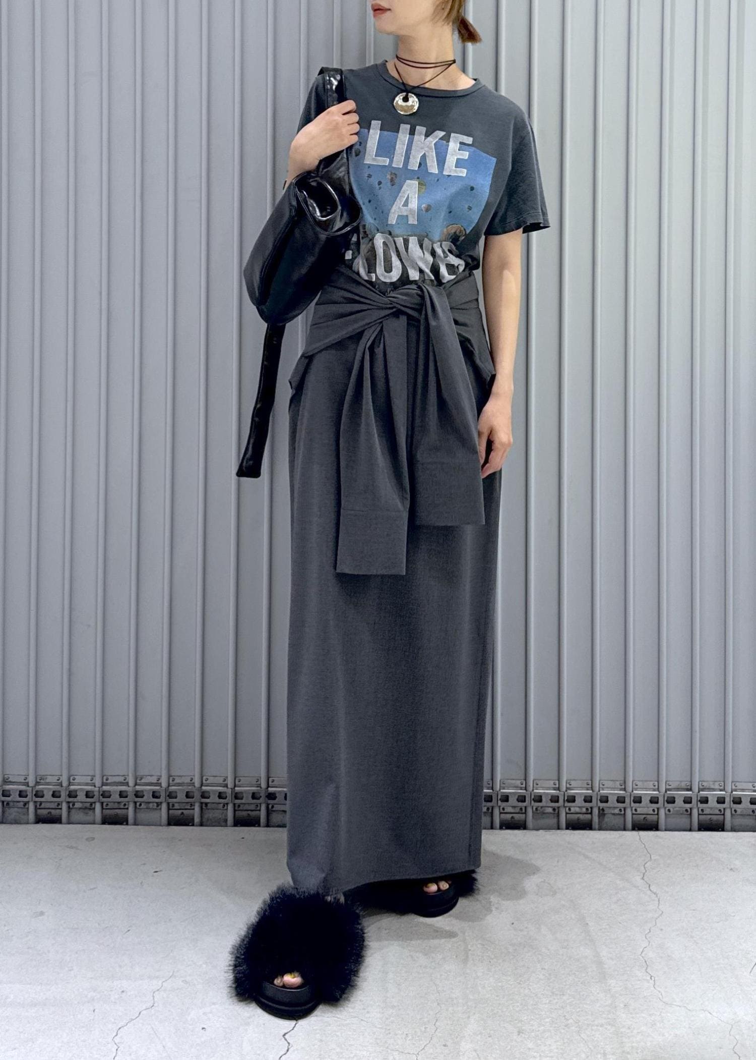 今回は腰巻きにして着こなしてみた、こちらのスカート…