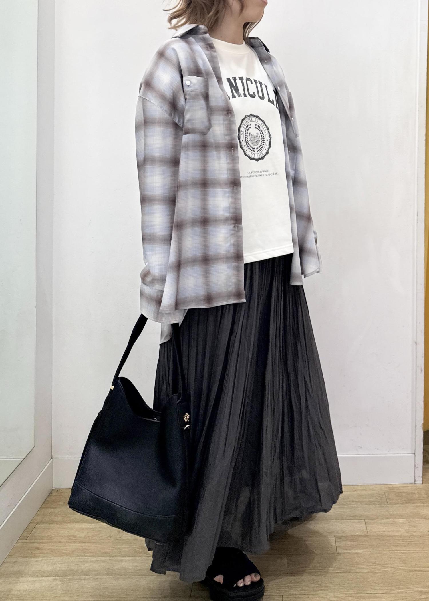 細かめのプリーツなので、広がり過ぎないゆるやかなフレアなシルエット。