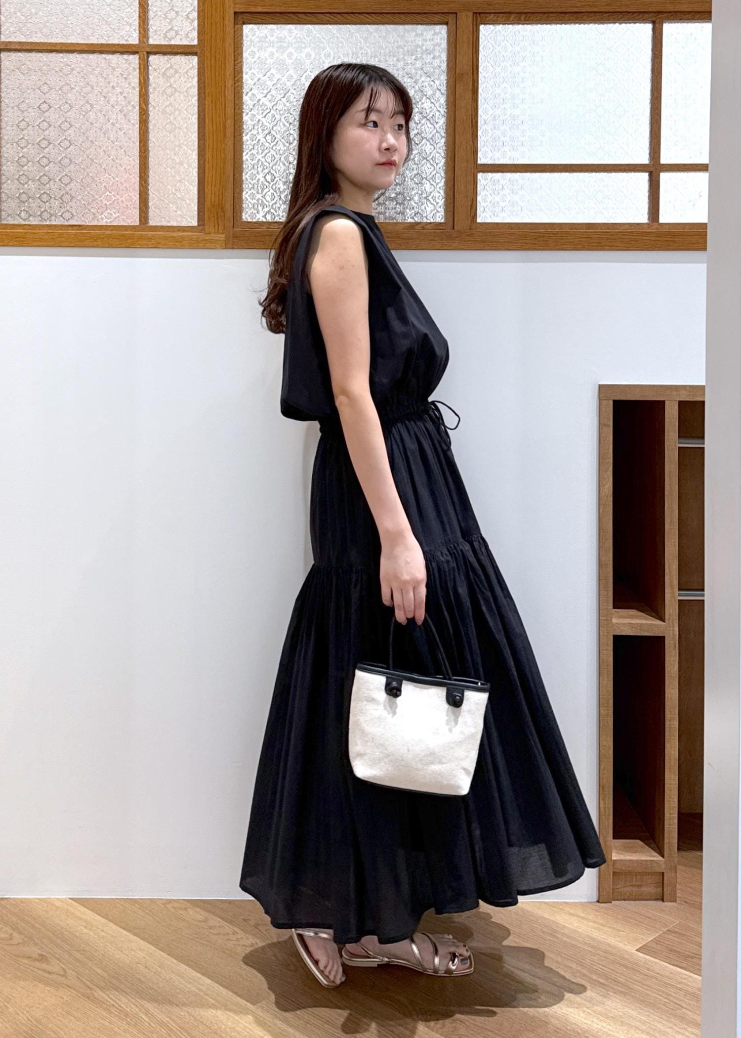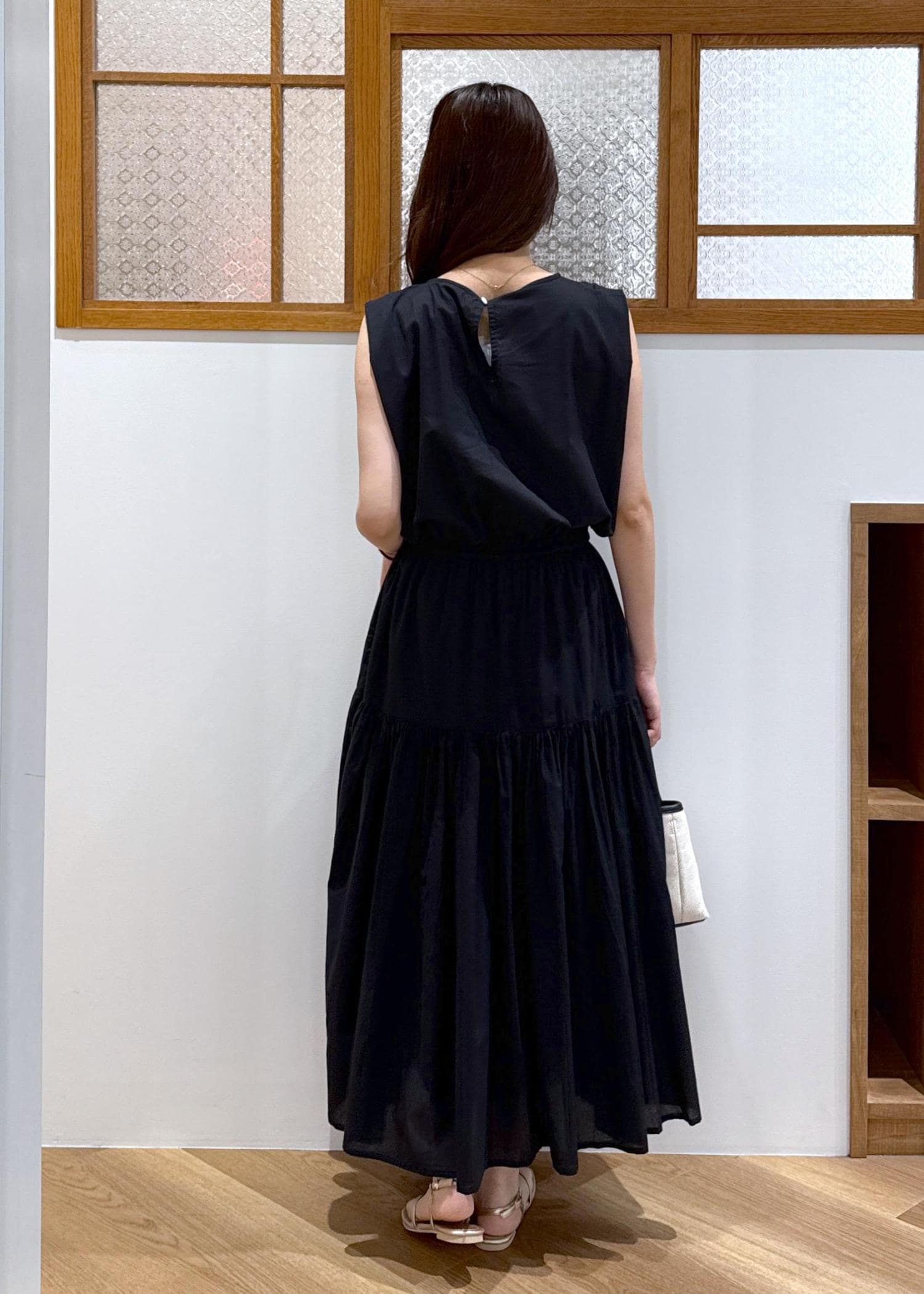 ブラックのワンピースを1枚でさらっと着こなしてみました。
