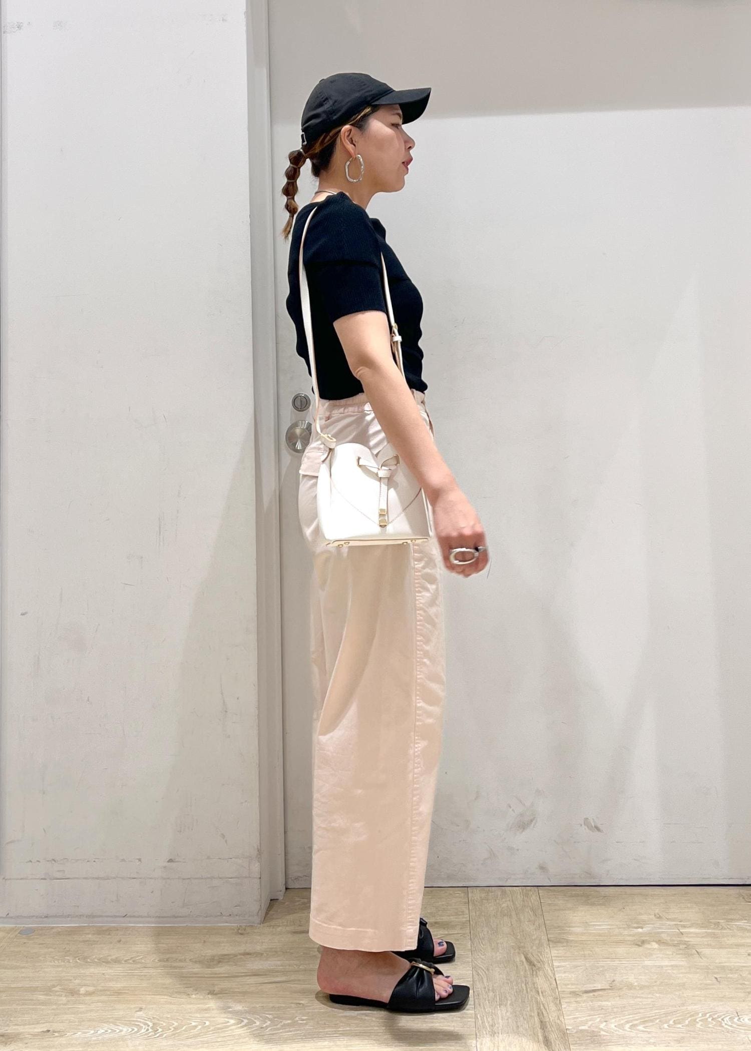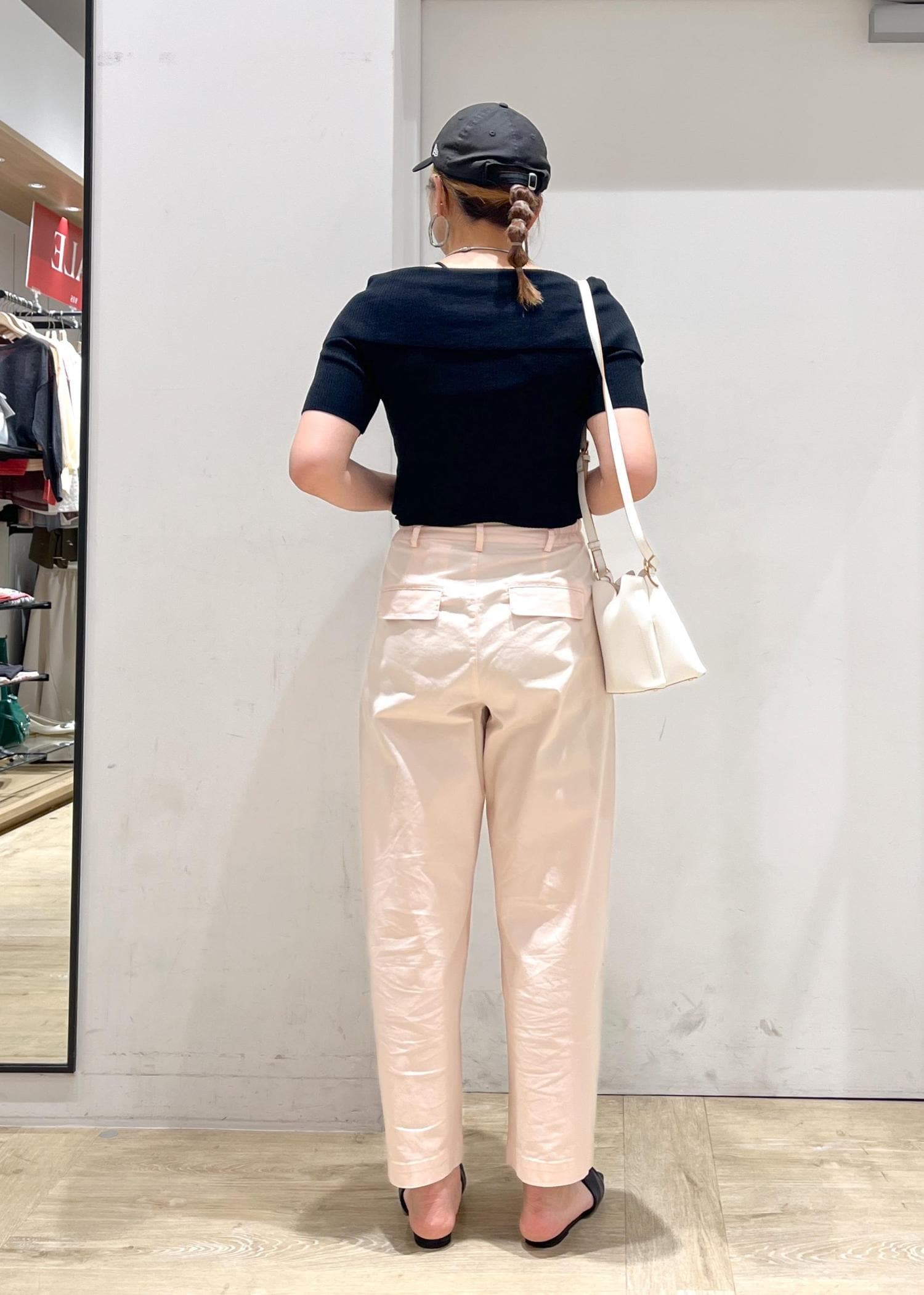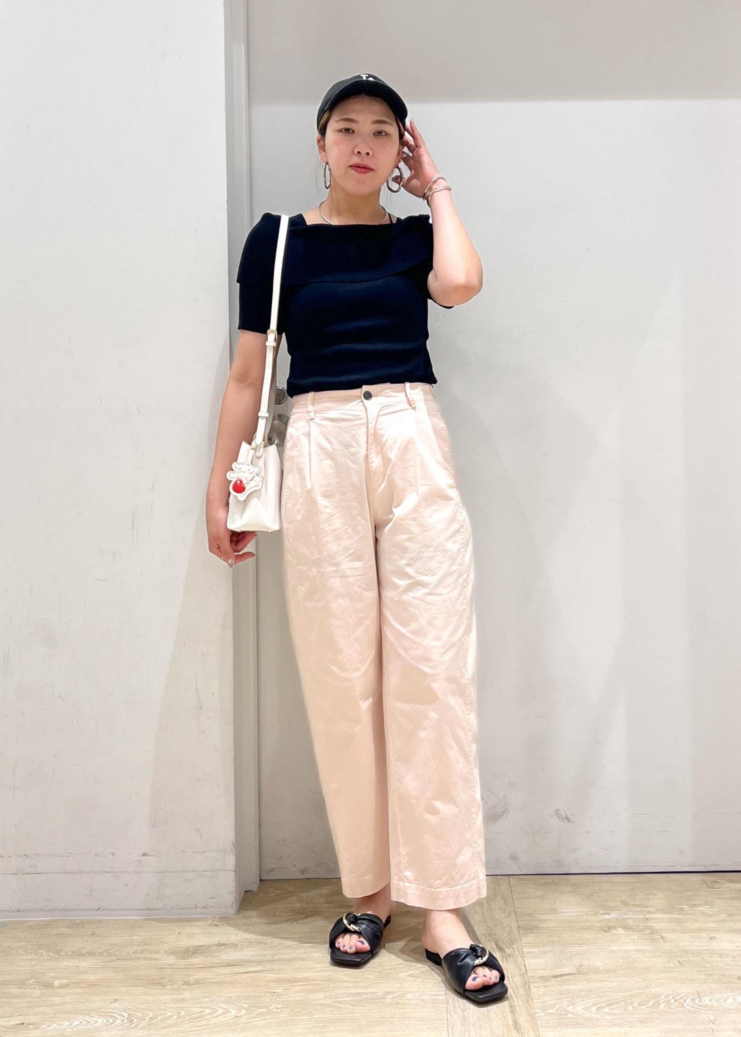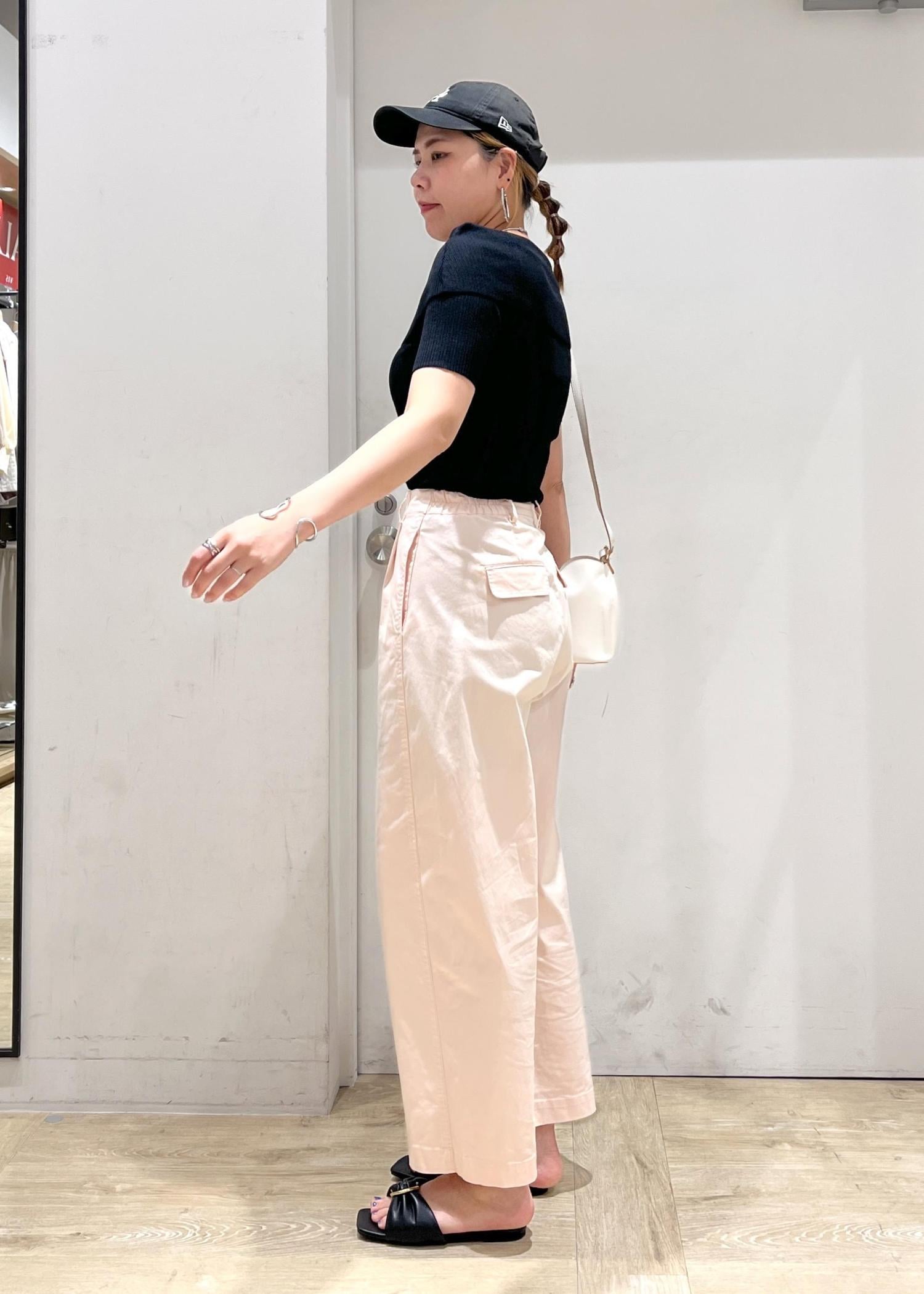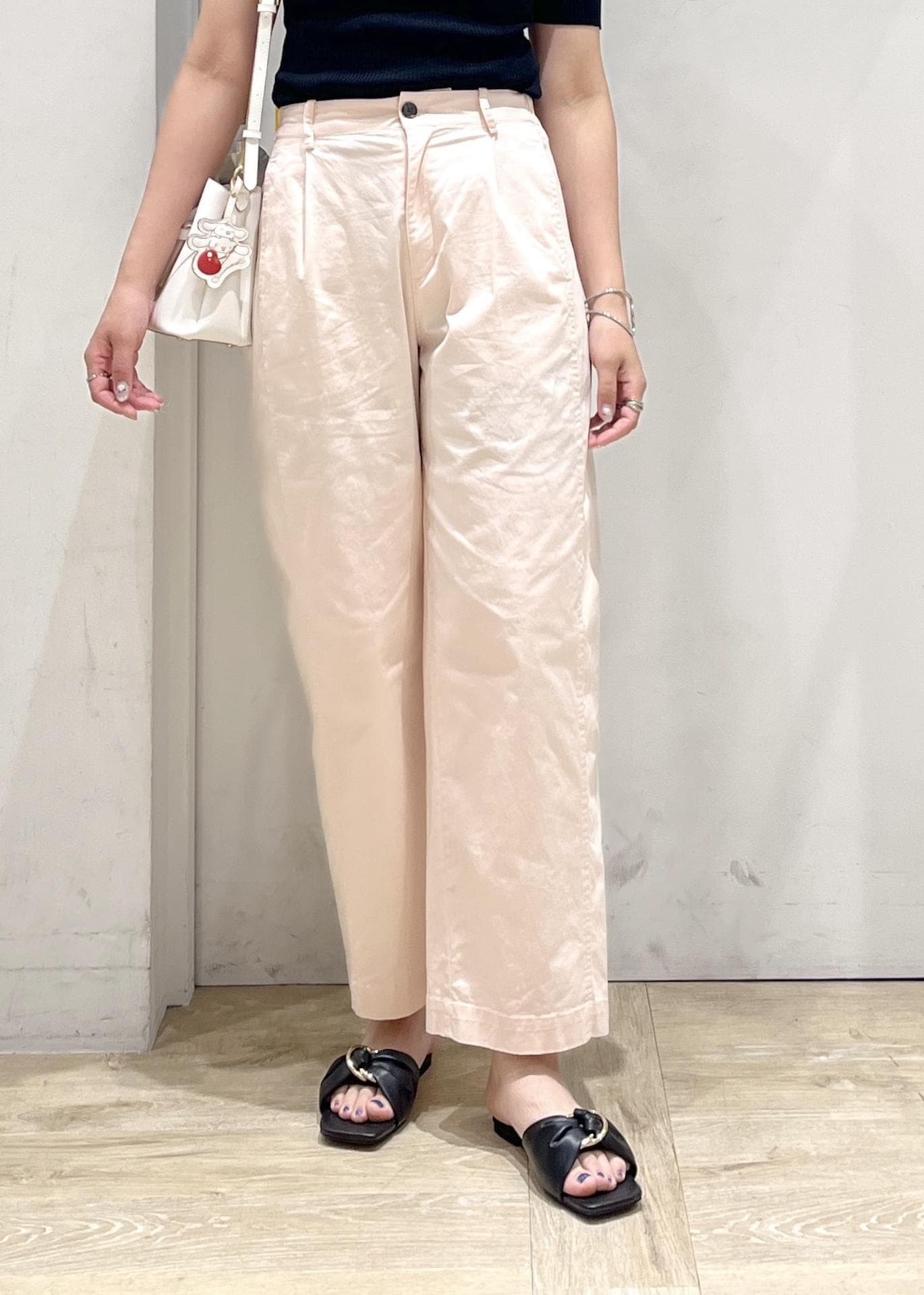 夏にぴったりのコットンパンツは淡めのピンクで映える!