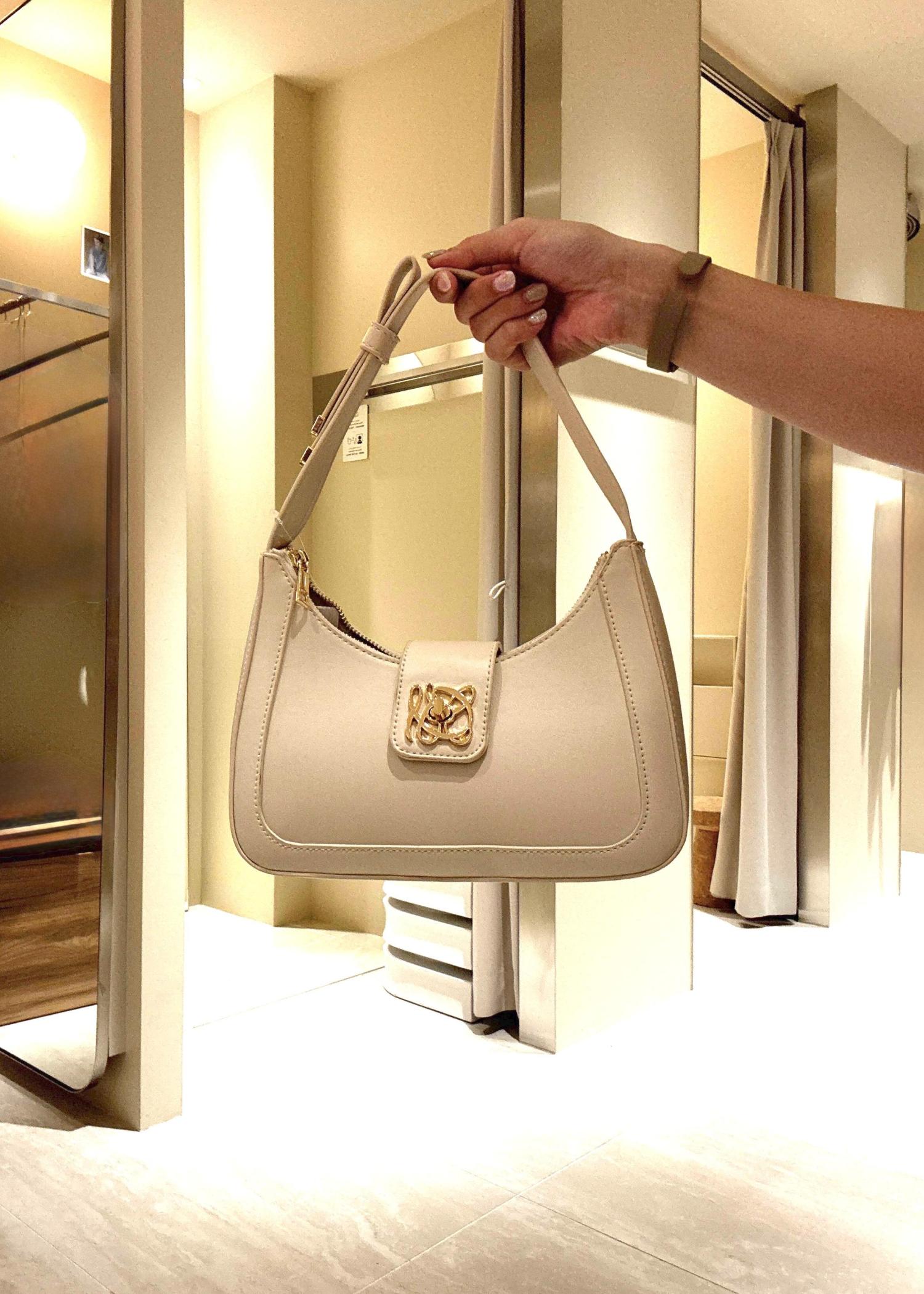VIS【180℃美人見え】ハンドルリボンワンショルダーバッグキナリ / F¥5,929レビューコンパクトですがまちがわりとあるので横長の財布も入ります。
