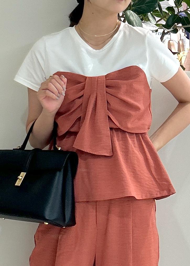 VIS【新色追加】【美easy】ねじりリボンTシャツドッキングプルオーバー【接触冷感/洗える】オレンジ系 / F¥5,489レビュー全体的なサイズ感はややコンパクトめなので