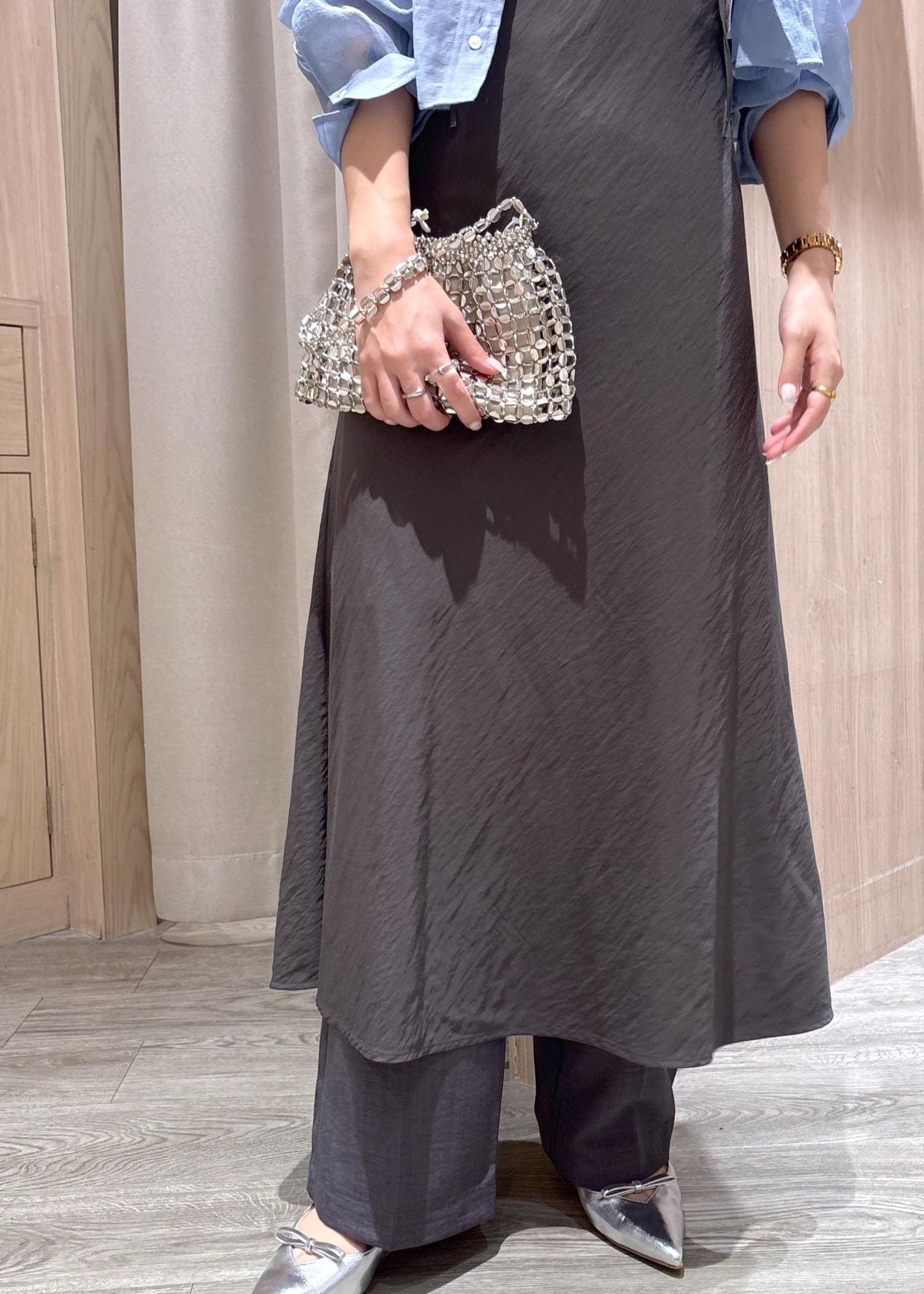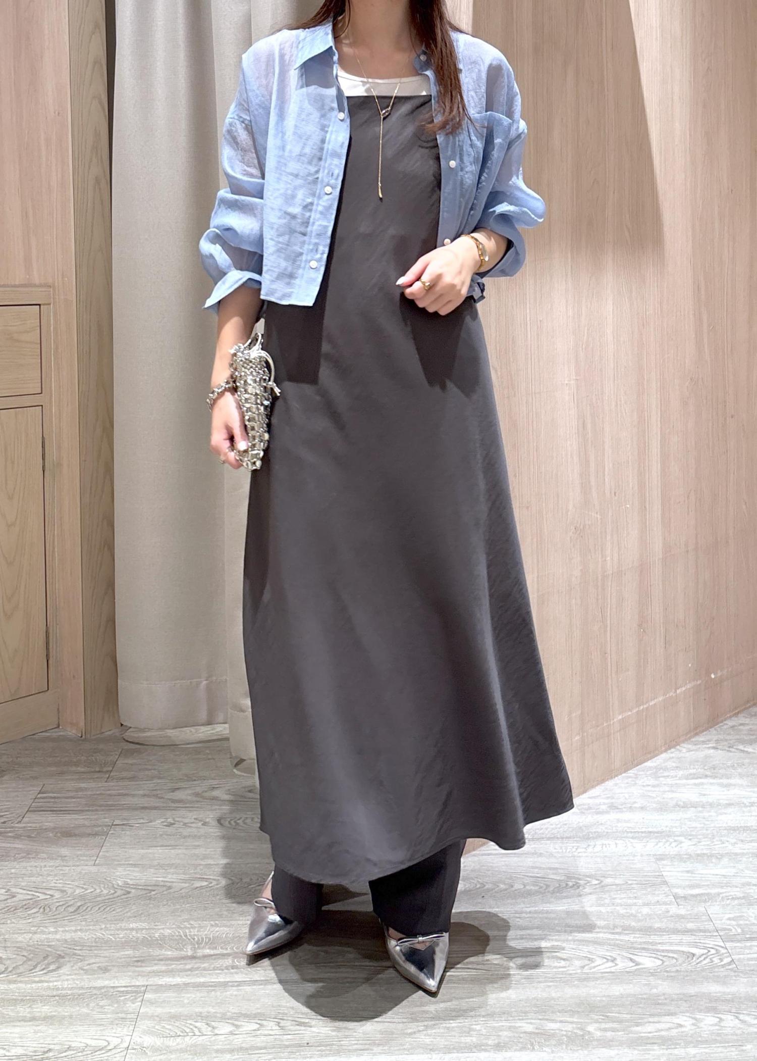 アウトレットVISバイヤス仕立てナローキャミワンピースチャコール / F¥3,076レビュー肩紐で着丈の調節ができます。