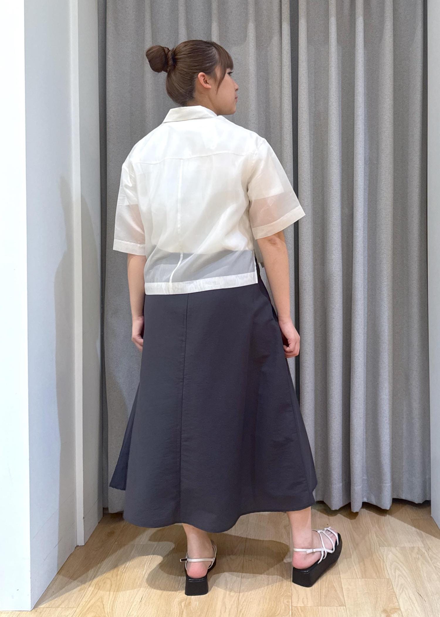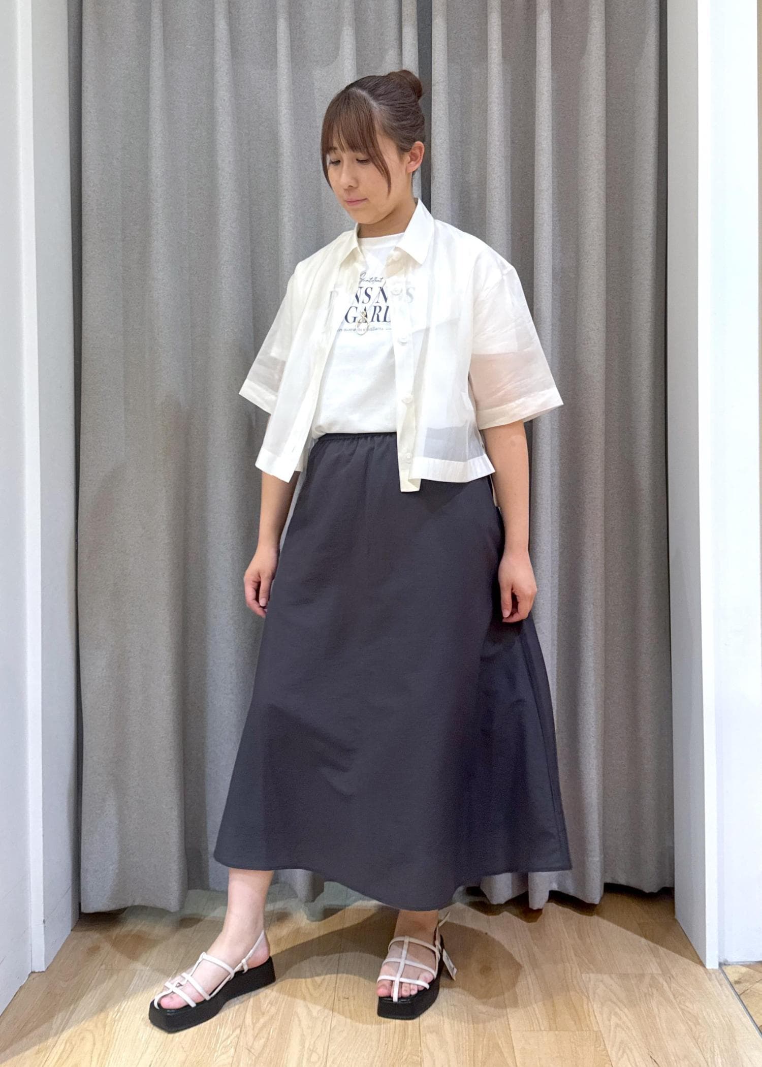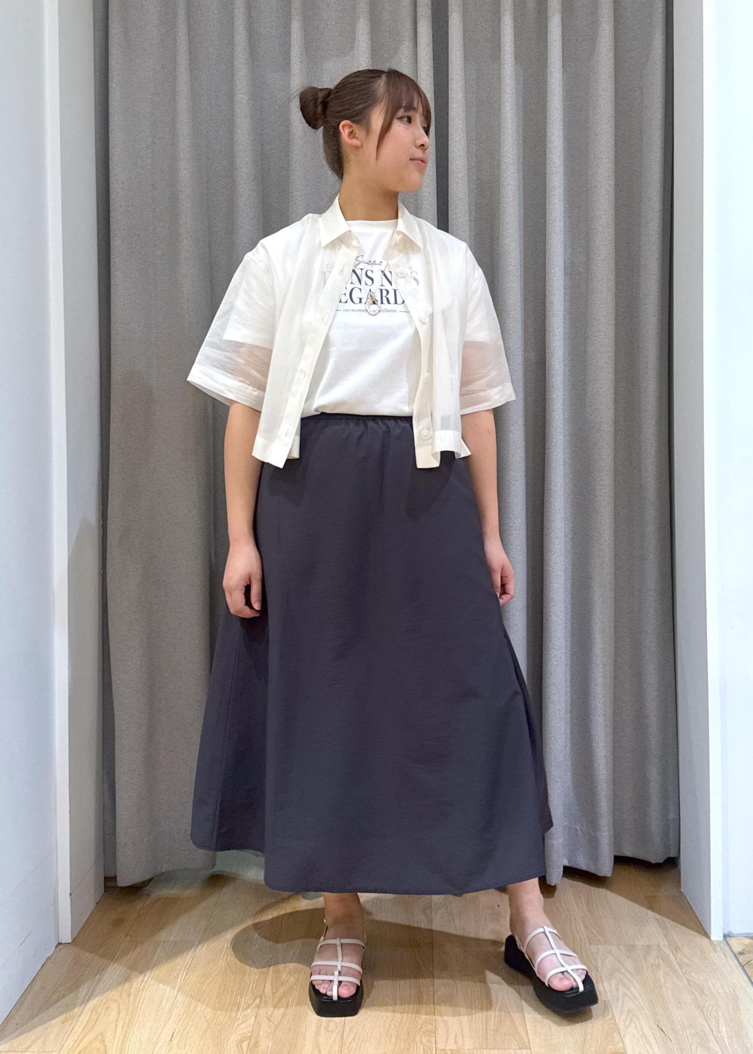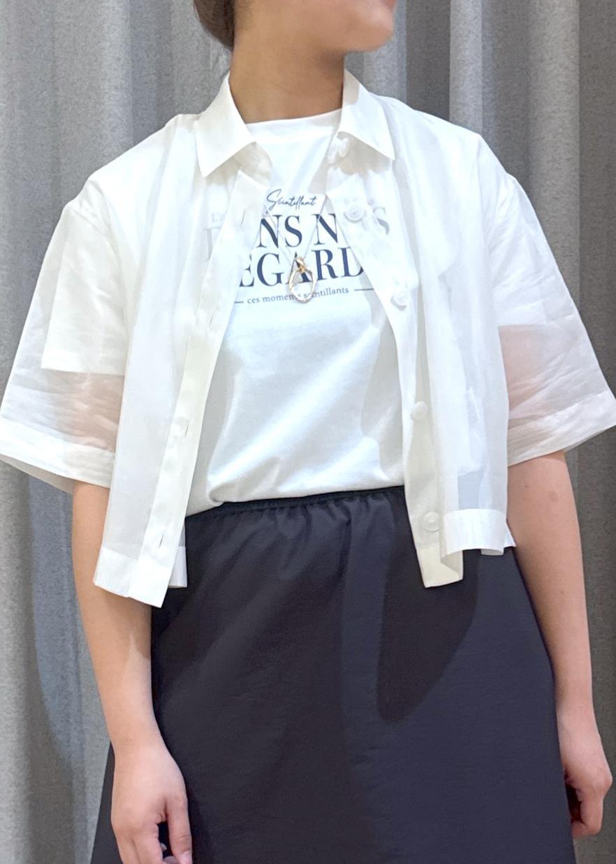 シアーシャツにシンプルなトップス、スカートを合わせたモノトーンコーディネート✩.*˚