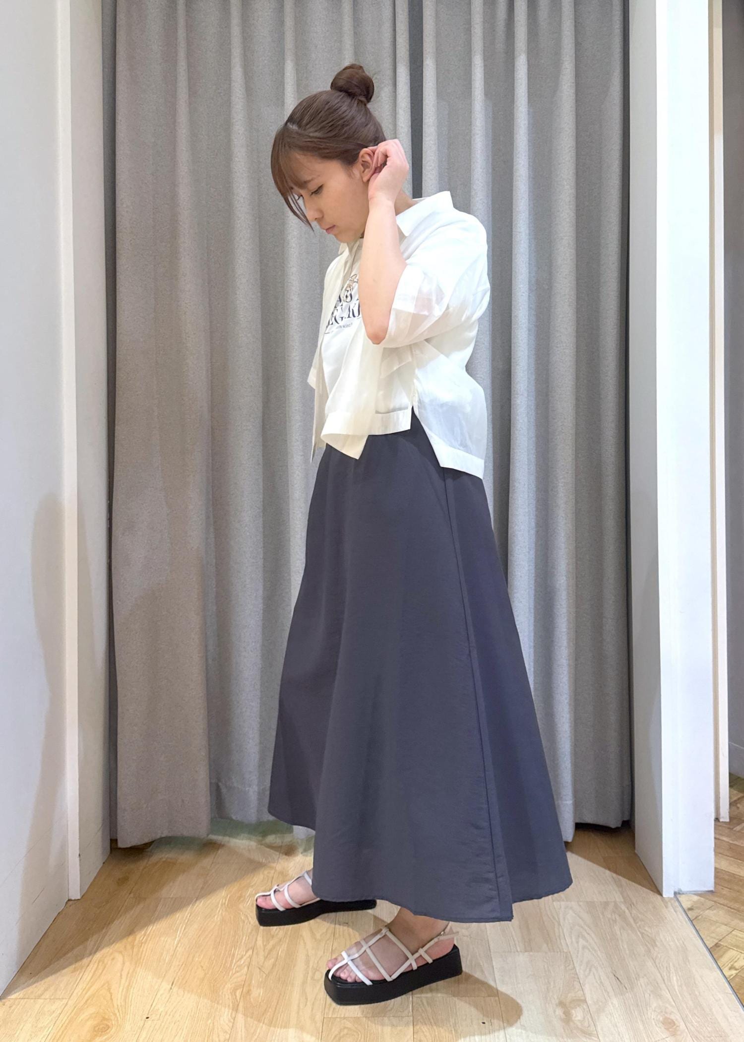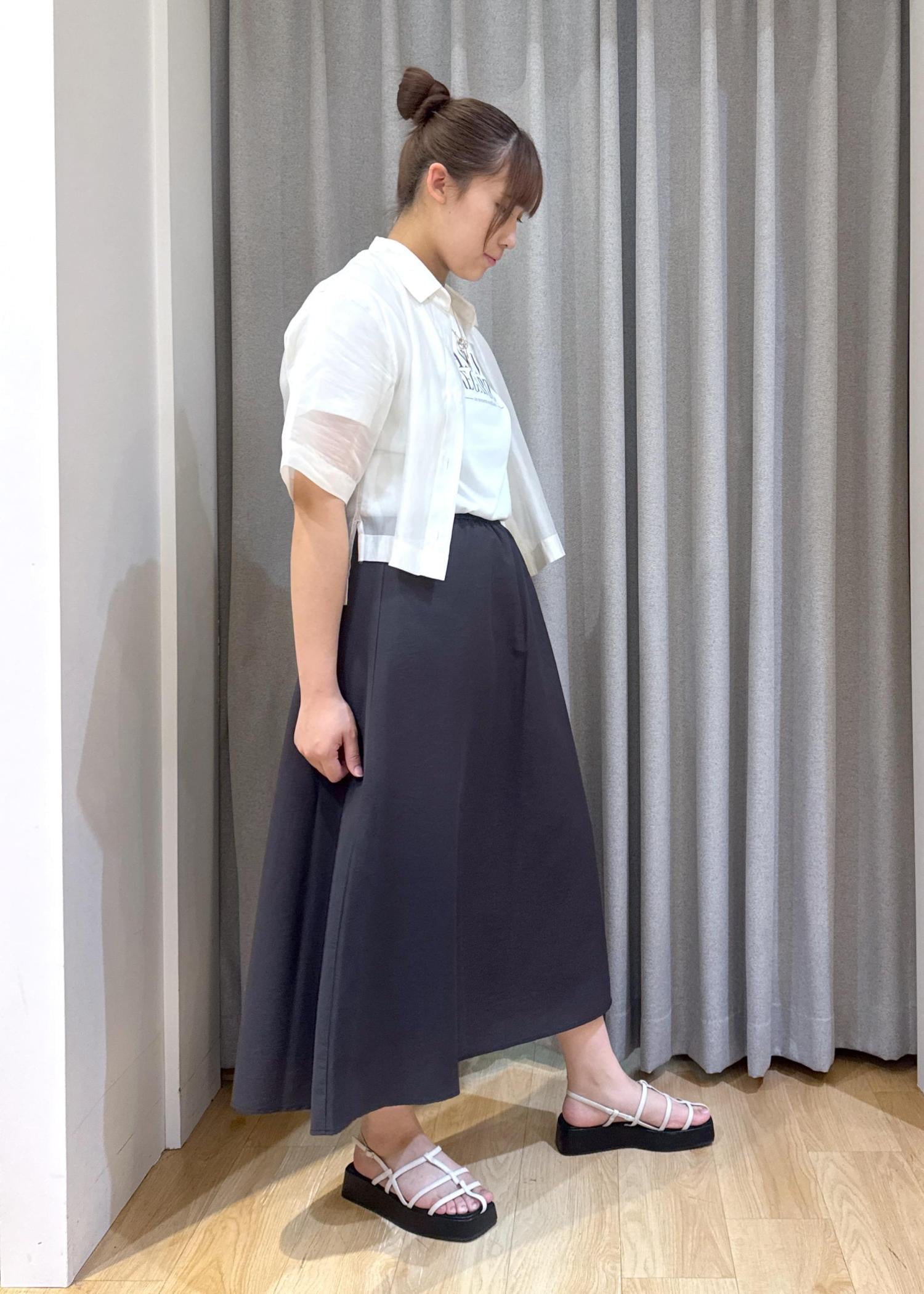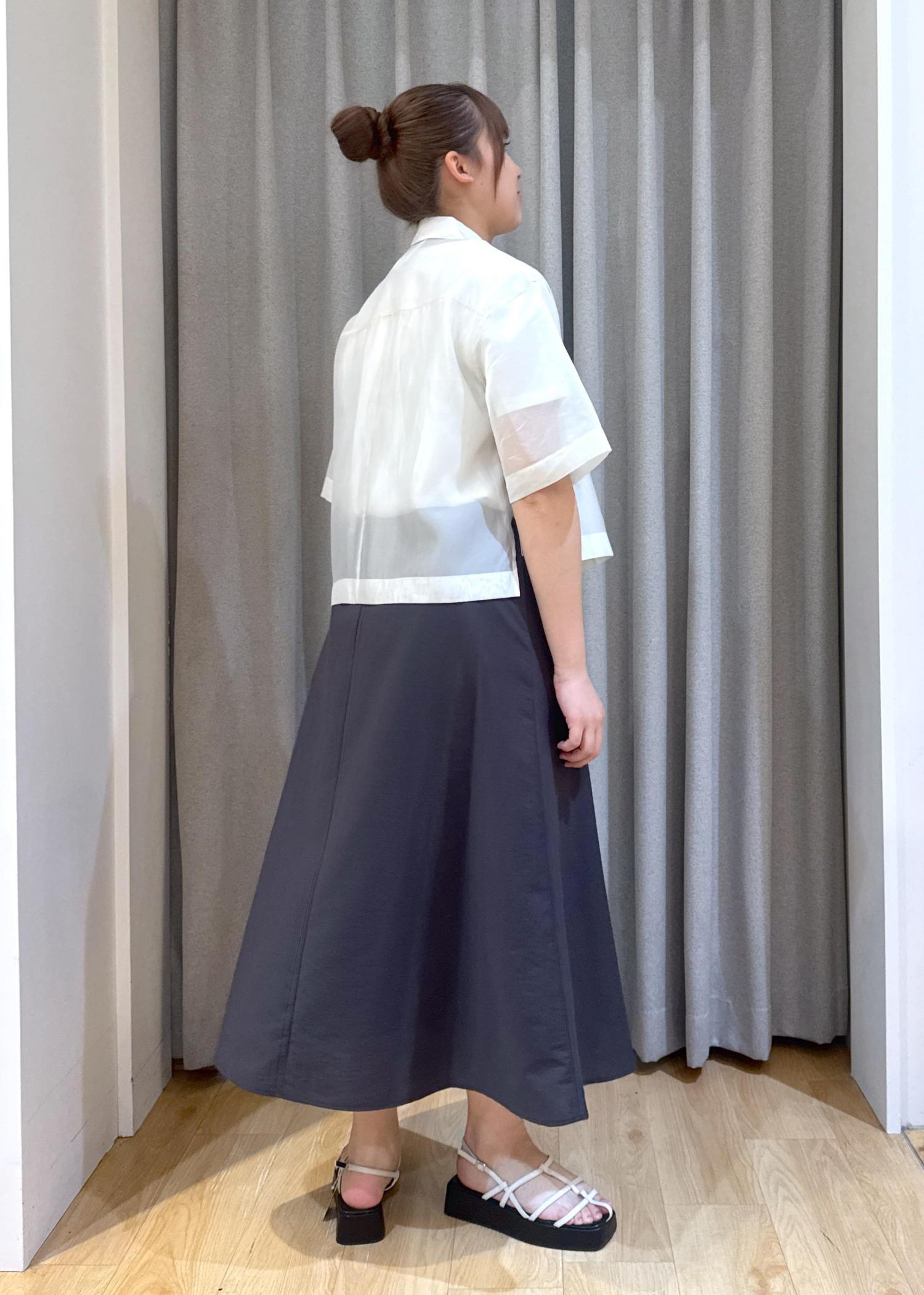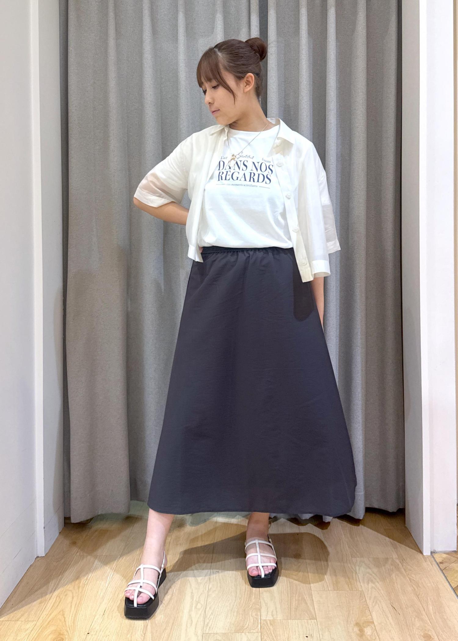 シアーシャツにシンプルなトップス、スカートを合わせたモノトーンコーディネート✩.*˚