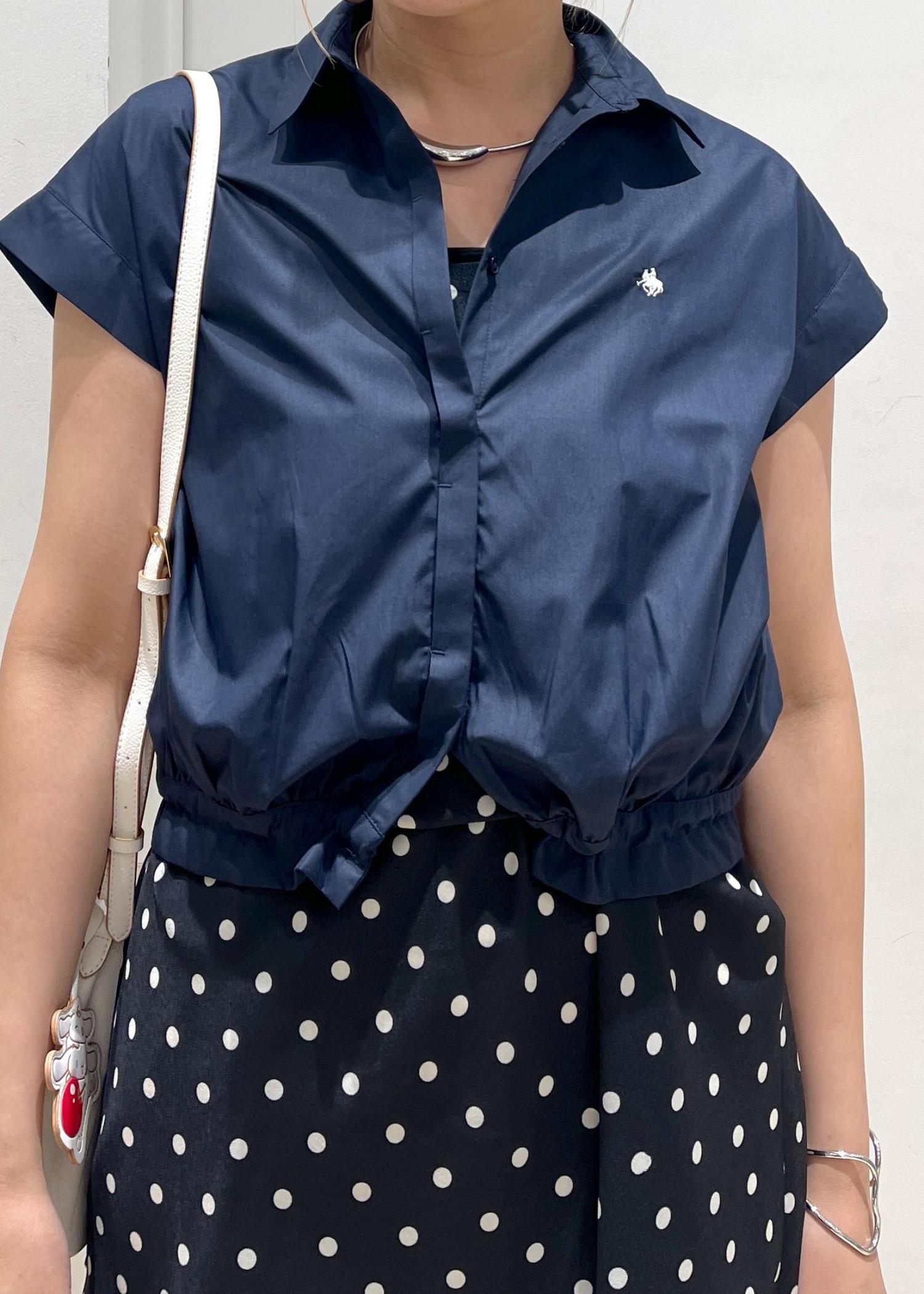 VIS【POLO BCS】VIS別注フレンチスリーブドローストリングシャツネイビー / F¥6,050レビュー胸元のロゴ刺繍のワンポイントが可愛い♡