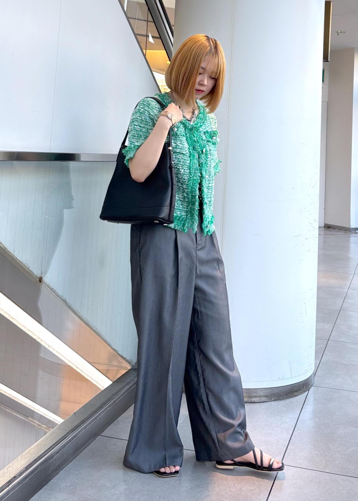 パンツは、ウエストタックとワイドシルエットで脚のラインを綺麗に見せてくれるのでお気に入りです☺︎