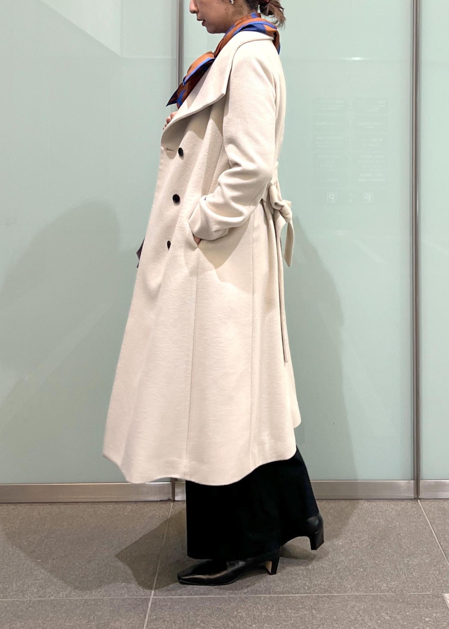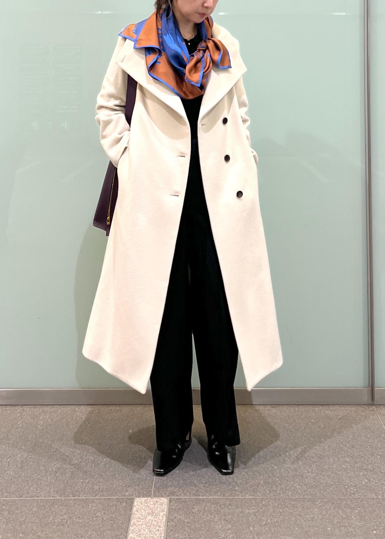 NEW!ROPÉプレミアムカシミヤ ロングコート【逸品・マルチWAY】【25AW】オフホワイト / 38¥59,400レビューなで肩体型。38サイズを着用し、薄手のジャケットならもう一枚中に着られそうですが、ドルマンスリーブなどのゆったりした厚手のセーターは肩のラインが落ちていないコートになるので着用がむずかしそうです。