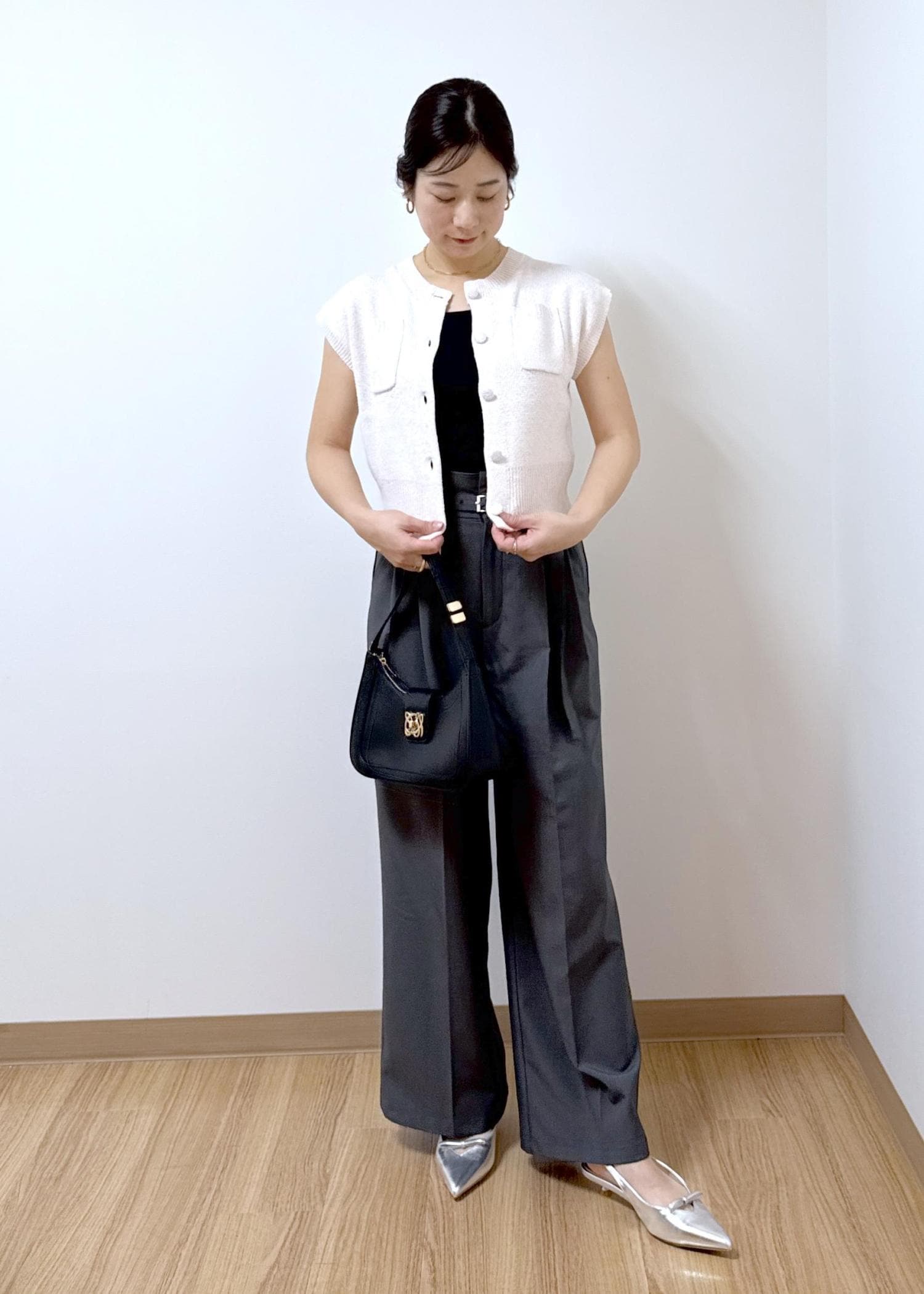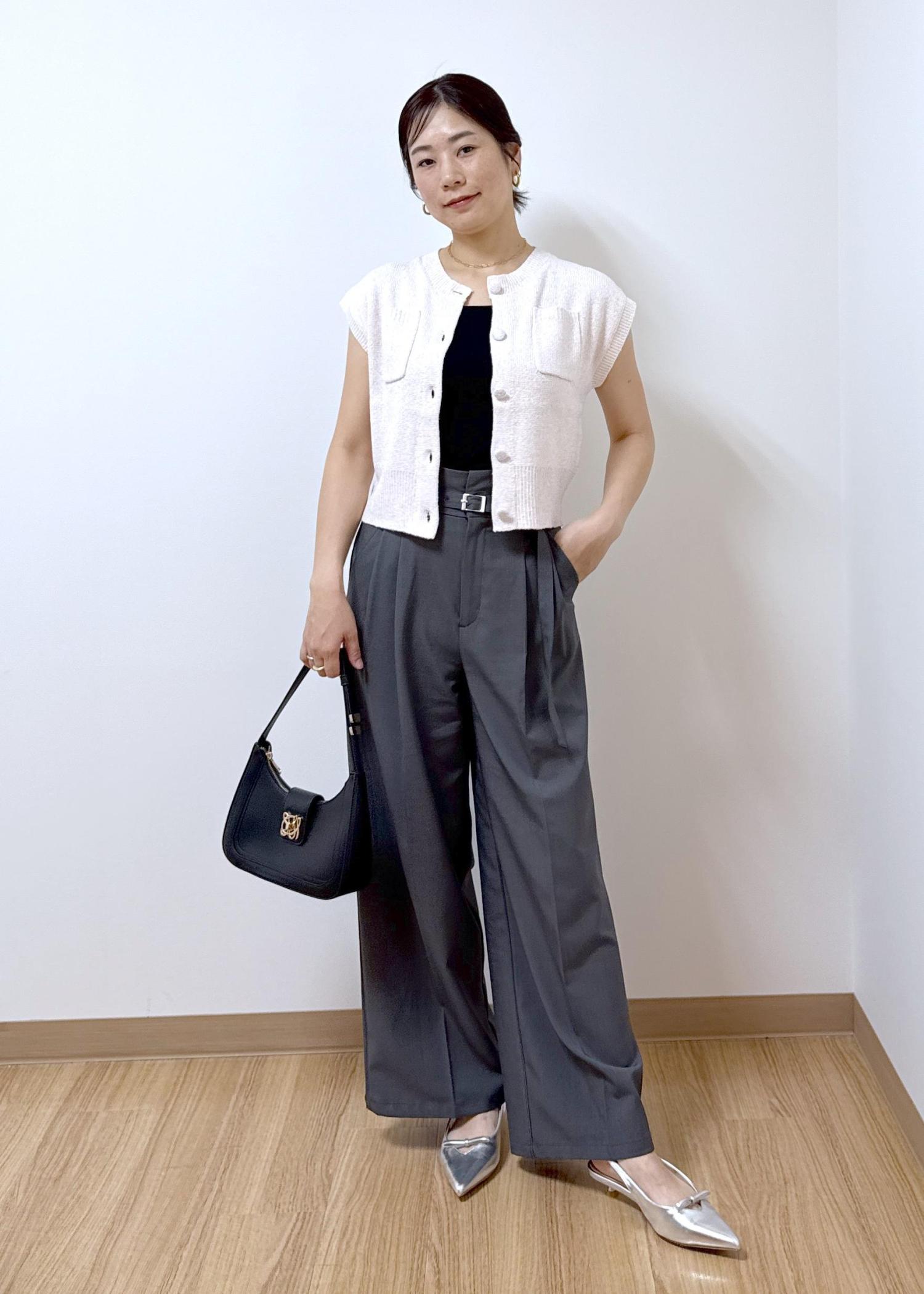 VIS【新色追加】【防シワ/接触冷感】ベルトディテールタックワイドスラックスパンツチャコール / M¥6,589レビューとろみのある生地なのでワイドパンツでも広がる事なくスッキリと着れます!