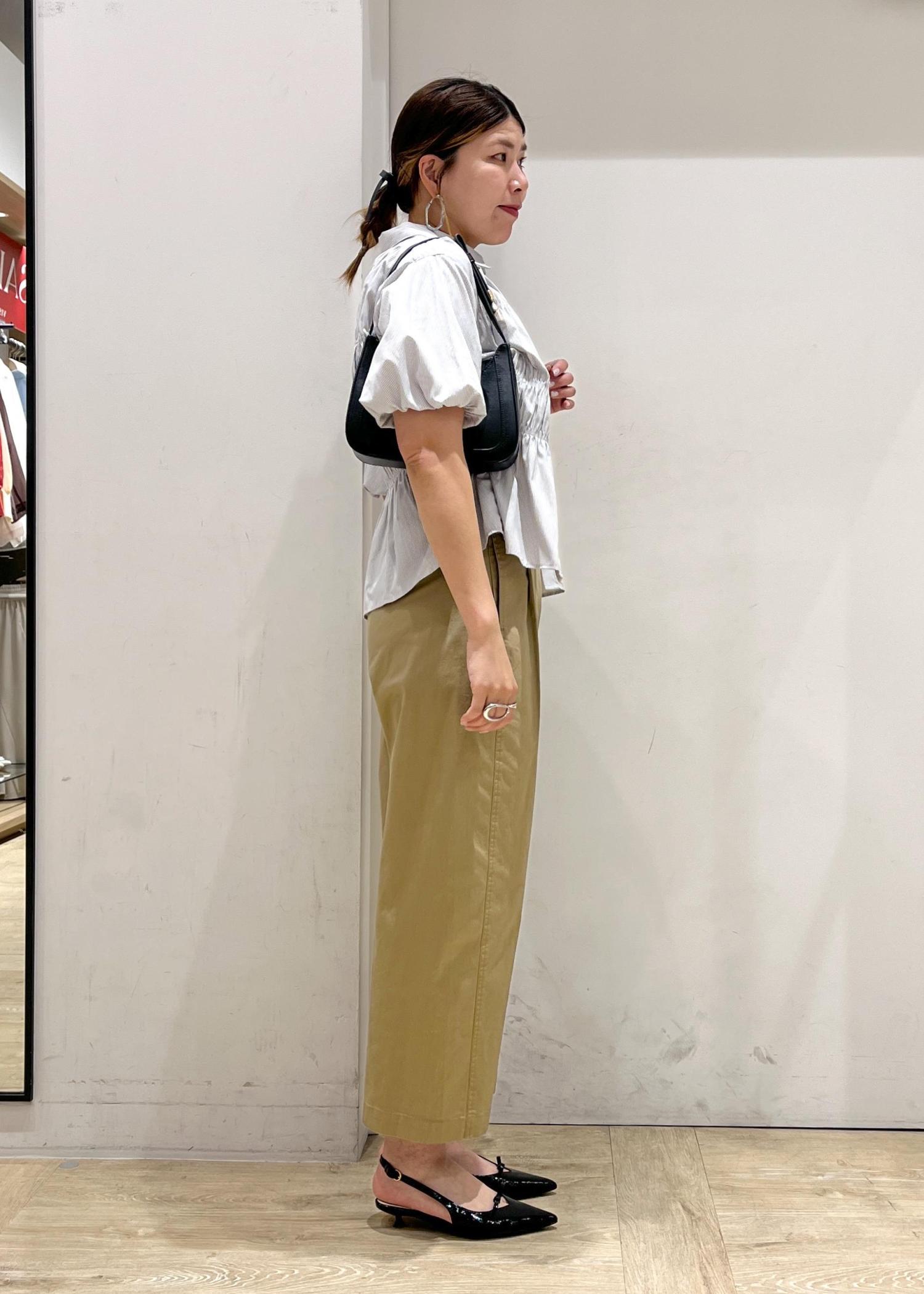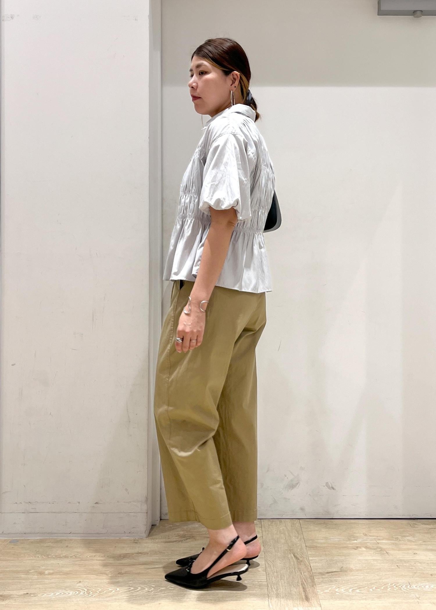 高身長で腰骨あたりの丈感でスッキリと着用できます。袖バルーンなので二の腕もカバーしてくれるのも嬉しいポイントです。シャーリング部分もゴム仕様なので窮屈感なくスッキリ着れますよ! -