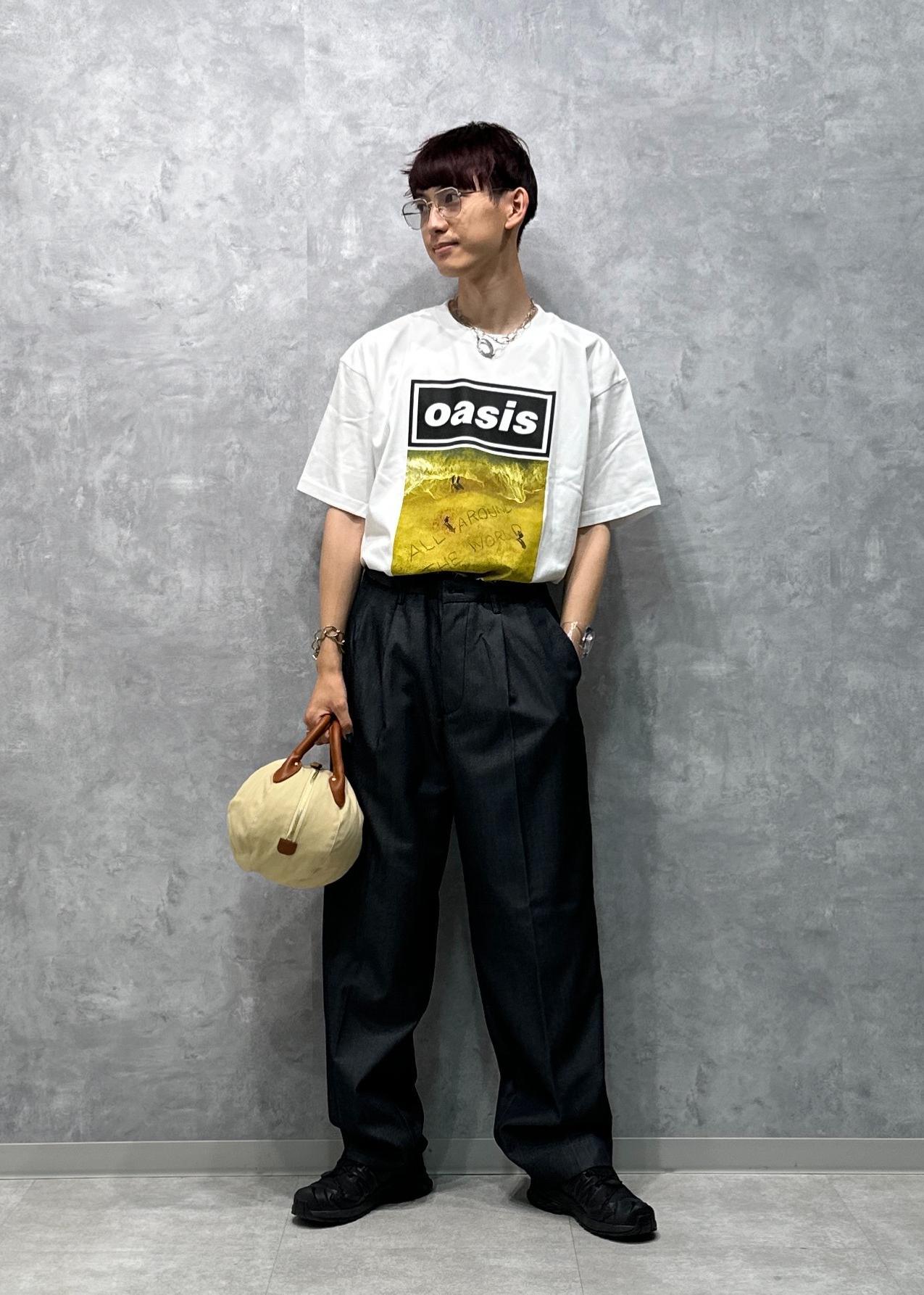 oasisTシャツ。ゆとりのあるサイズ感で丈は長めです。丈長いのが苦手な方はジャストサイズで選ぶのがおすすめです。 -