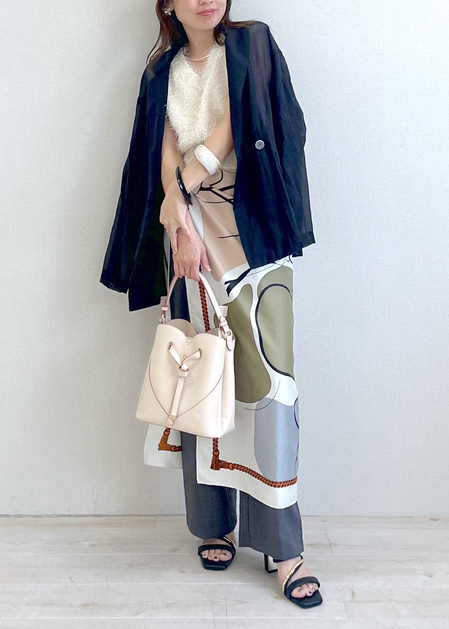 手持ちのブラックジャケットも、ラフに持つだけでこなれ感UP。