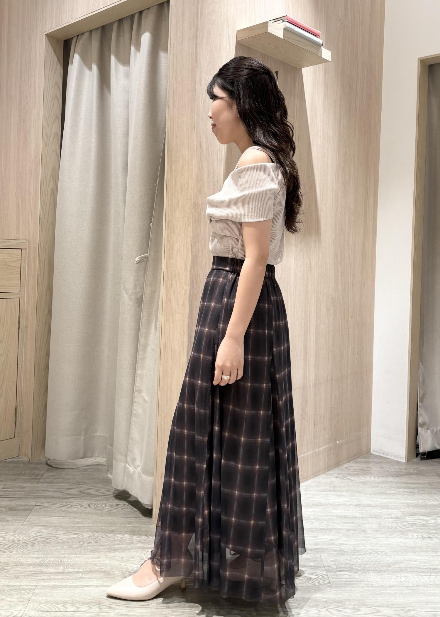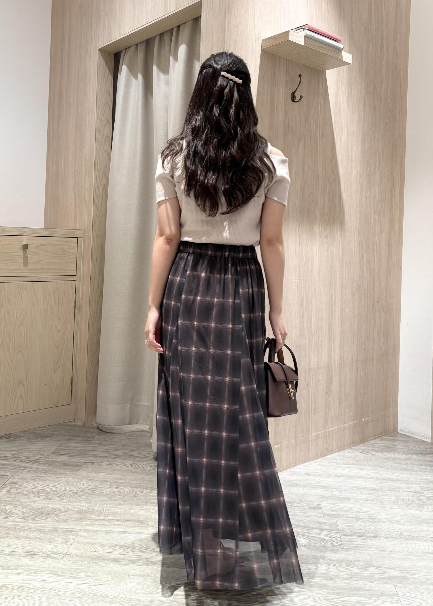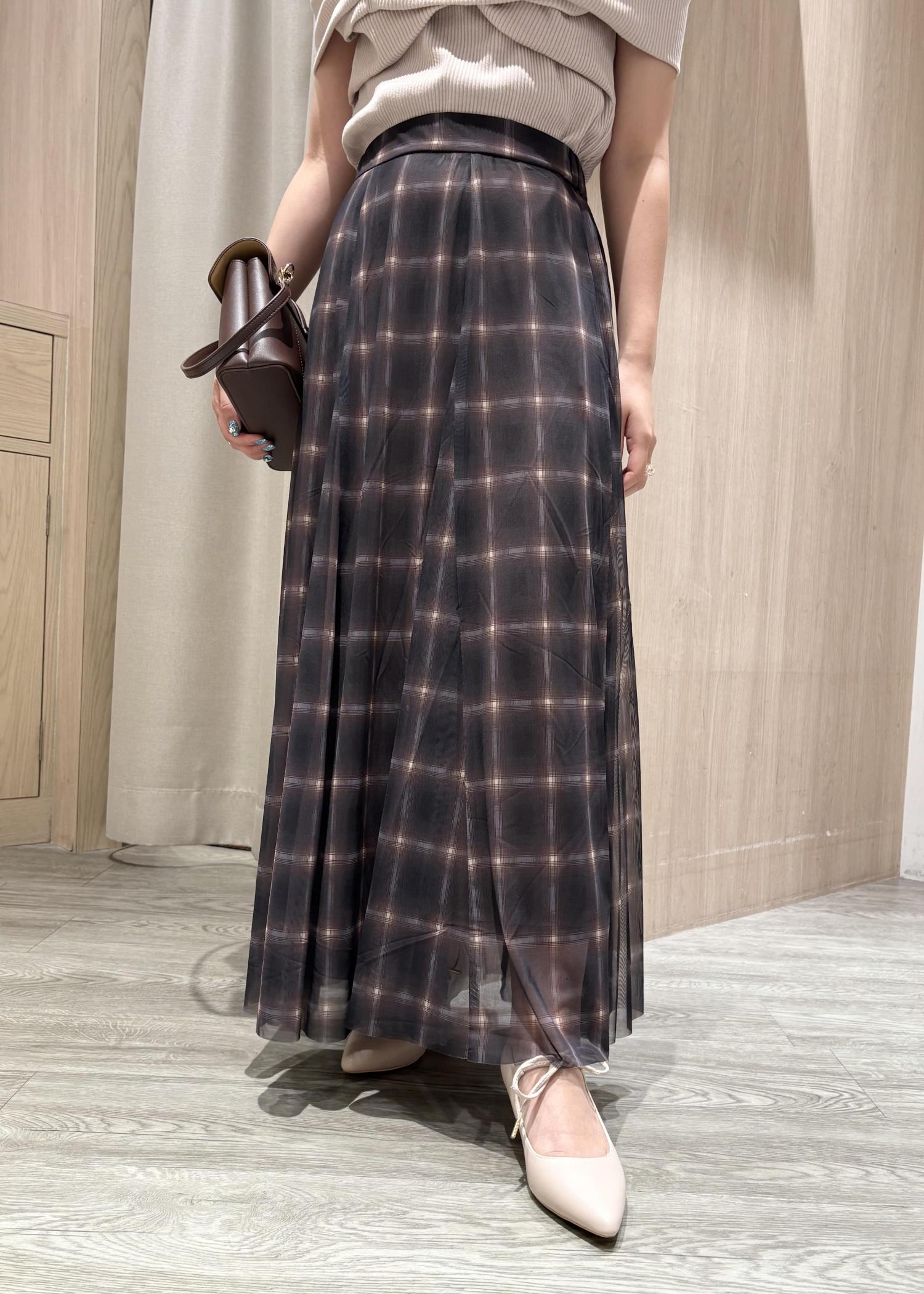 【洗える】チュールプリントチェックスカート