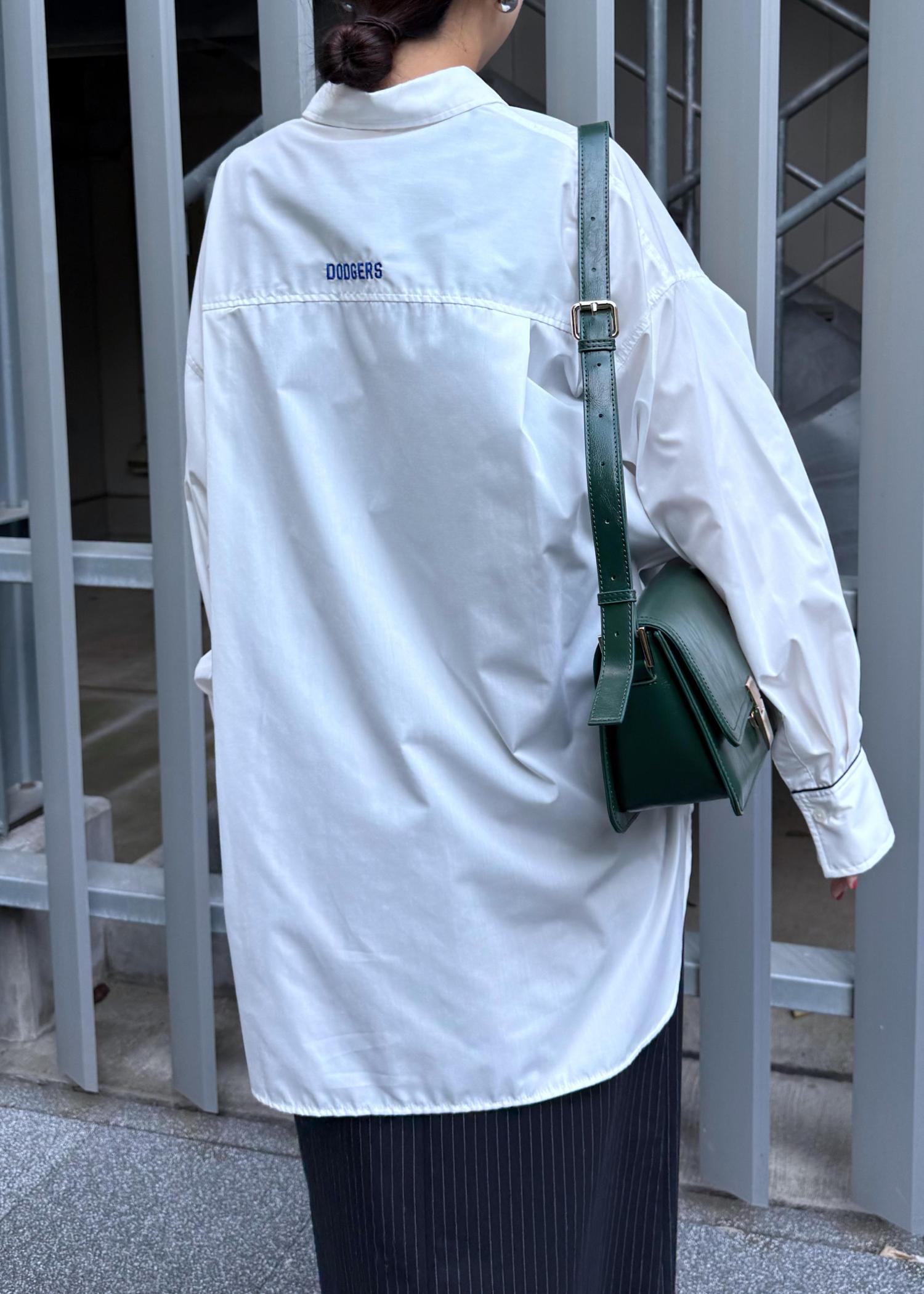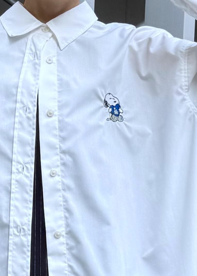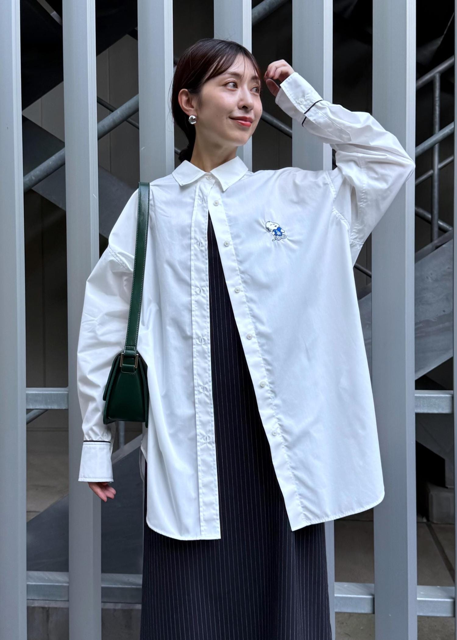 ROPÉ PICNIC【PEANUTS×MLB COLLECTION by ROPE' PICNIC】オーバーサイズシャツホワイト / F¥5,489レビューパリッと張りのある生地。身幅・袖幅・丈感全てにおいてゆとりがあるリラクシーな1枚です。何と言ってもスヌーピーがチームロゴを抱いている姿が愛らしい…♡刺繍なので高見えもバッチリです。着丈はお尻が隠れる長さ。裾に丸みがあることで動きが出て重たい印象にならないのが嬉しい♪襟元のボタンを開けて抜け感を出したり、ライトアウターとして羽織ったりと着こなしの幅が広いのも魅力のひとつです。