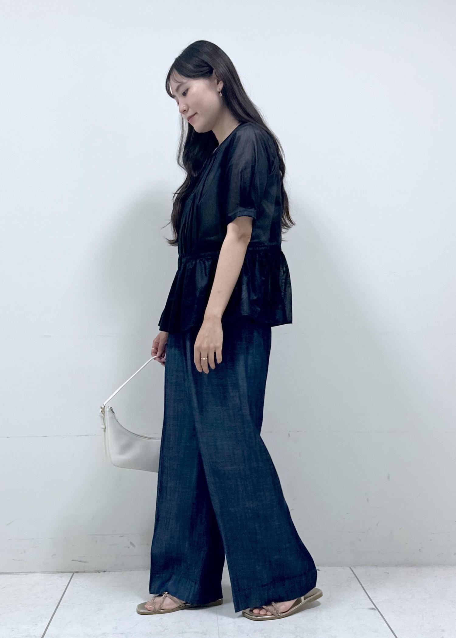 シアー感があり、ペプラムデザインの為、スッキリ感があります。